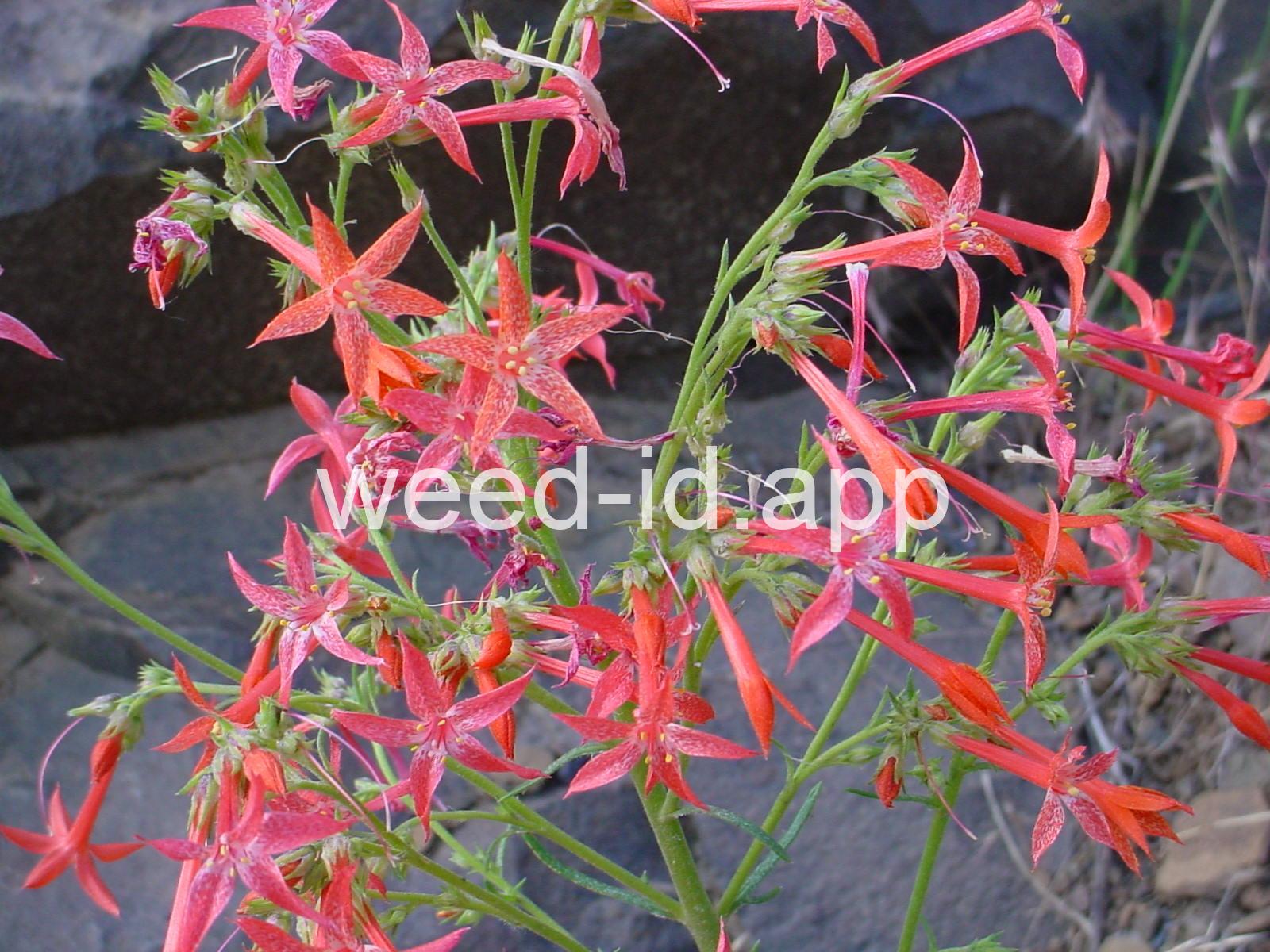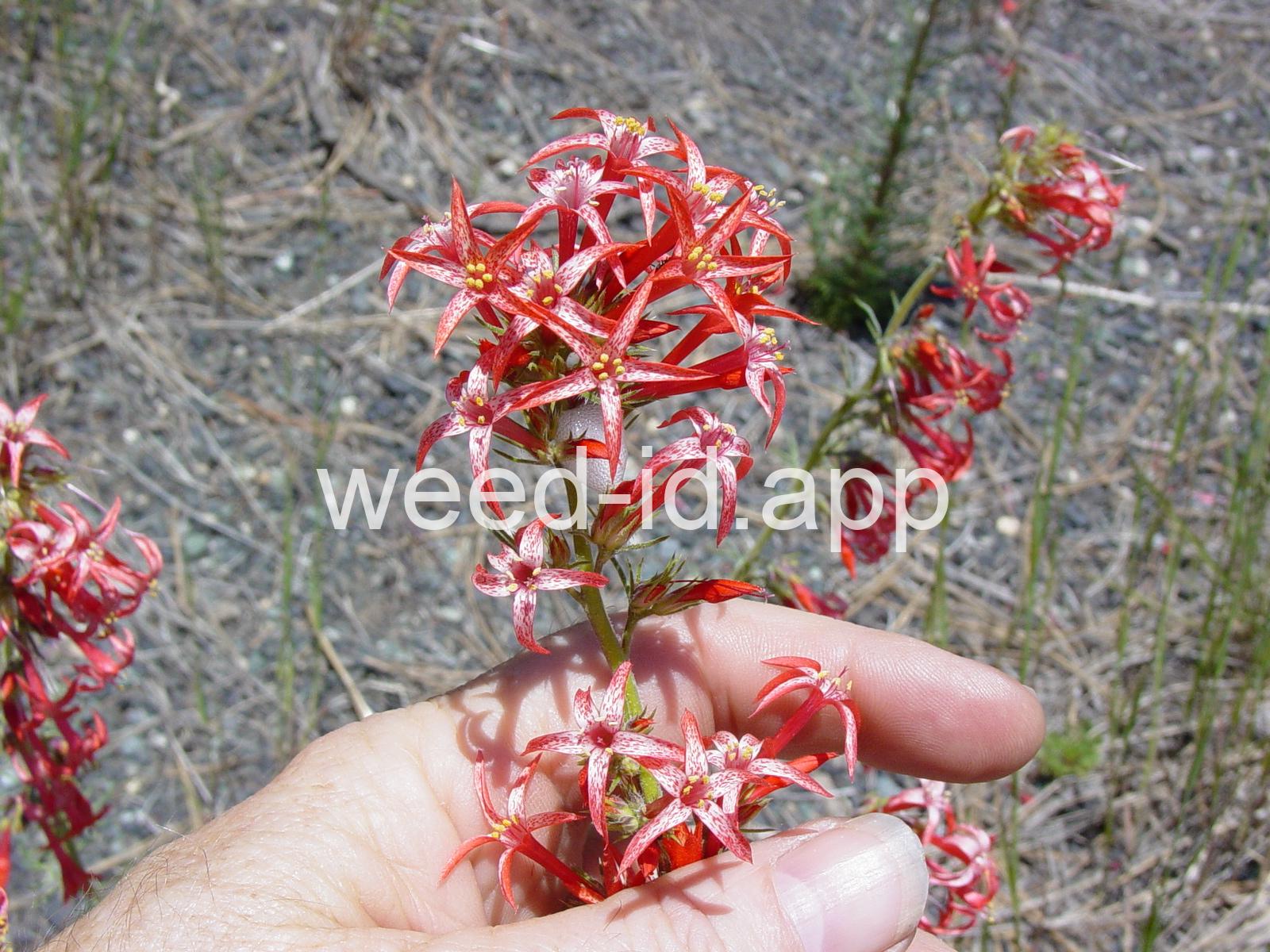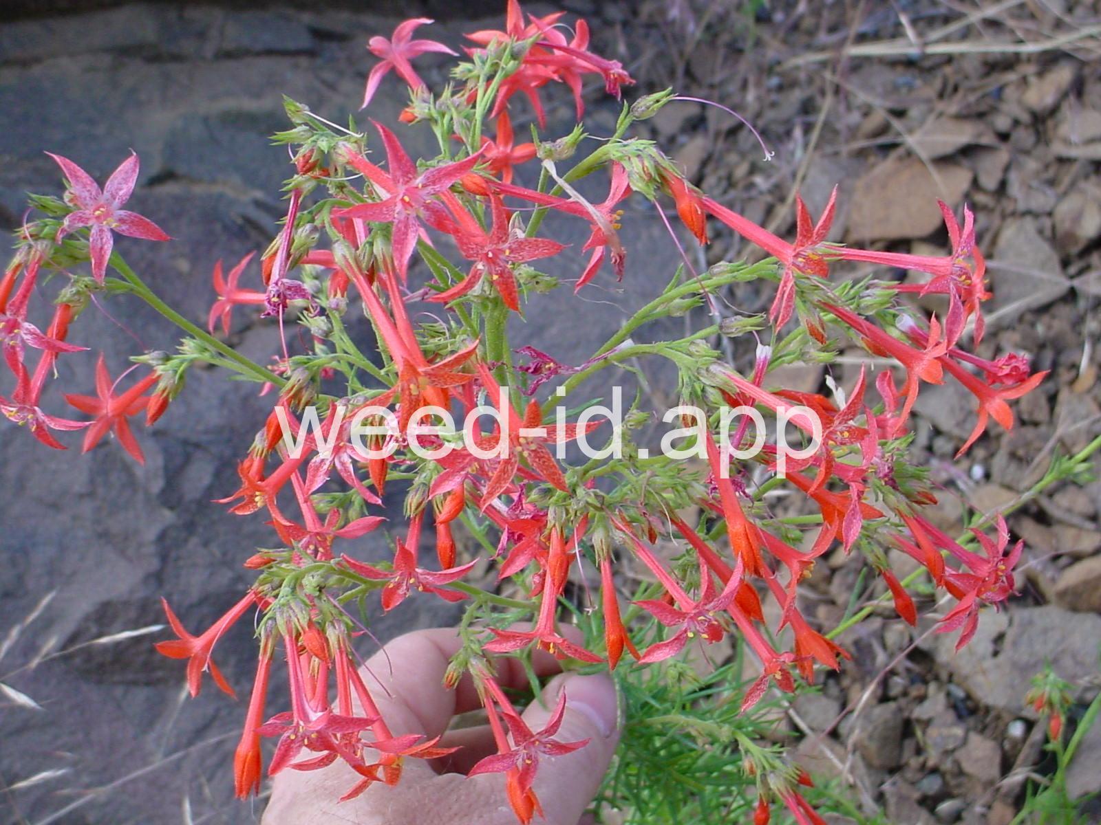Common Names: scarlet gilia, scarlet skyrocket, scarlet trumpet, skunk-flower = gilia aggregata