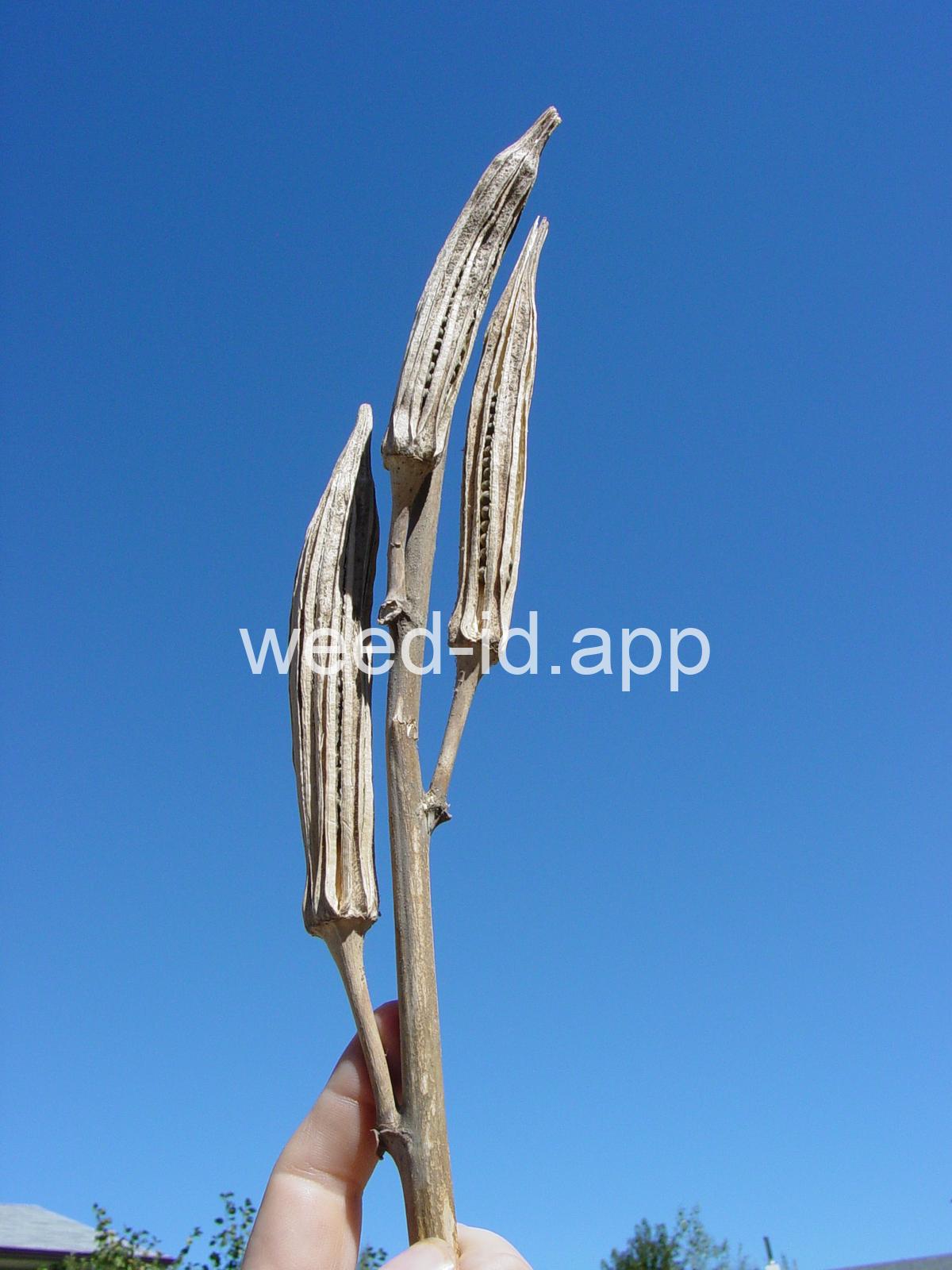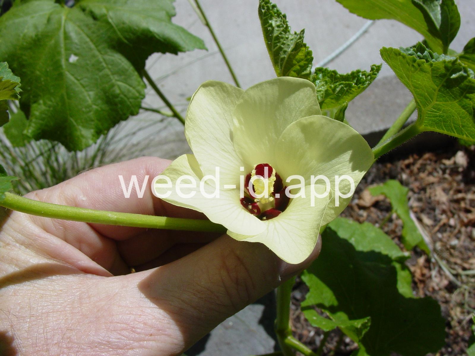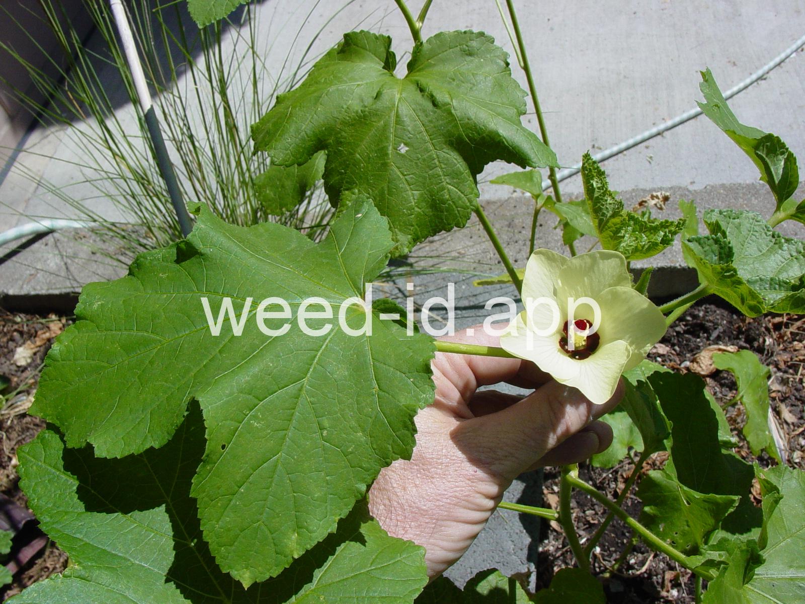Also called gumbo and ladyfingers. This species was introduced into the U.S. and West Indies from Africa for its edible seed pods. The specific epithet `esculentus` means `good to eat.` The pods are cylindrical, often 4-6 inches long and heavily ribbed. When cooked they impart a mucilaginous (slimy) texture which thickens the soups or stews to which it is added. The S.W.S.S. manual states that the leaves have stinging hairs.