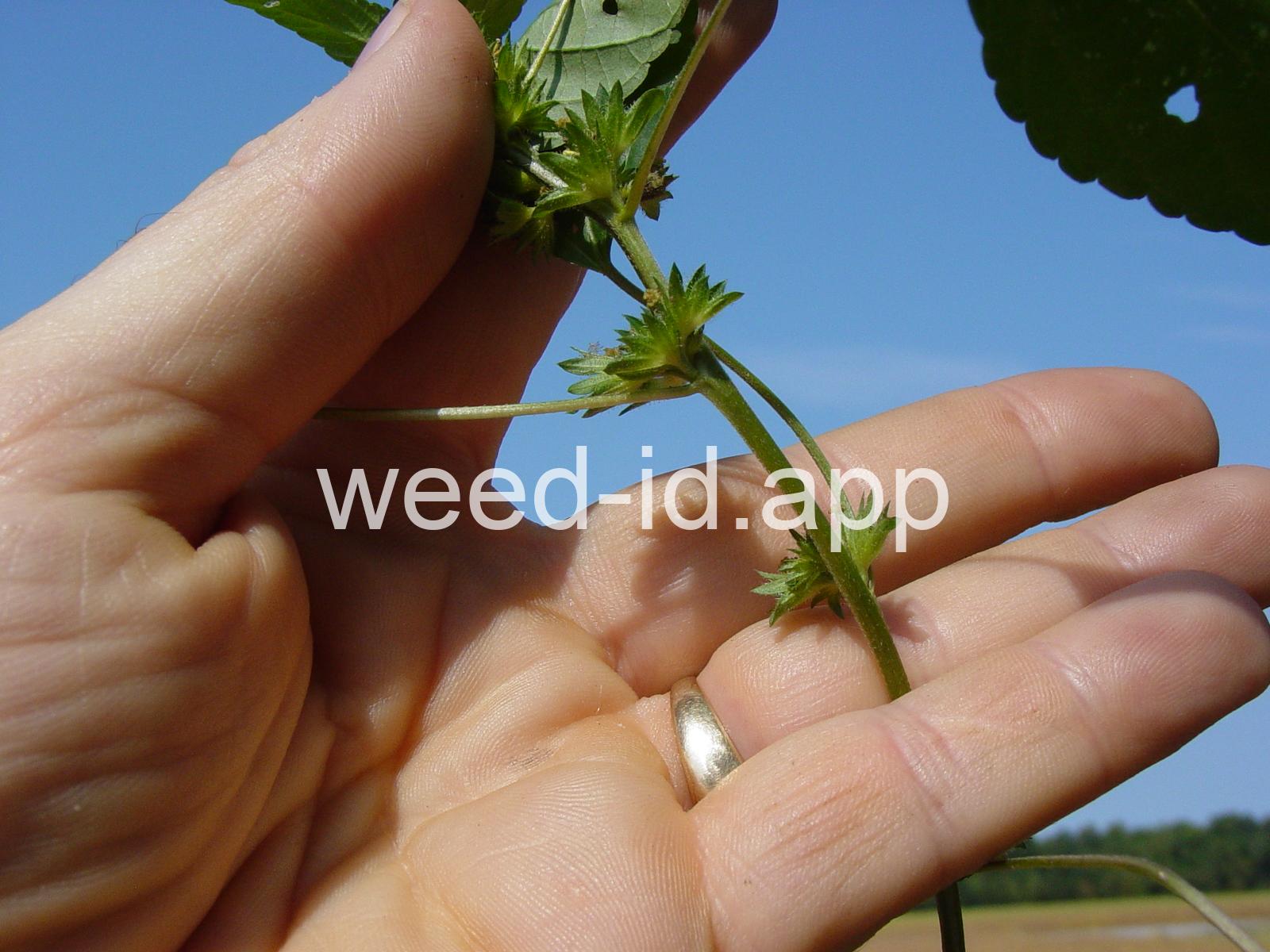 Annual, with alternate leaves. Fruit 3 seeded. Female flowers at the base of the spike and male flowers near the tip. Very similar to Acalypha virginica but with the bracts of the female flowers usually with 7-9 rather than 10-14 lobes.