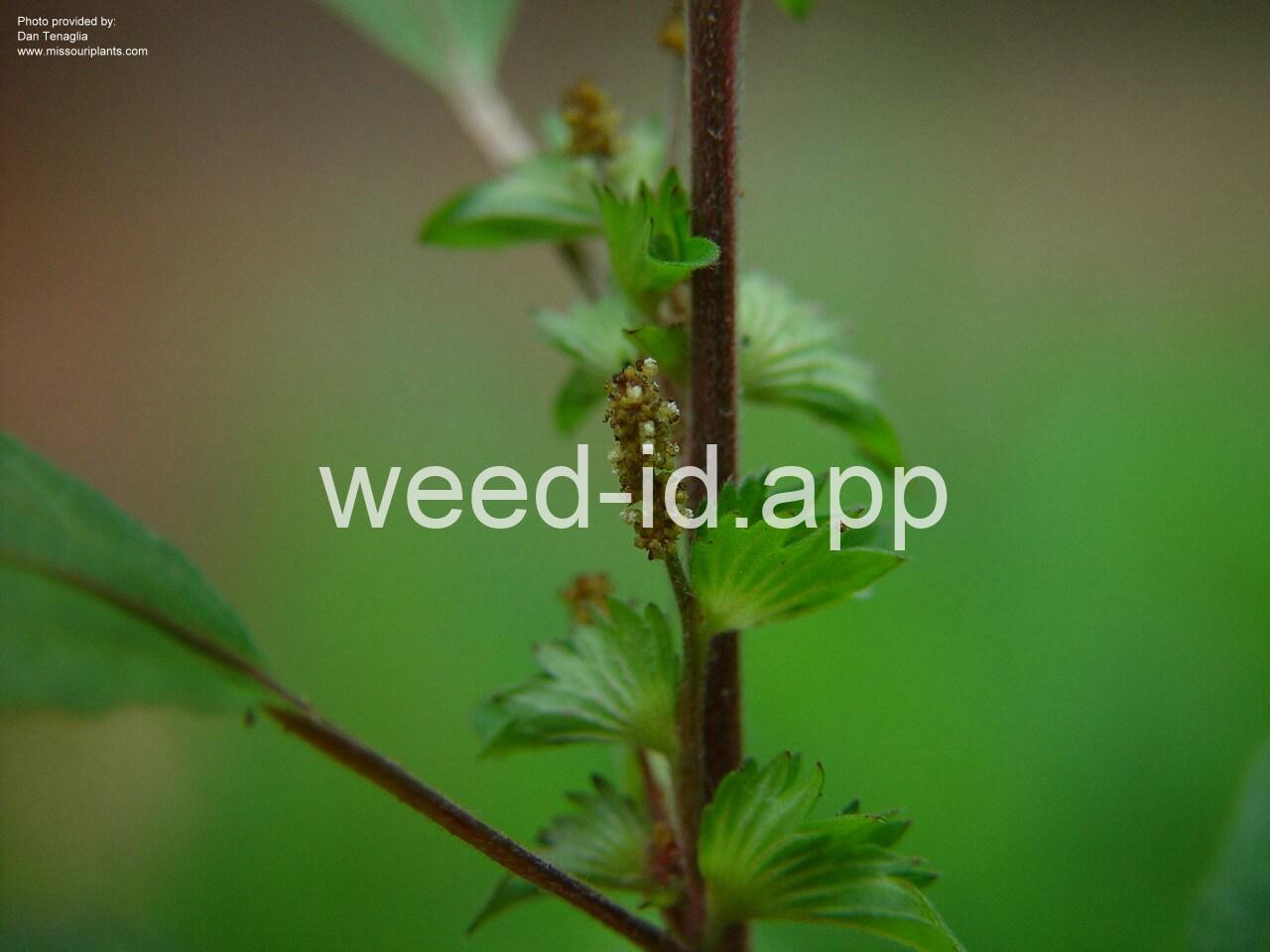 Annual, with alternate leaves. The fruit three seeded and the flower spikes with male flowers near the tip and female flowers near the base. Very similar to Acalypha rhomboidea but the bracts of the female flowers usually with 10-14 rather than 7-9 lobes.