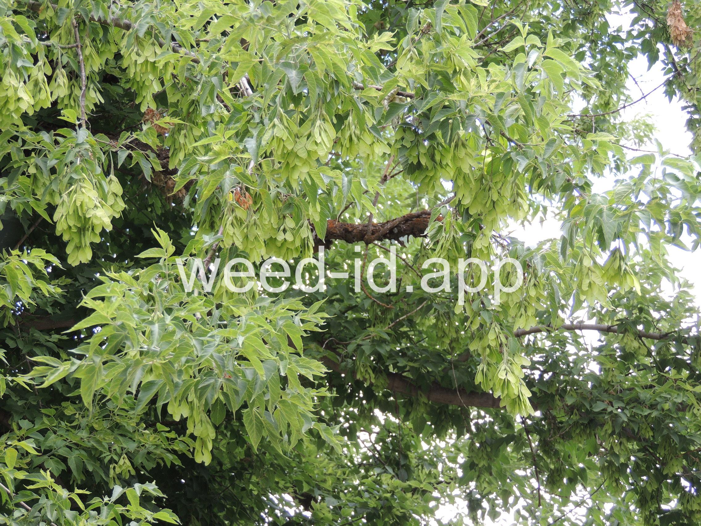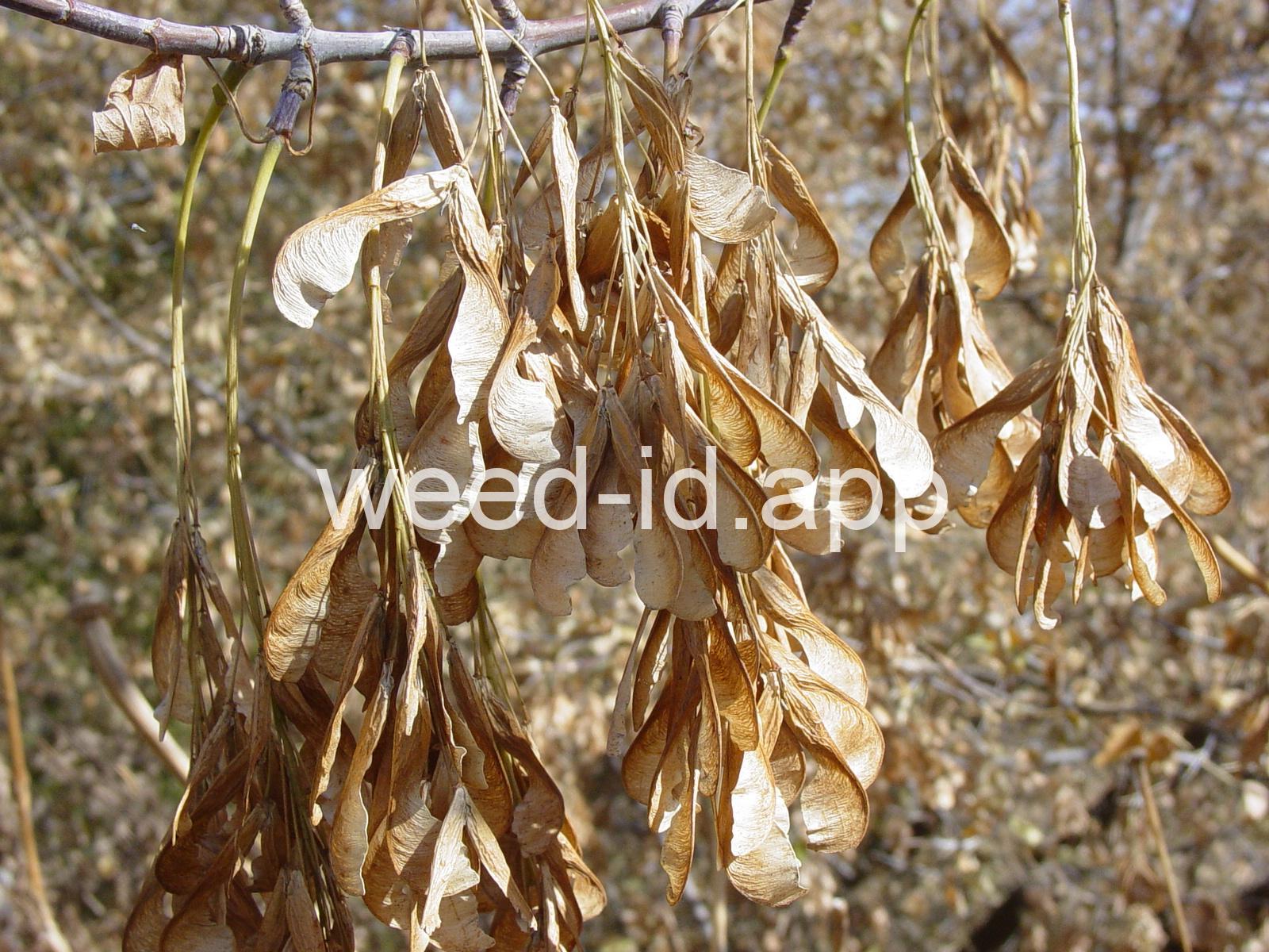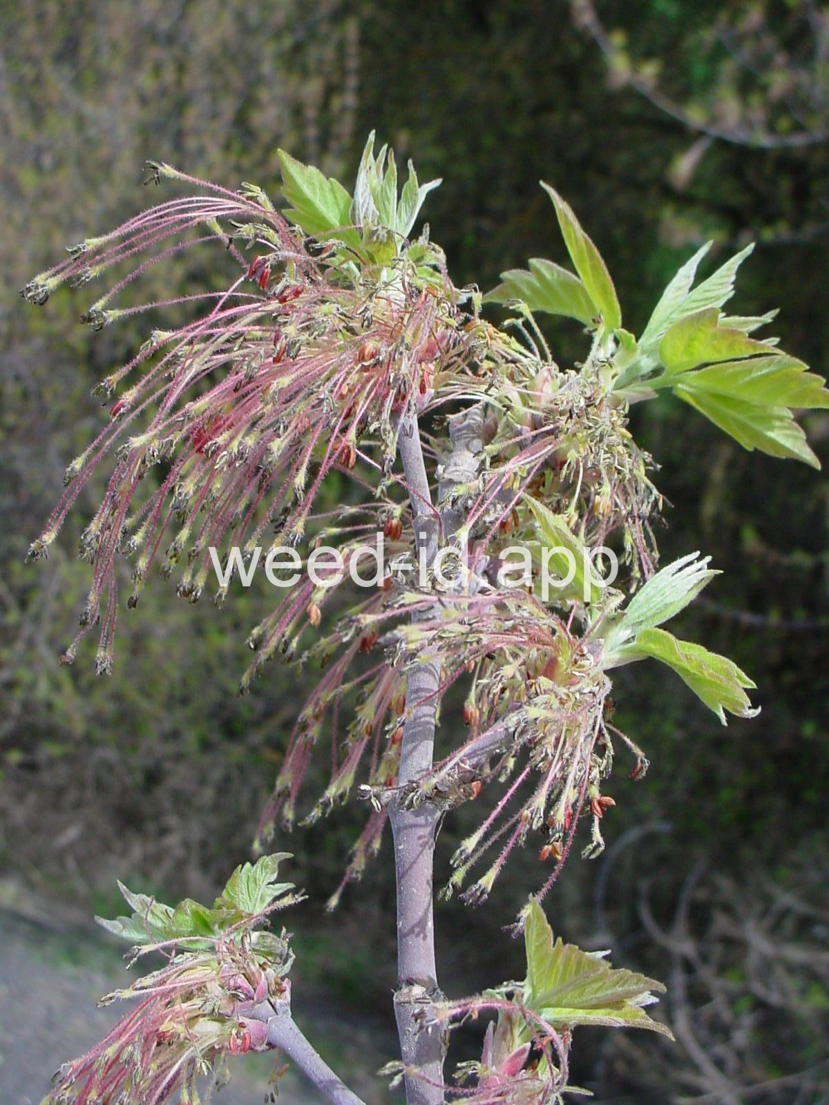 New growth covered with a blueish-white film which is botanically referred to as `glaucous bloom.` Despite the common name and the pinnate leaves, this tree is really a maple as is evident from the fruit.