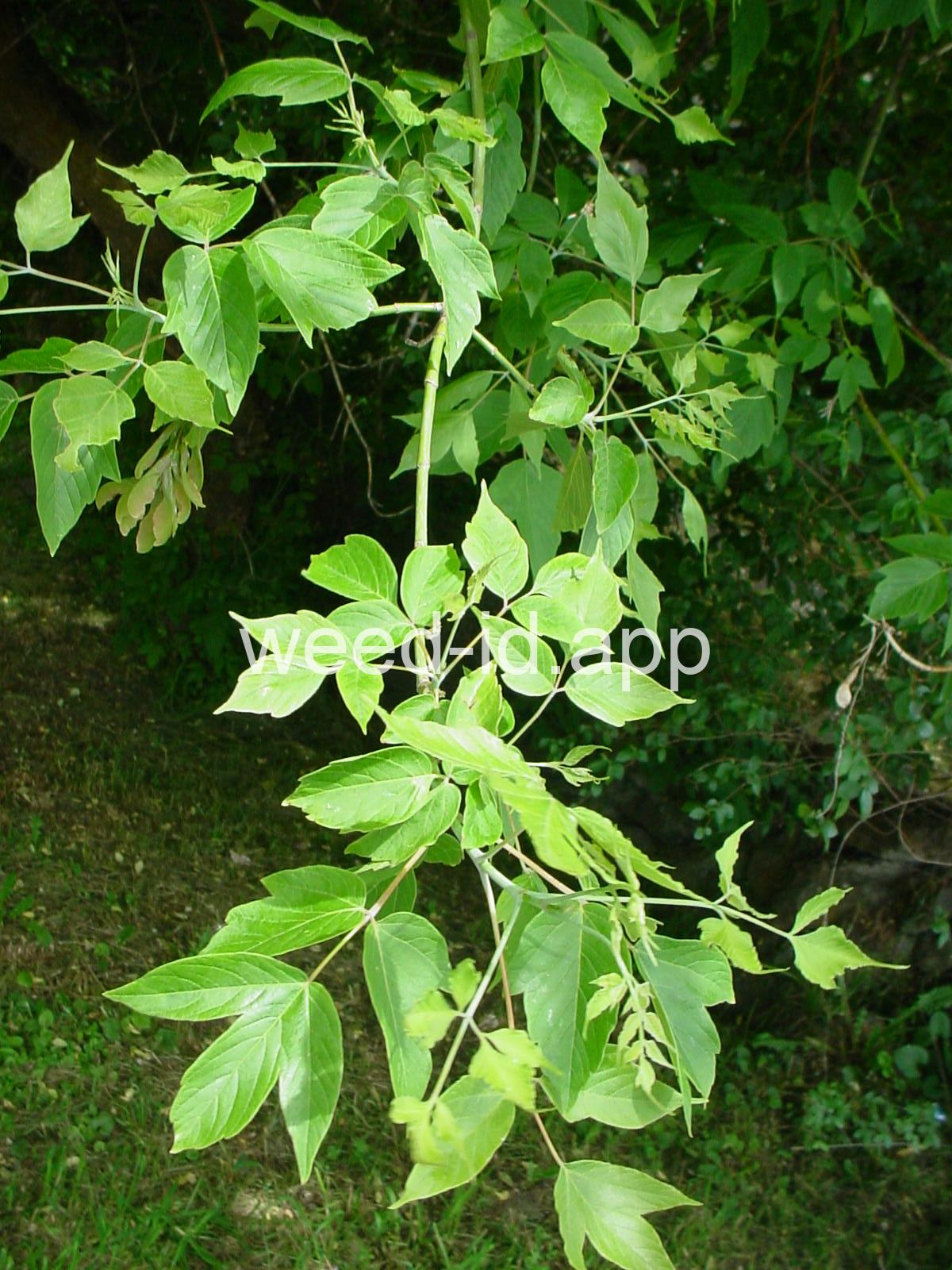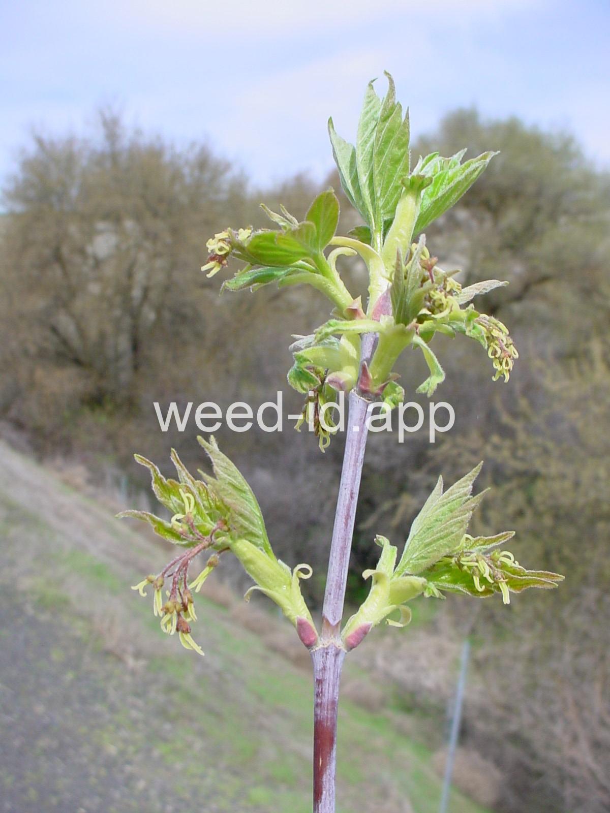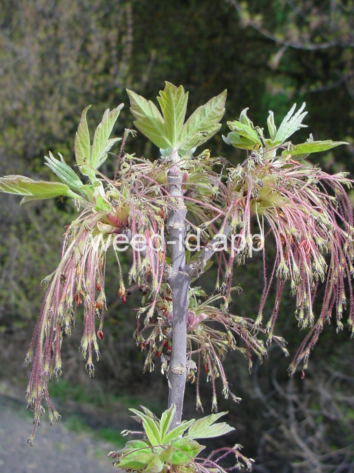 New growth covered with a blueish-white film which is botanically referred to as `glaucous bloom.` Despite the common name and the pinnate leaves, this tree is really a maple as is evident from the fruit.