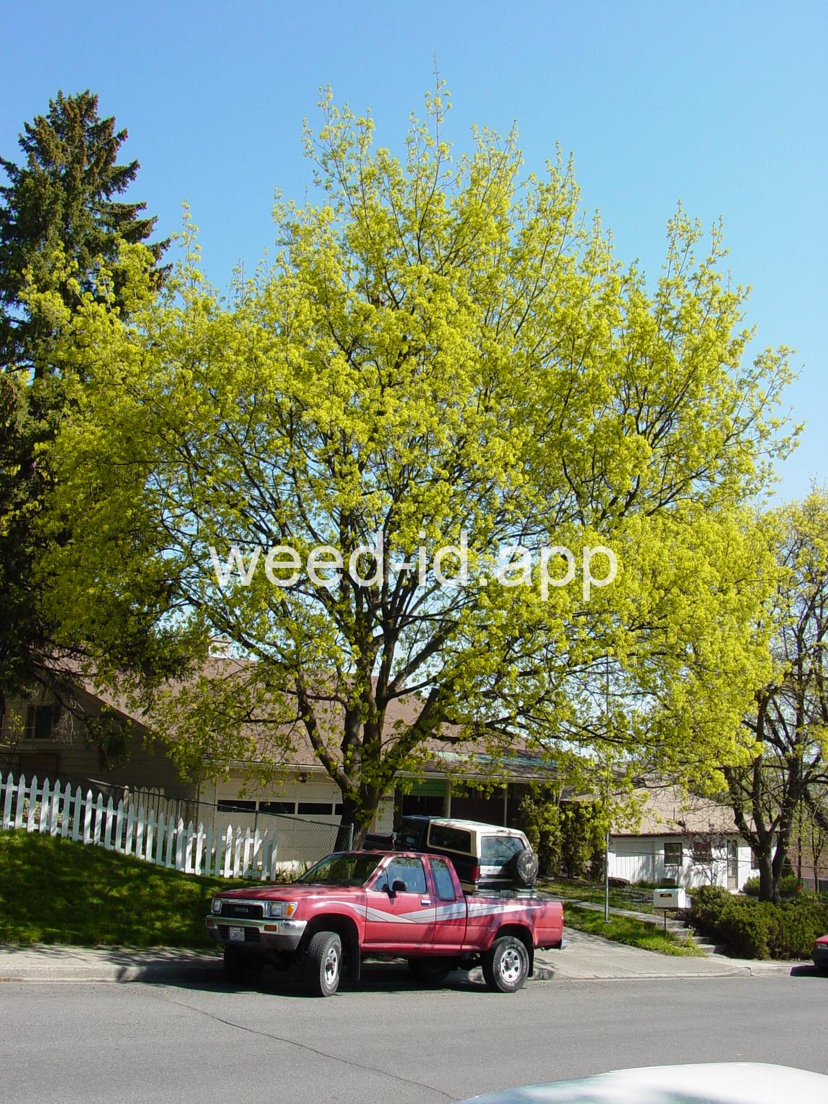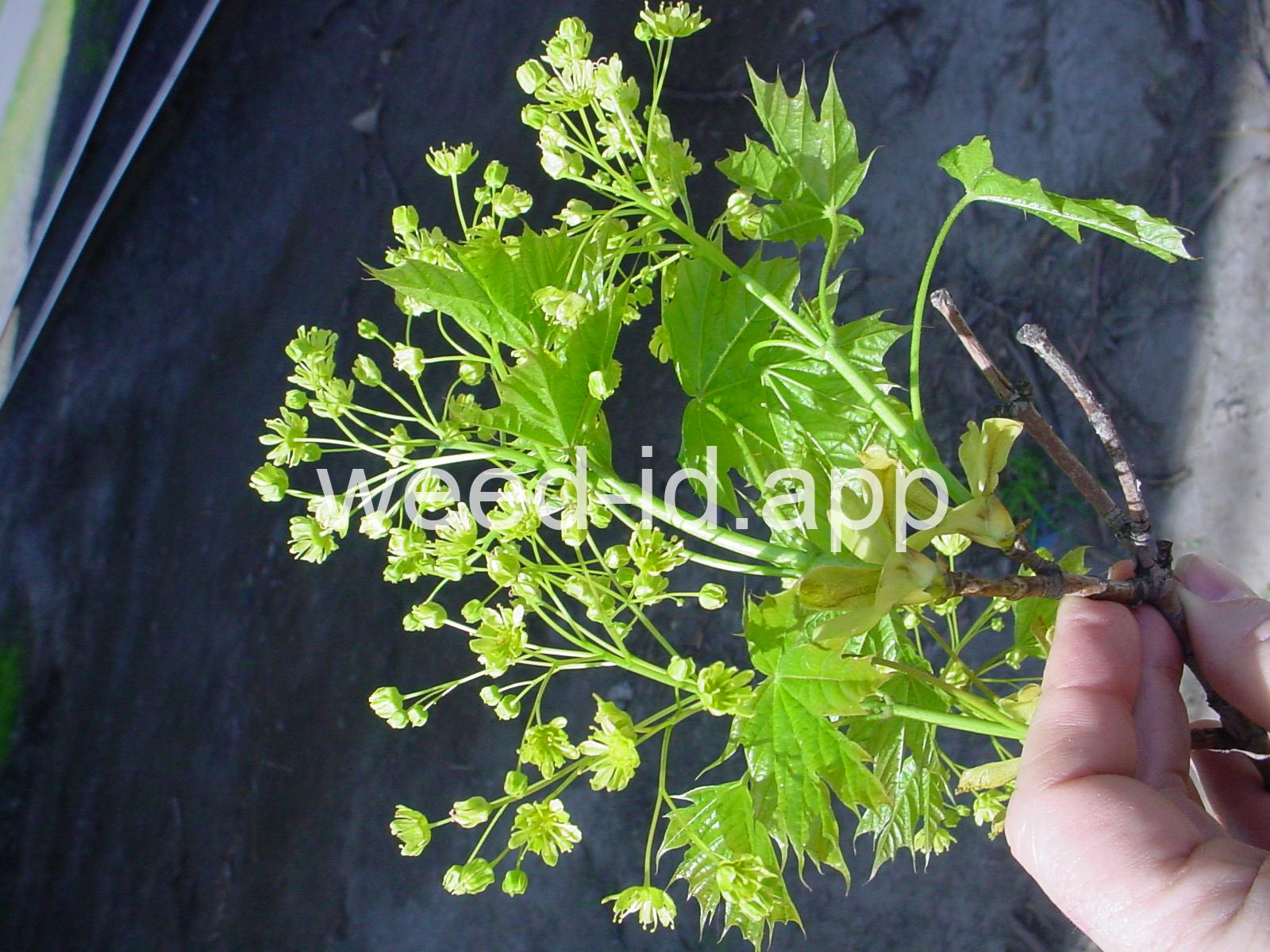 The clusters of yellow-green flowers appearing with the shiny green new leaves in the spring. This is one of the most weedy members of the genus.