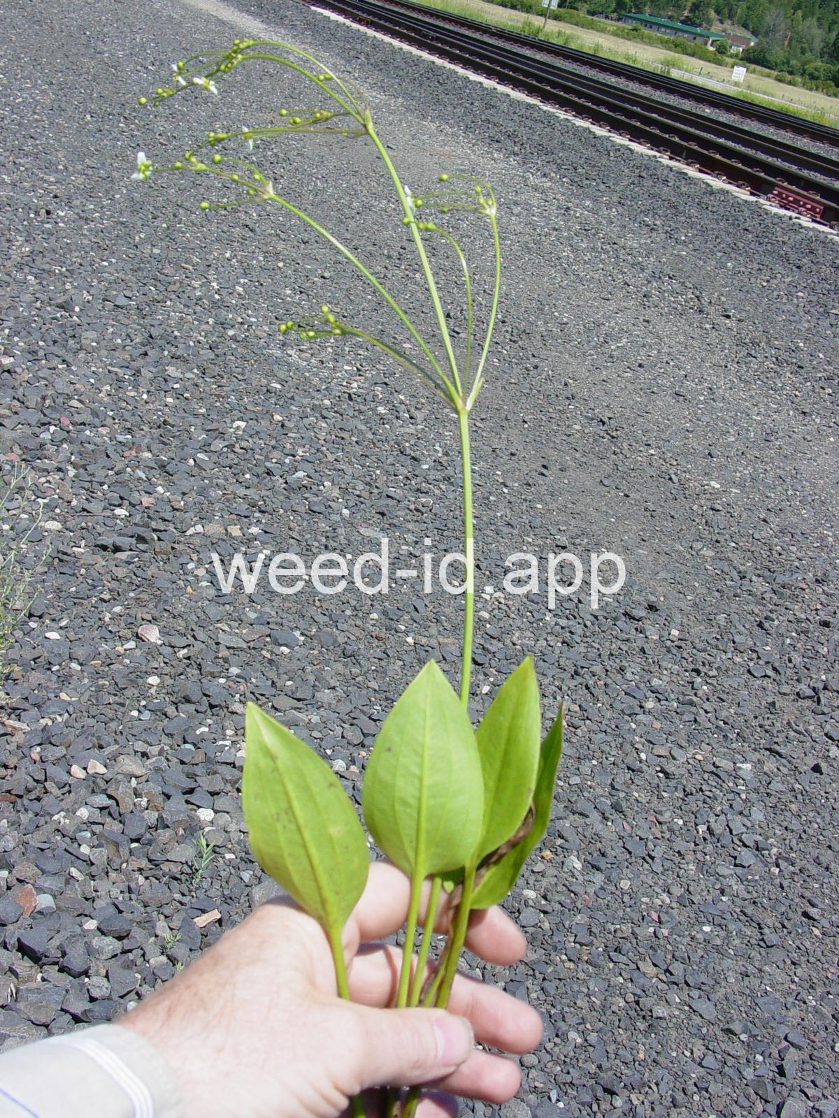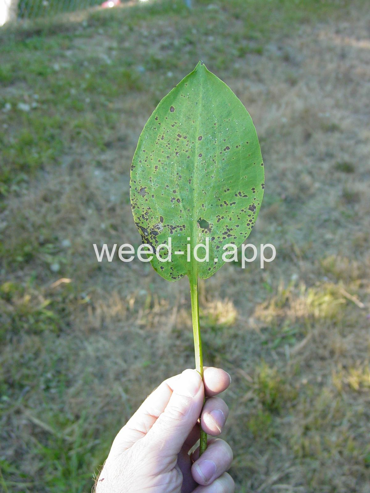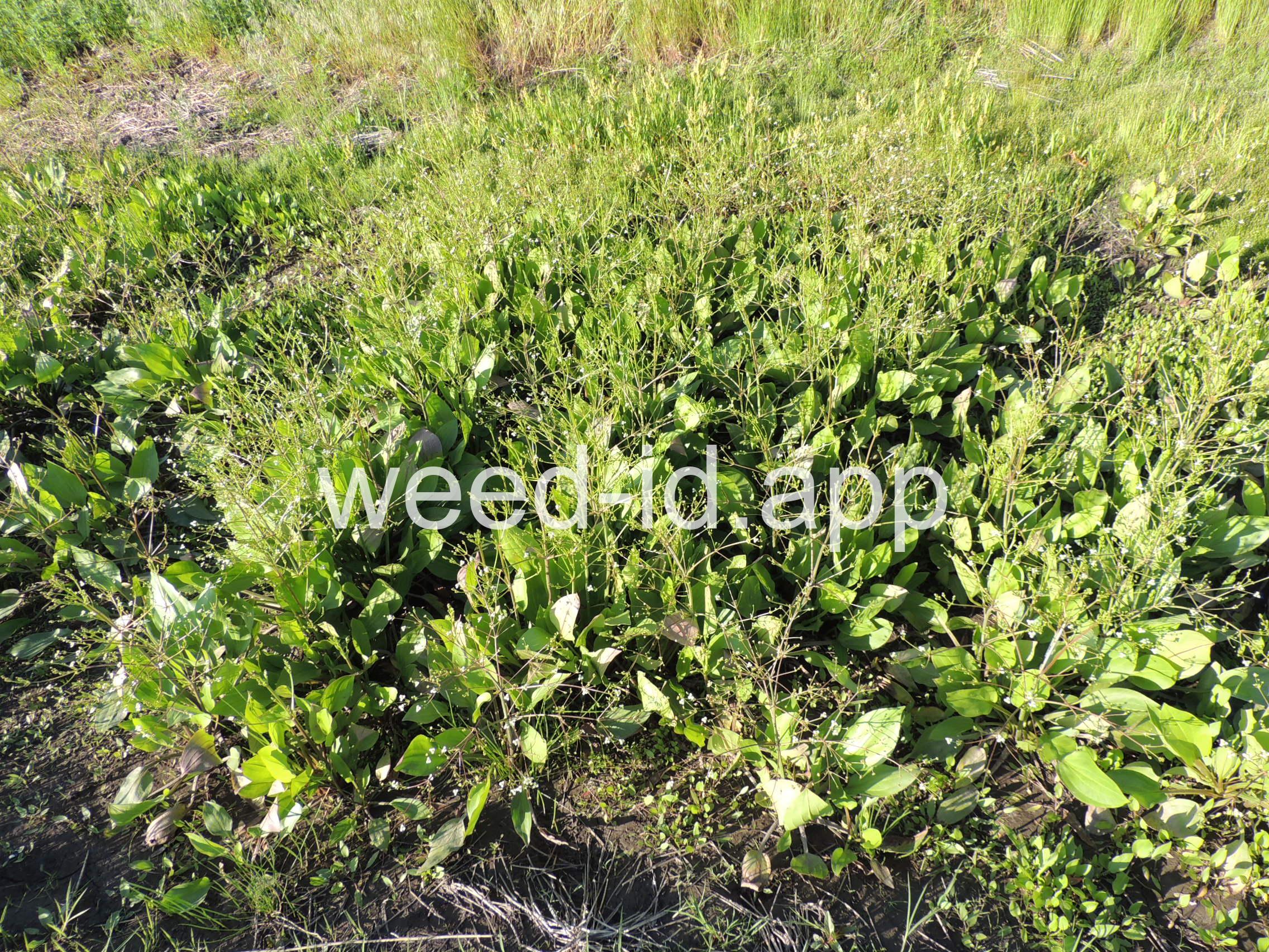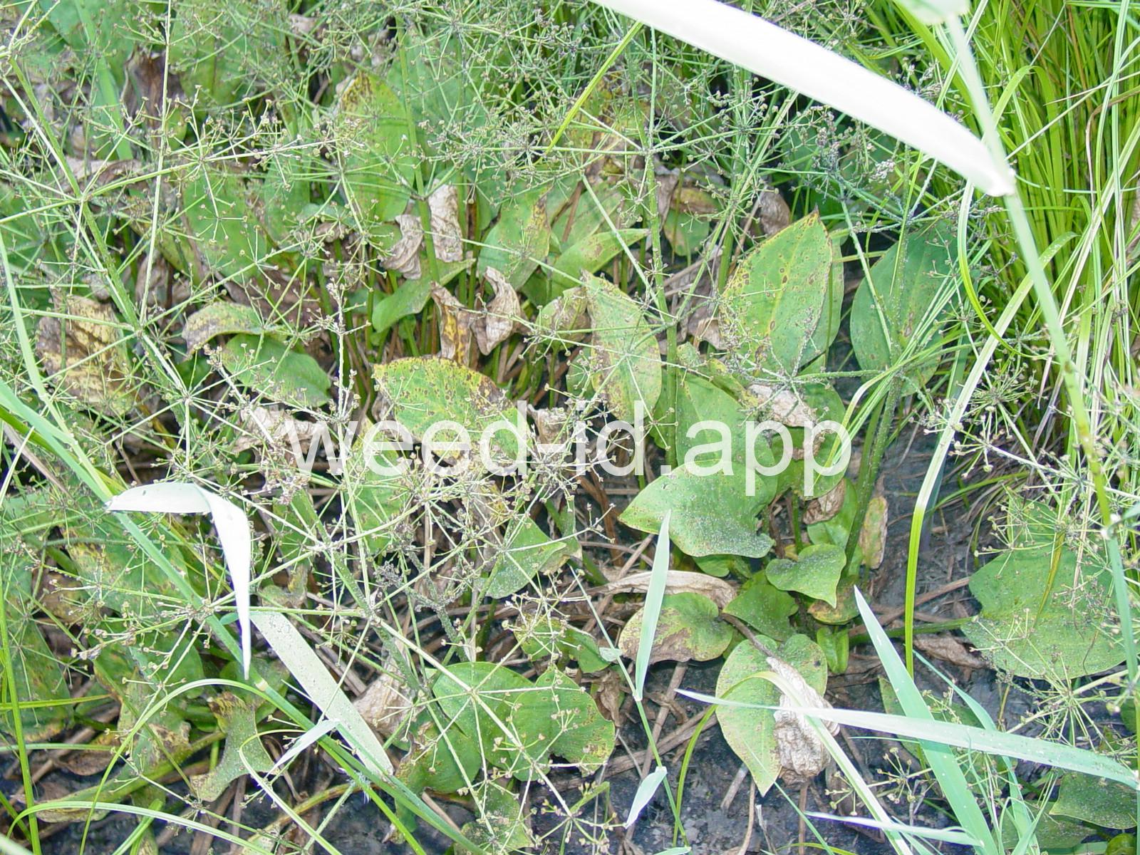 A common, native, aquatic plant. The flowers are very similar to those of the arrowheads (3 white petals) but arranged in a broad panicle and the leaves do not have prominent basal lobes.