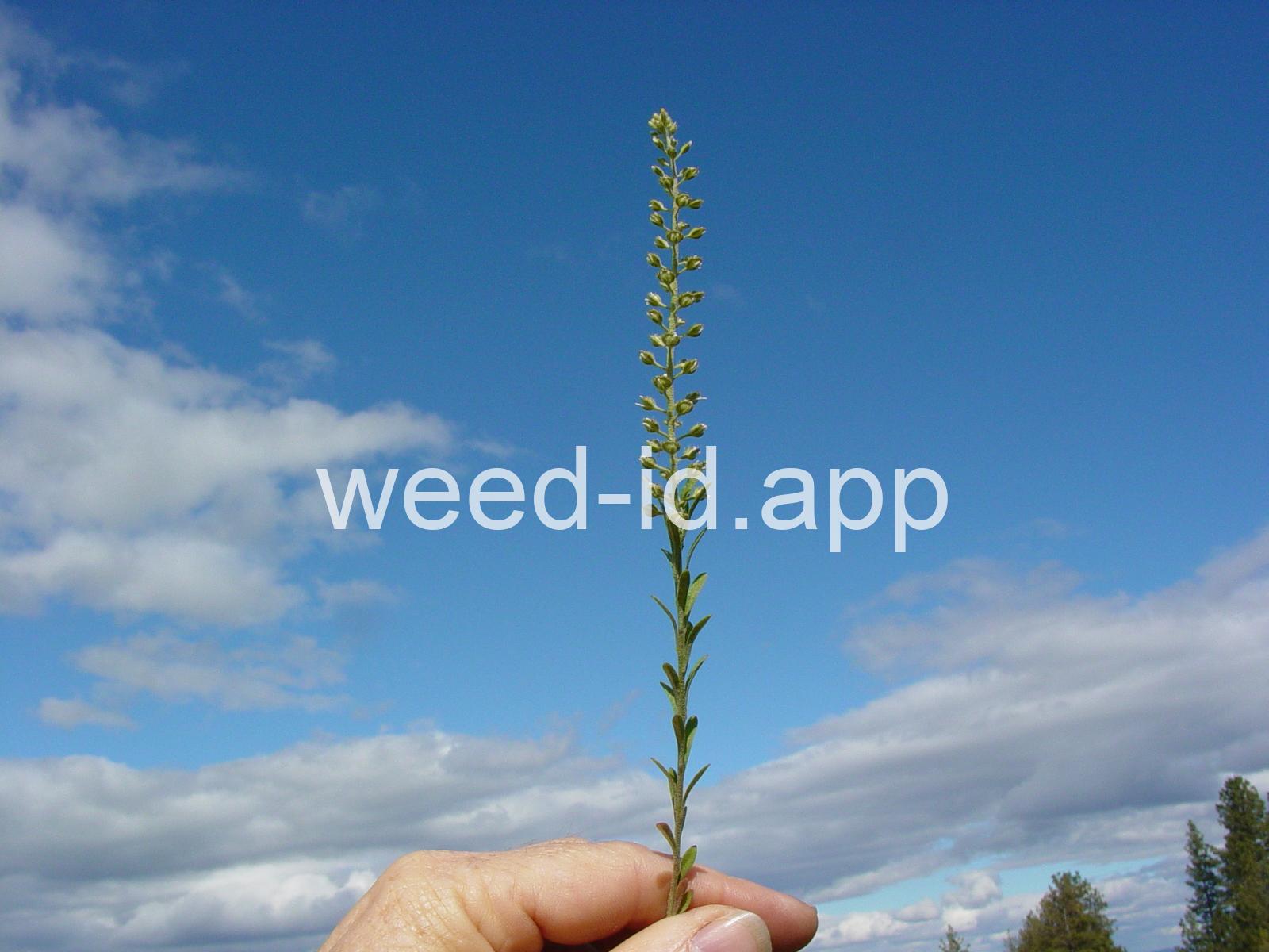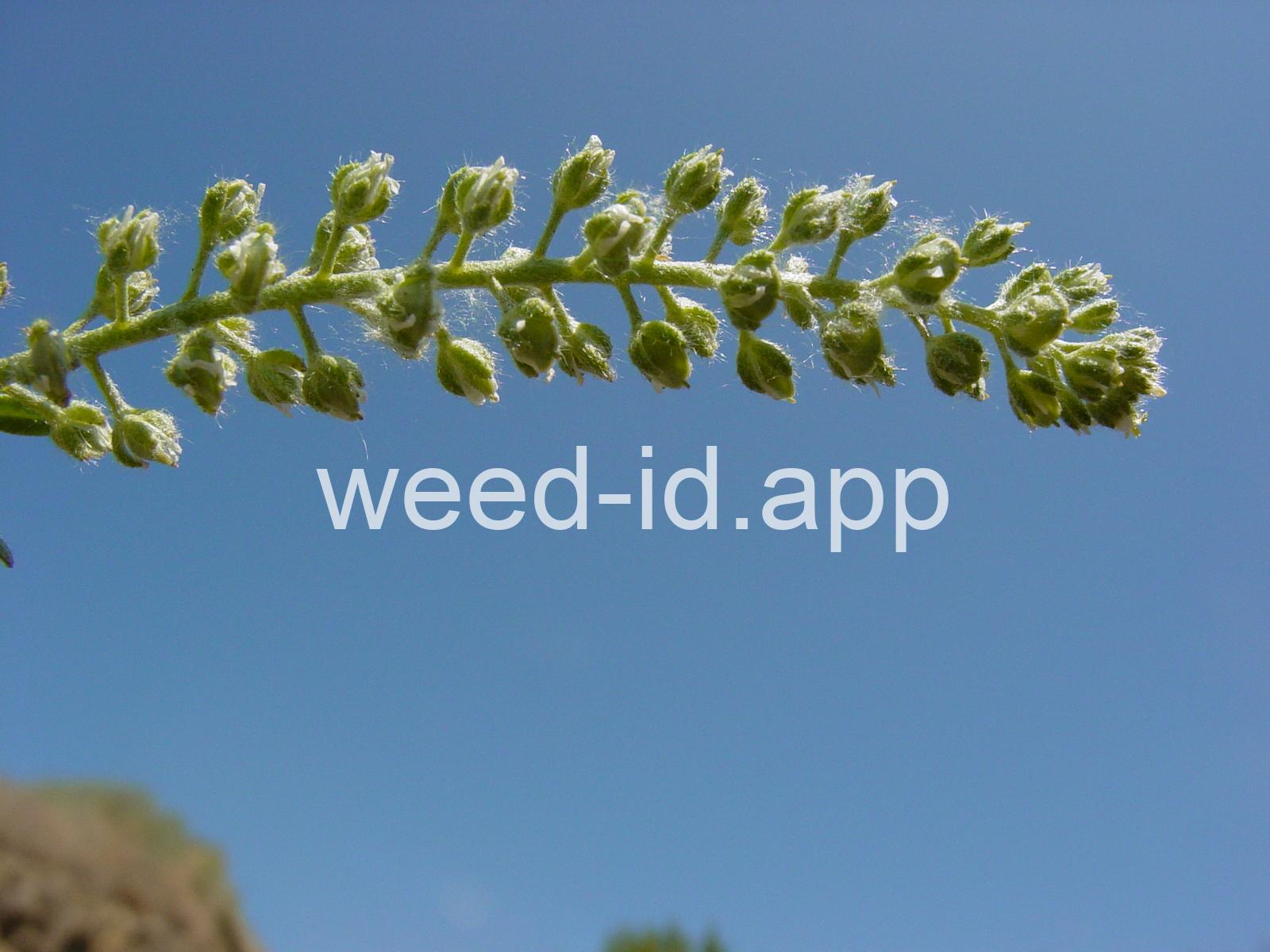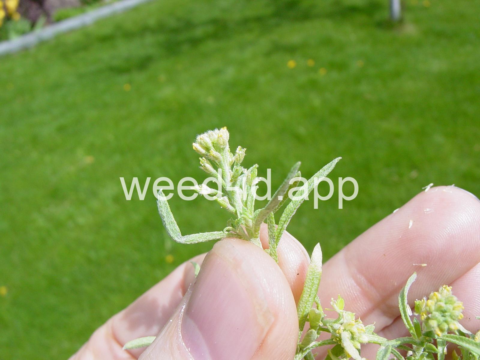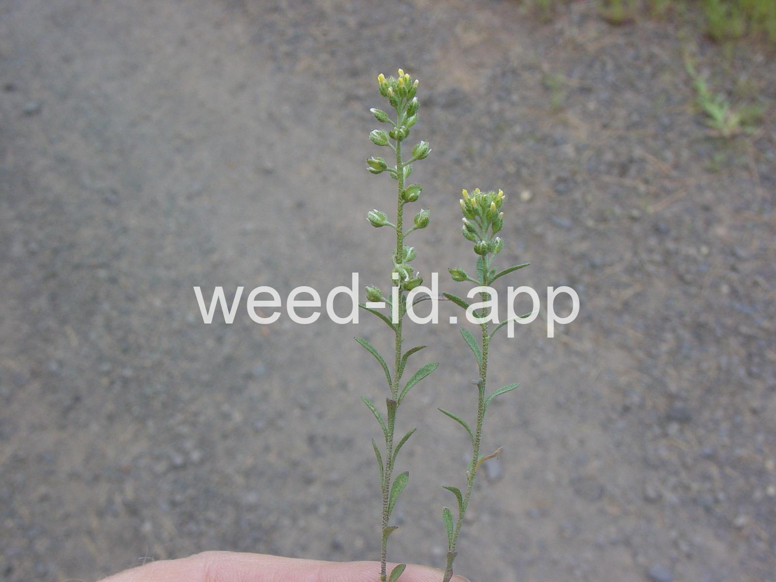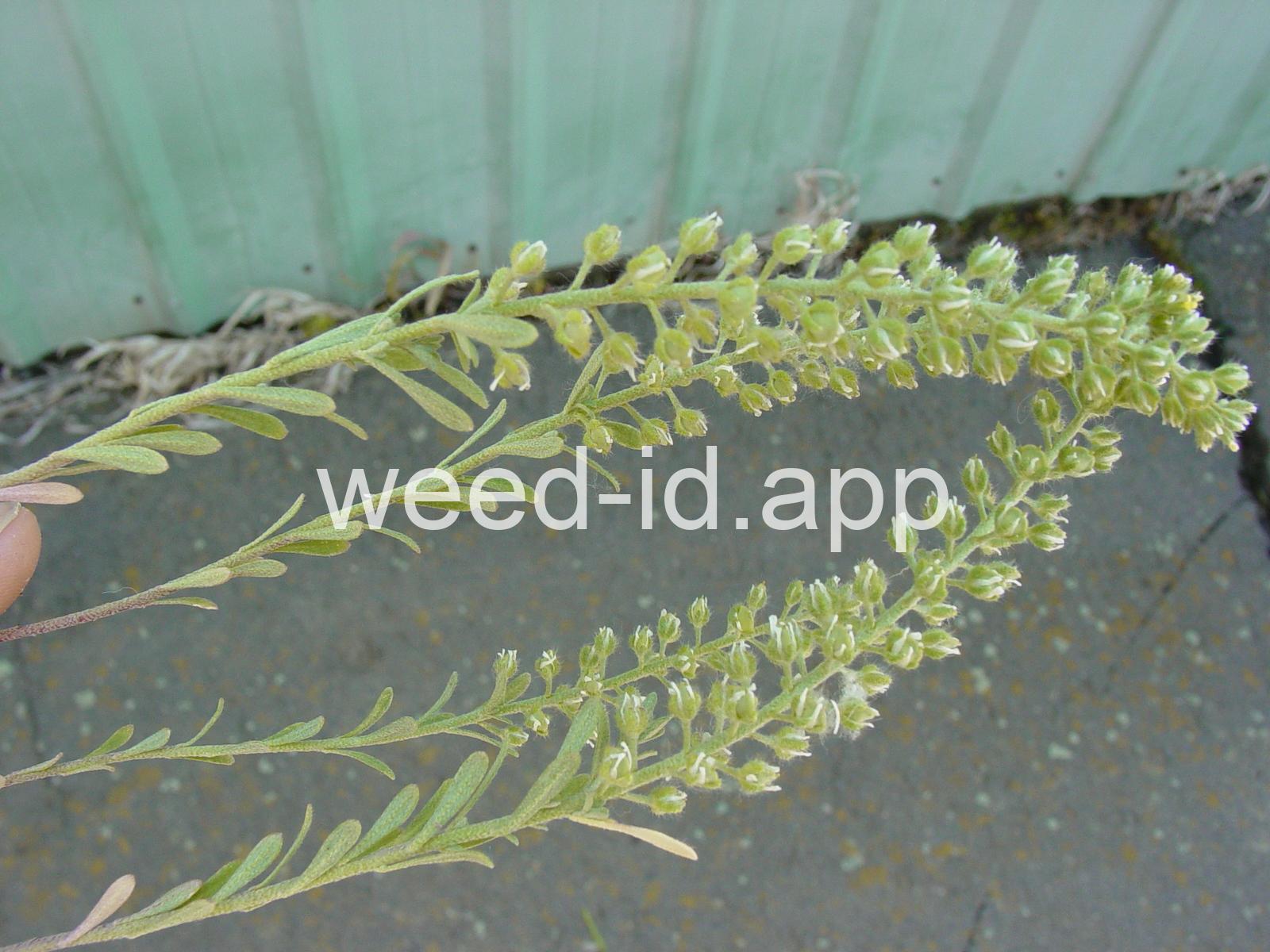 A diminutive annual of arid range and wasteland. The petals small, light yellow fading to white. The fruit is a small erect or spreading disk with a narrow wing-like margin. It is very similar to dwarf alyssum (Alyssum desertorum) but differs in the following characteristics: Alyssum desertorum: Fruit hairless, sepals deciduous at maturity. Alyssum alyssoides: Fruit covered with closely appressed star shaped hairs, sepals present at maturity.