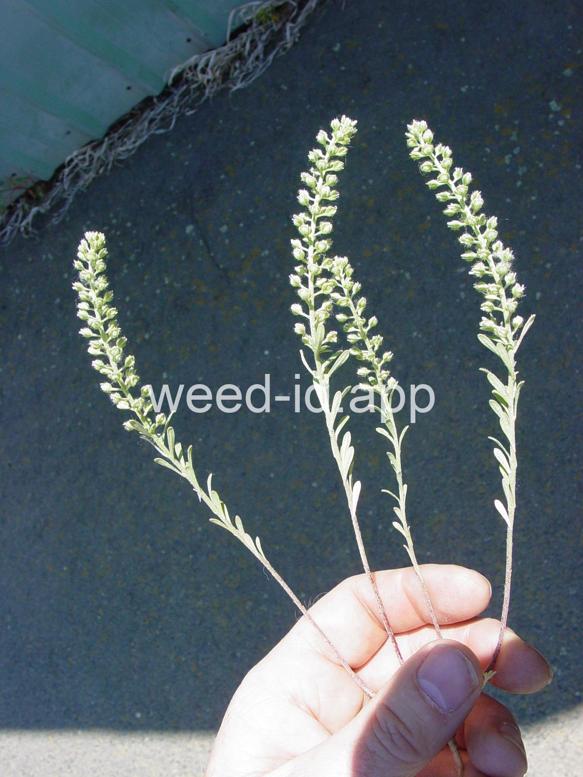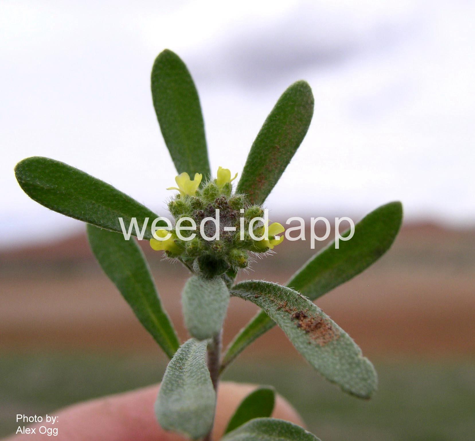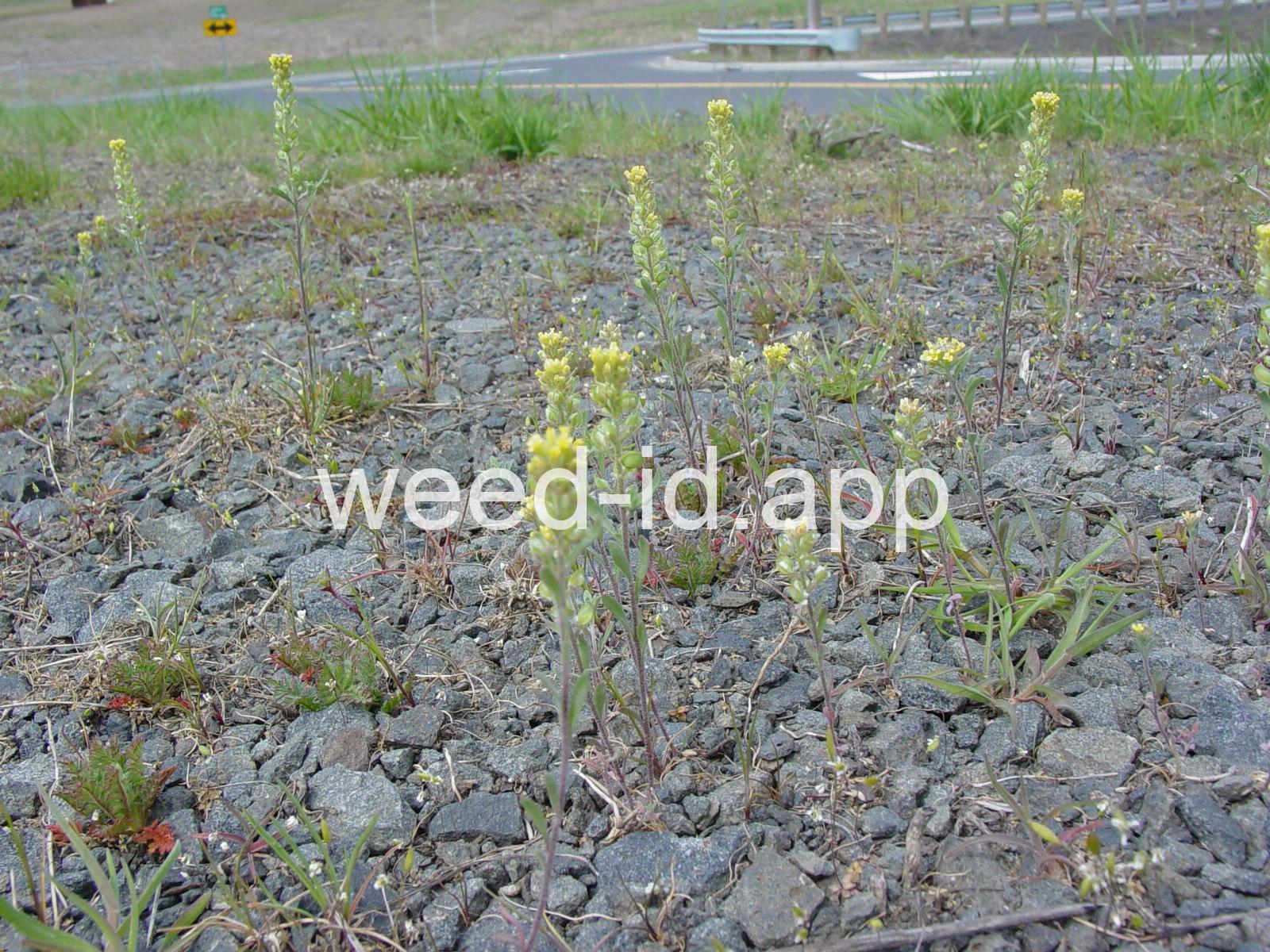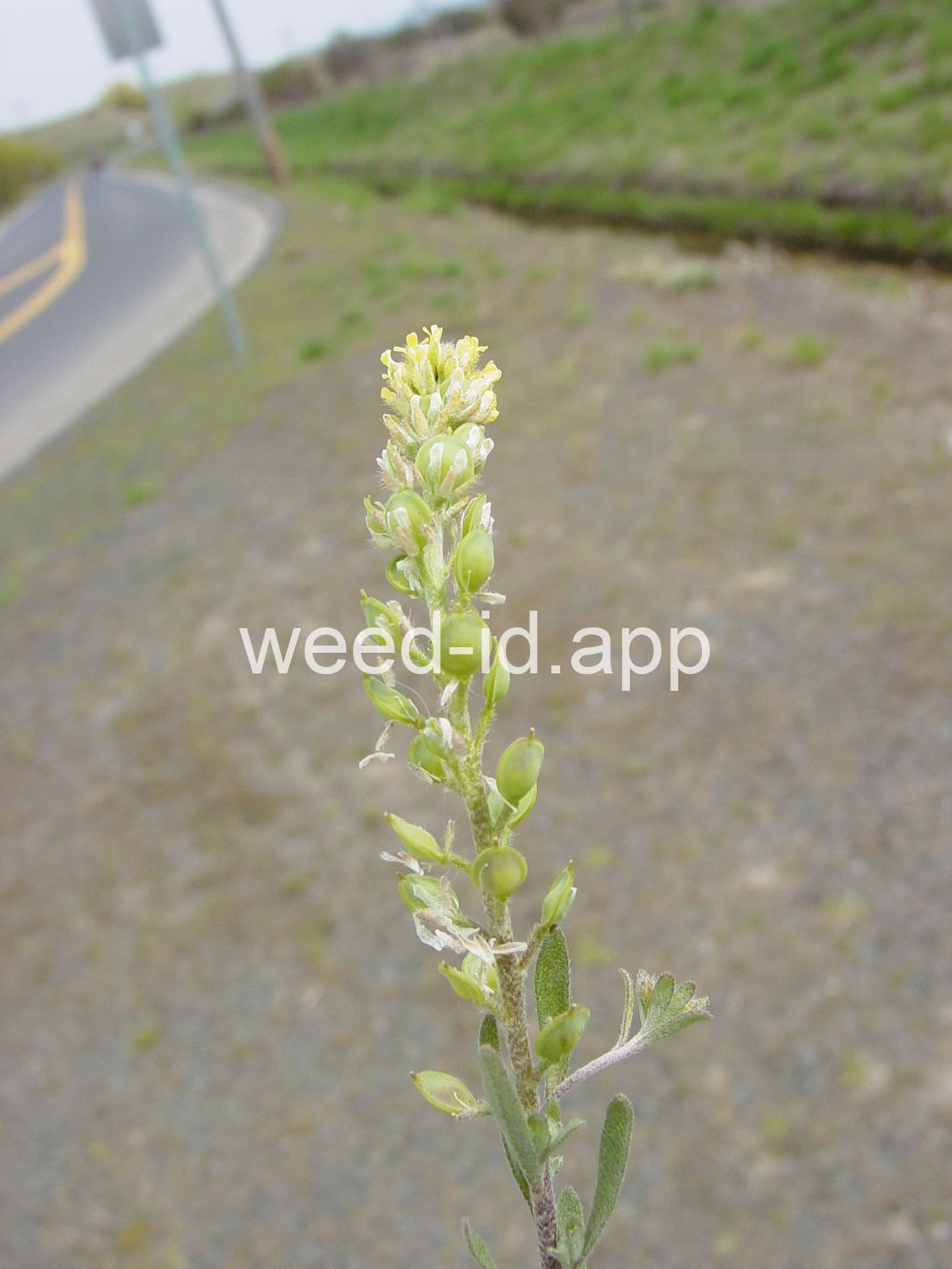 A small, annual weed of dry range and wasteland. The petals small, light yellow fading to white. The fruit is a small erect or spreading disk with a small winged margin. This species is very similar to yellow alyssum (Alyssum alyssoides) but differs in the following characteristics: Alyssum desertorum: Fruits hairless, sepals deciduous at maturity Alyssum alyssoides: Fruits covered with star shaped hairs, sepals present at maturity.