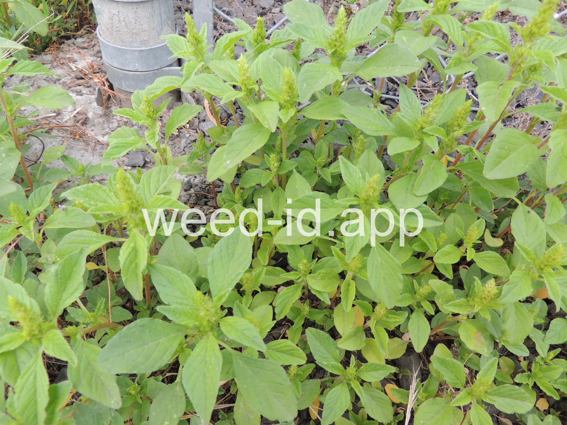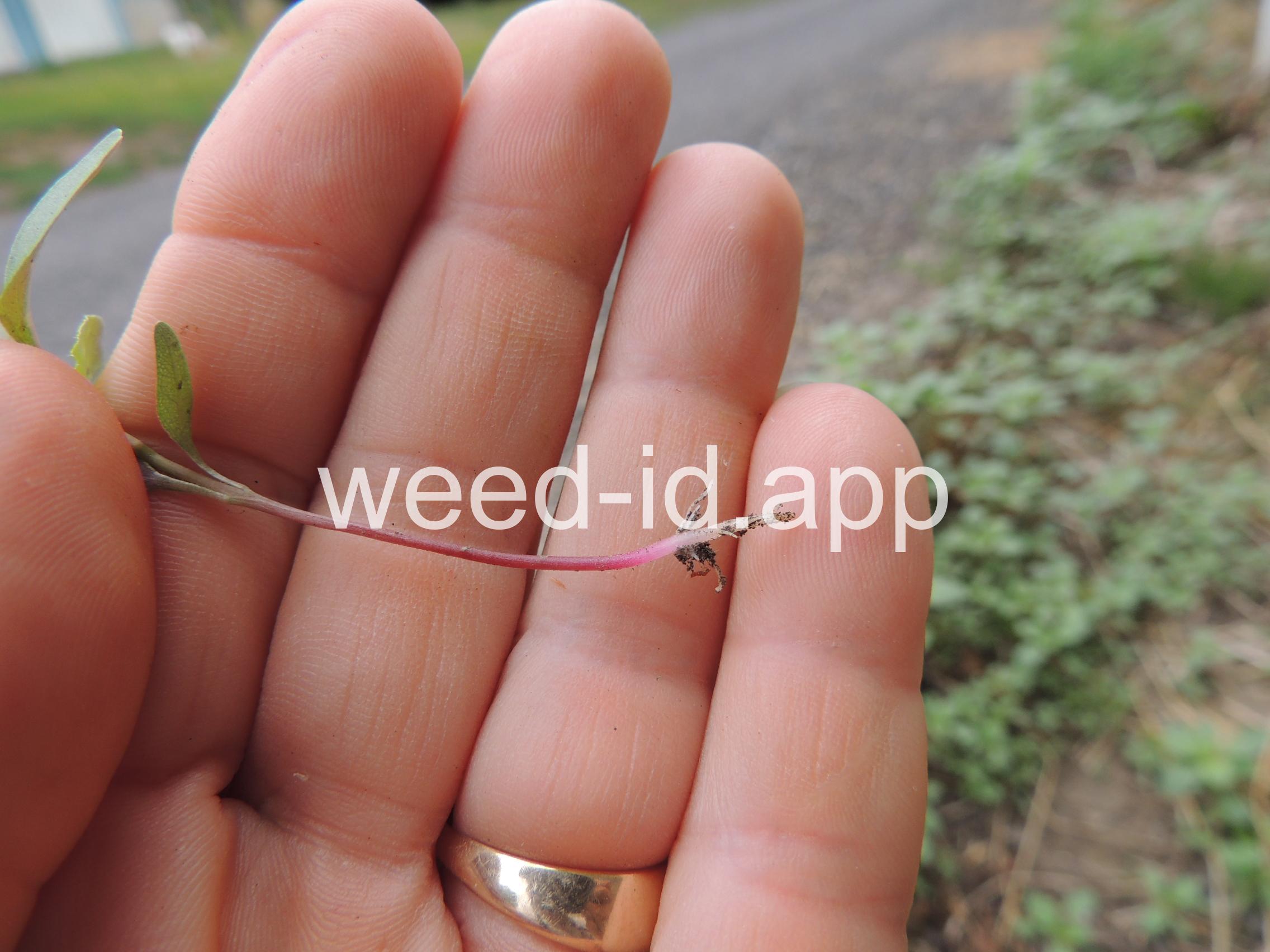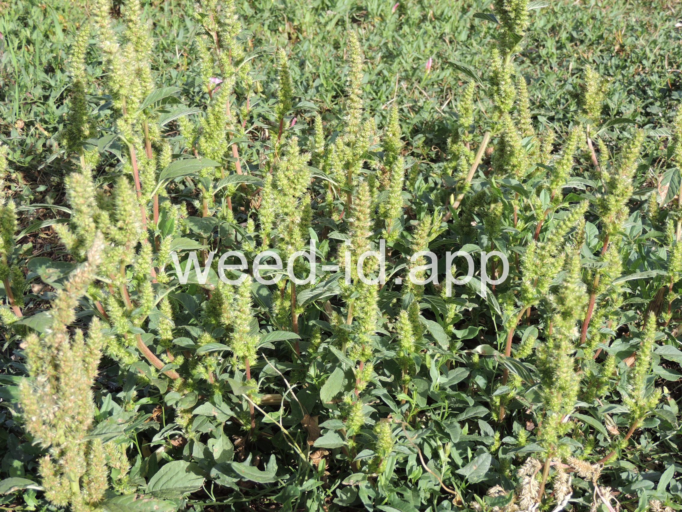 Also known as `rough pigweed.` The terminal spike is much shorter and broader than on the closely related Amaranthus powellii, Amaranthus palmeri, or Amaranthus hybridus. The taproot and often the lower stem base are reddish in color; hence the common name. As with all members of this genus, the flowers are small, green, and subtended by small spines.