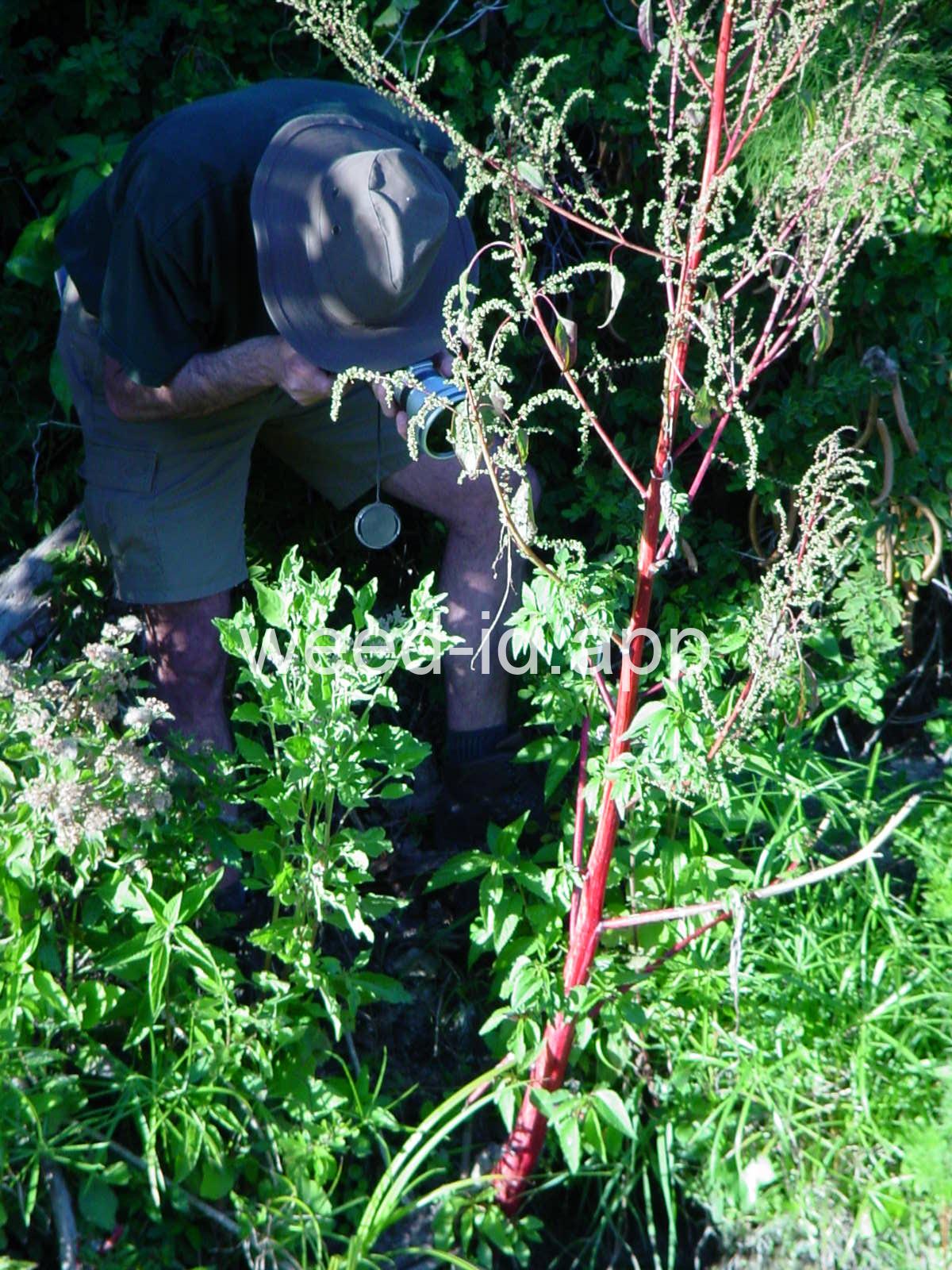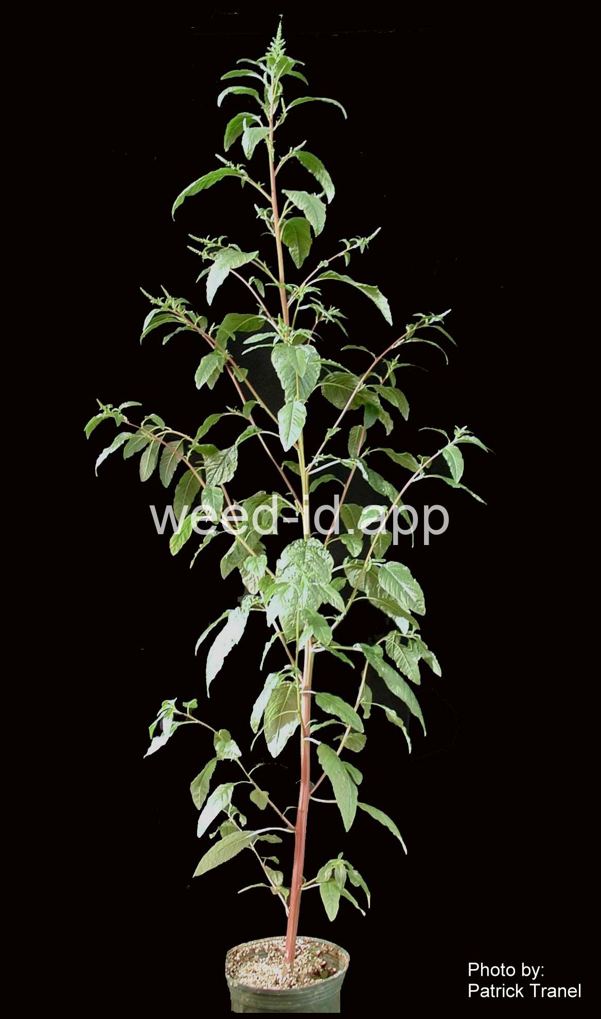 Male and female flowers on separate plants. The female flowers with the sepals tiny or lacking. The male flowers with bracts 1-2.5 mm long and the mid-vein of the outer sepals not extending past the tips. Often in saturated soils or irrigated crops.