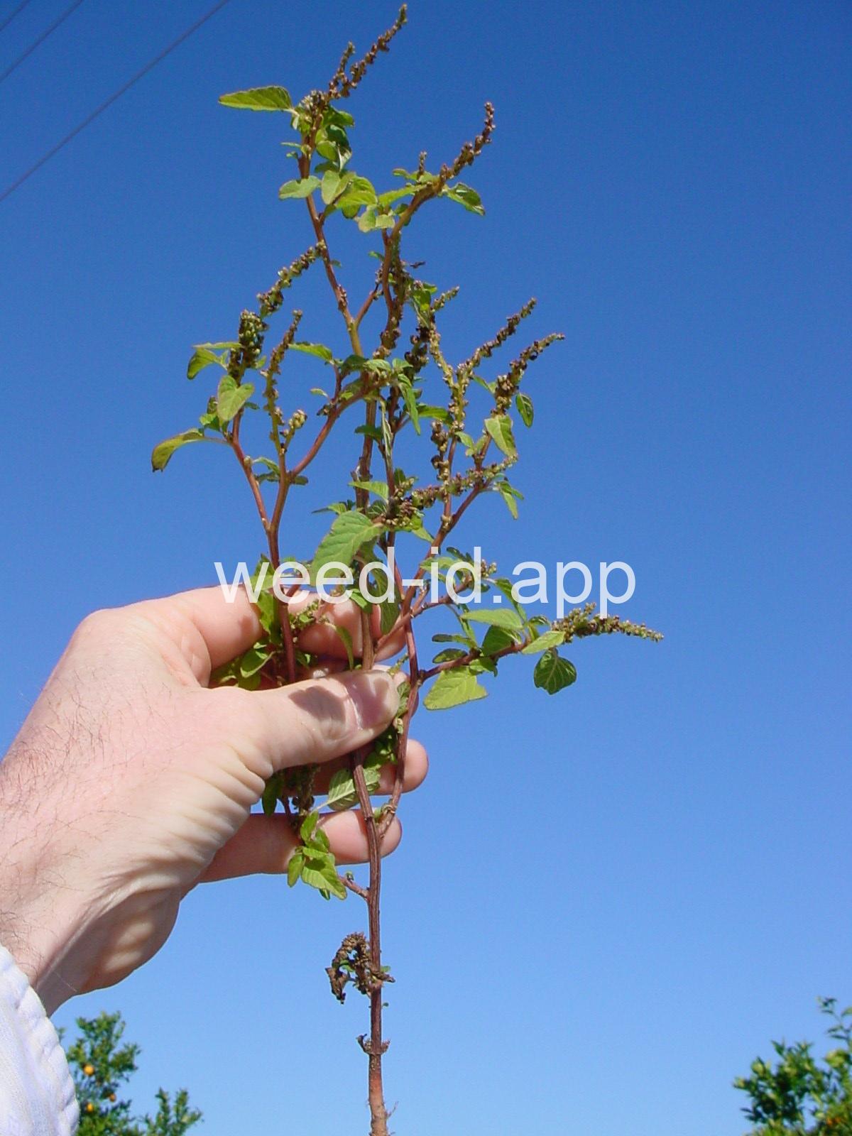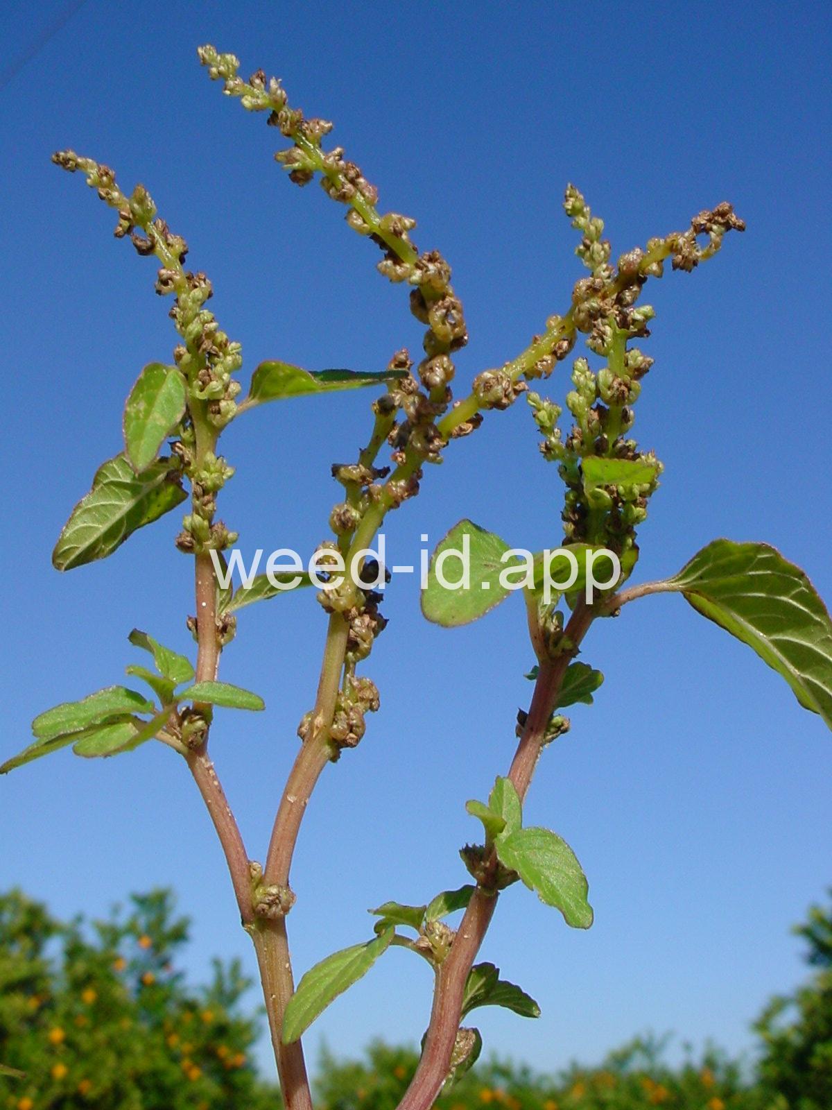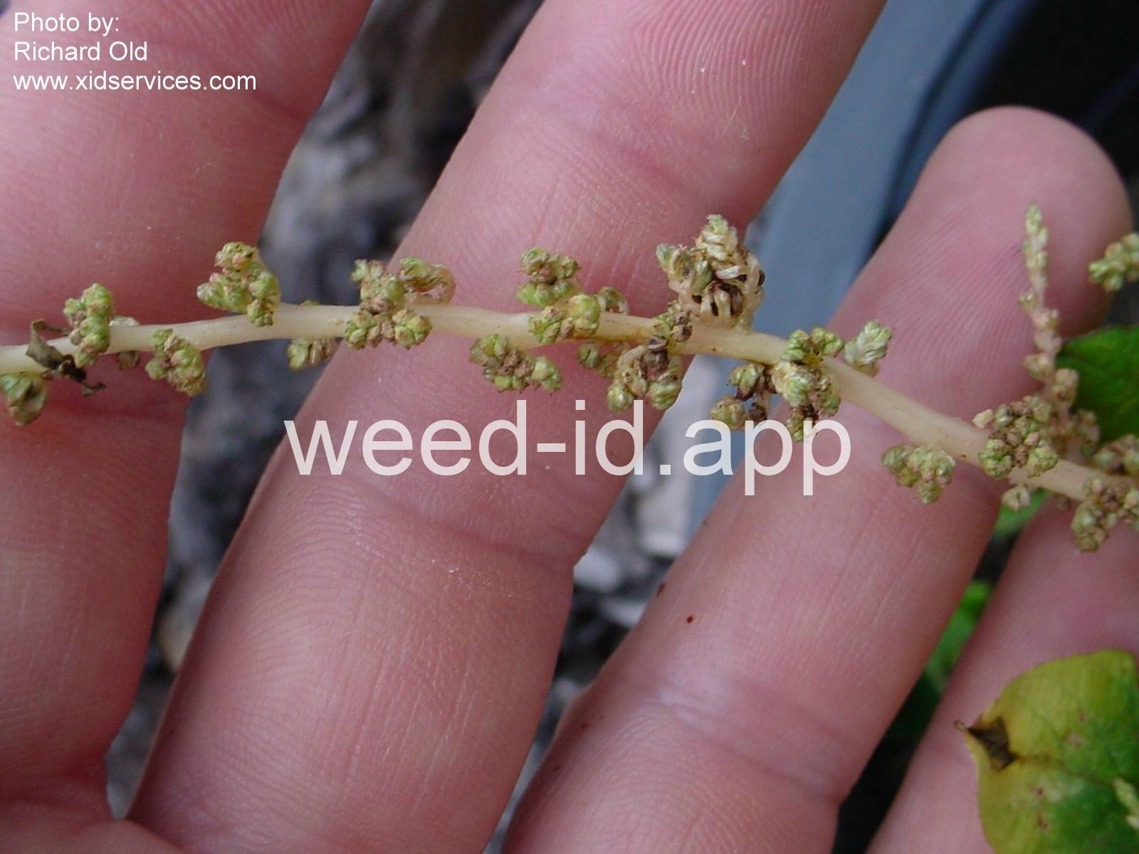 Similar in general appearance to spiny pigweed but without spines at the nodes. The fruit is strongly roughened and the spiny bracts subtending the flowers are shorter than the flowers.