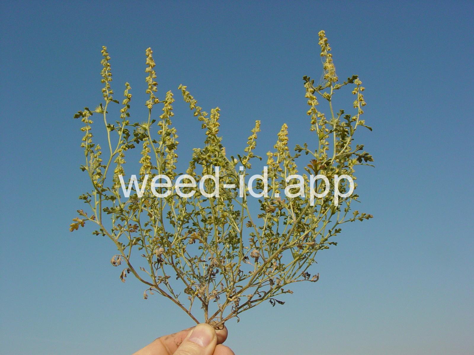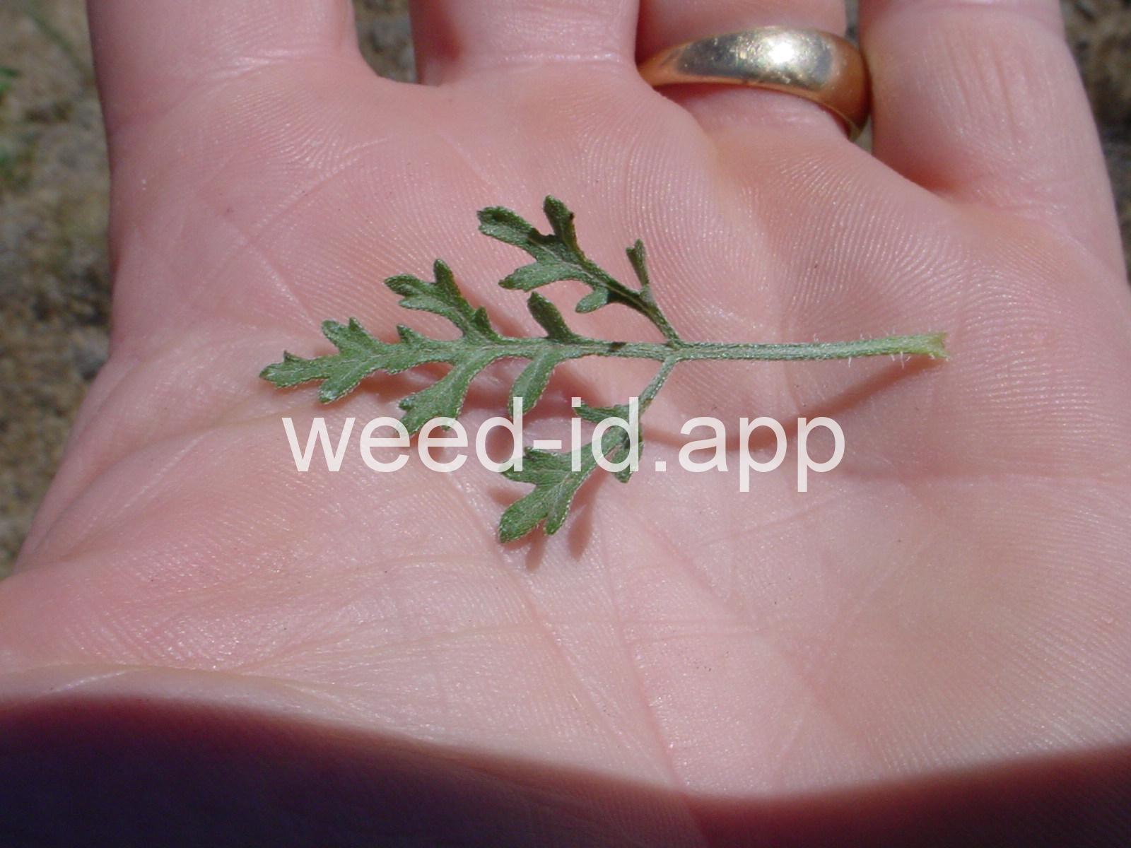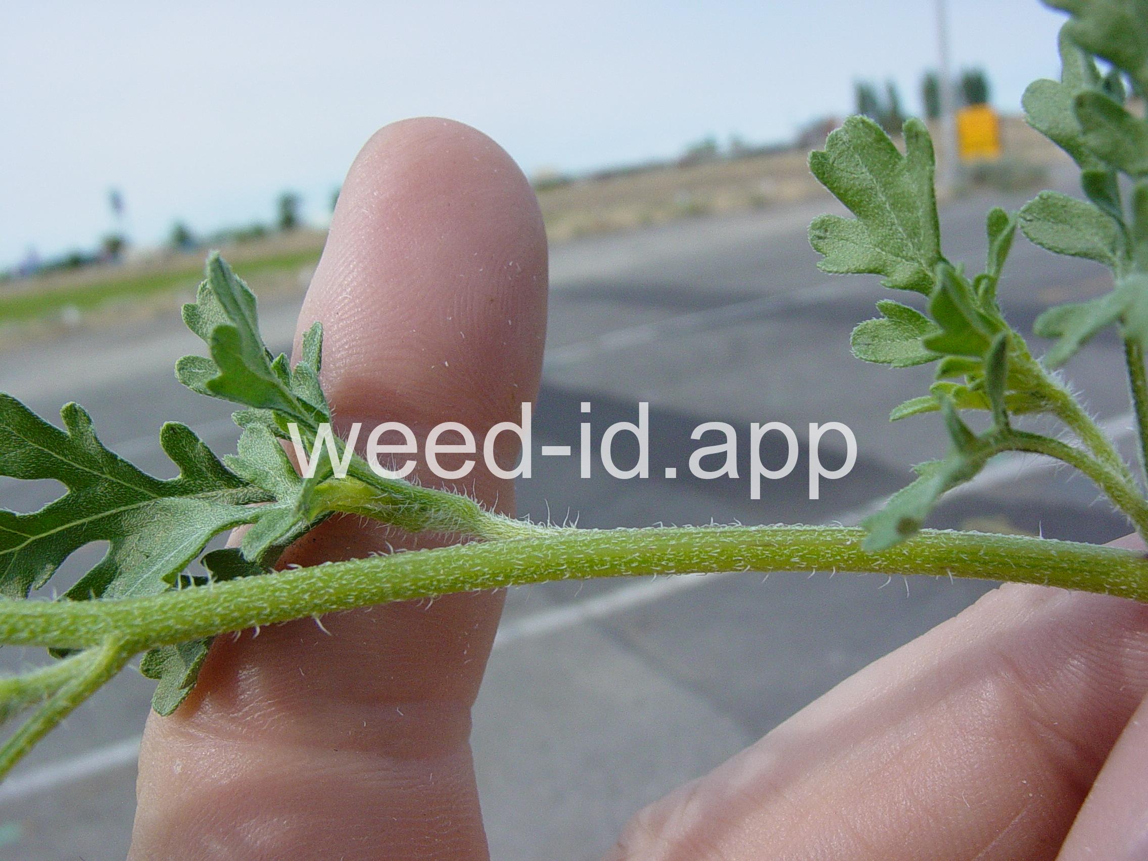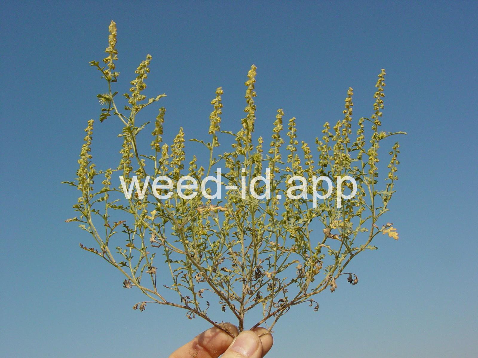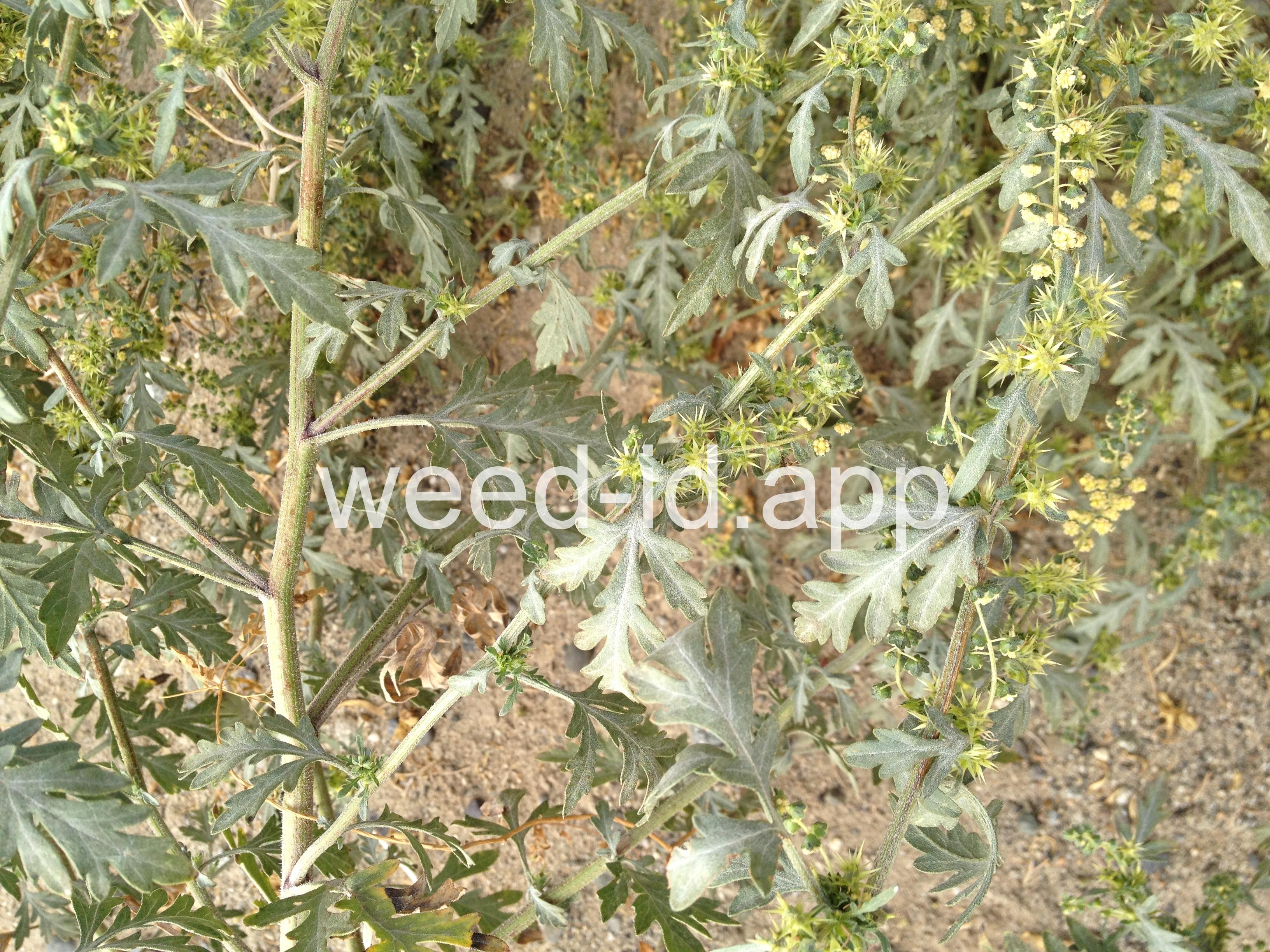 This scabrous annual grows in dry environments. The male and female flowers occur separately on the same plant. The male flowers form small, pendulous heads above the female flowers, which form small, spiny burs (the specific epithet `acanthicarpa` means `thorny fruit`).