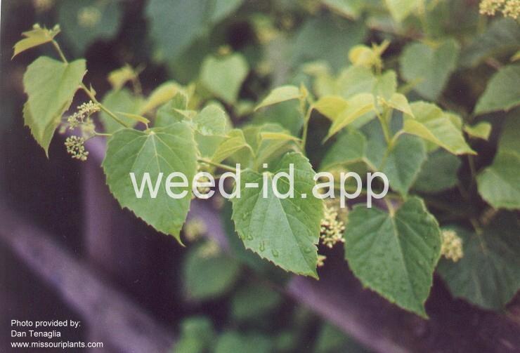 Woody vines similar to grapes (they are close relatives). The fruits are initially green, turn orange-pink, and are turquoise at maturity. The bark of the vine is tightly attached which allows the plants to be distinguished from grapes (which have loose shredding bark) at any time of year. The fruits are not edible.