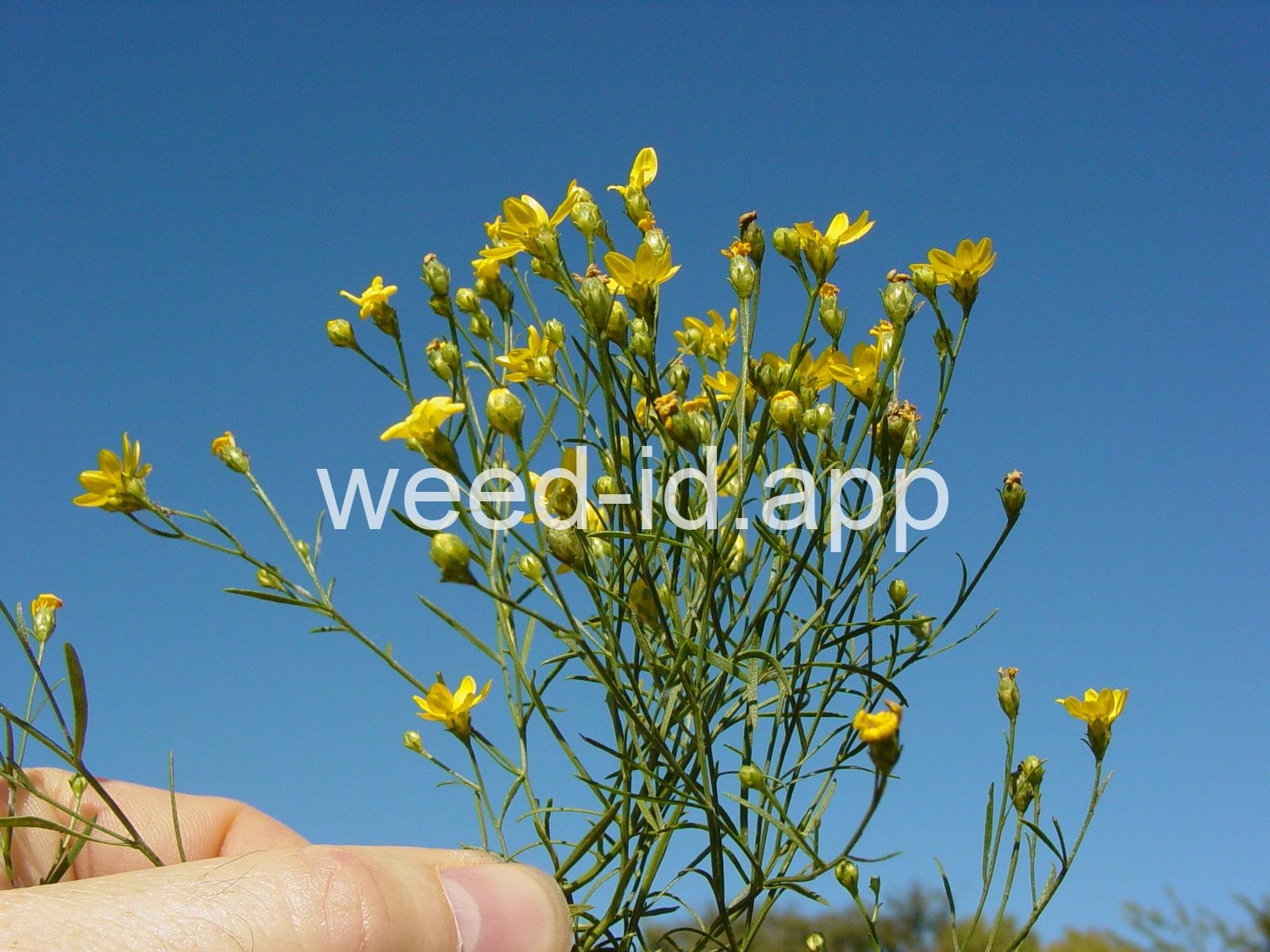 Also known as annual broomweed. Leaves very narrow but sometimes lanceolate as well as linear. Often forms large stands in over-grazed, alkaline pastures.