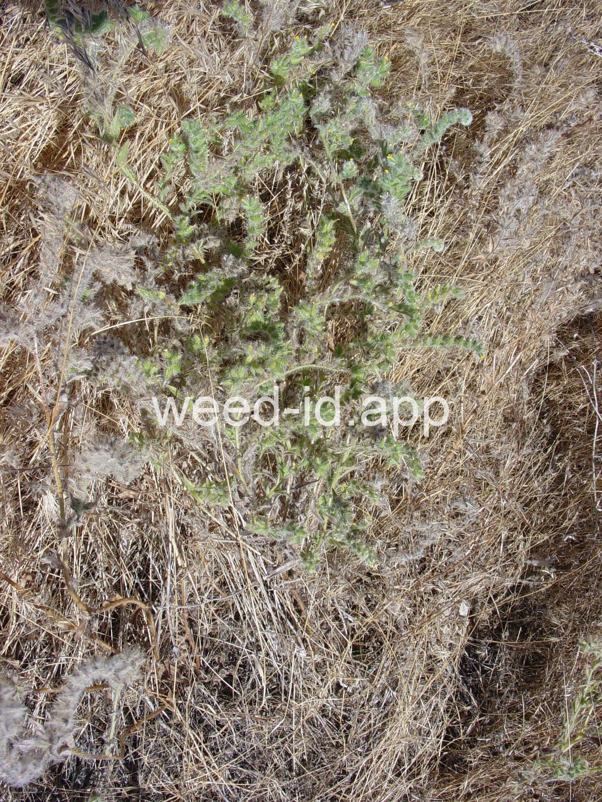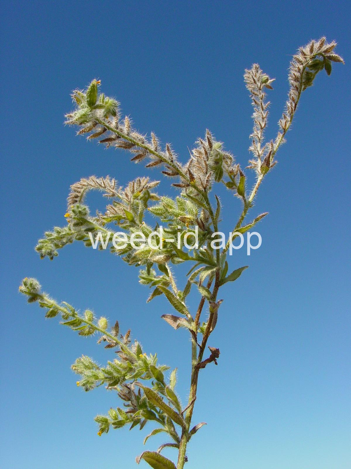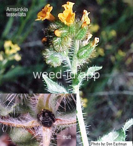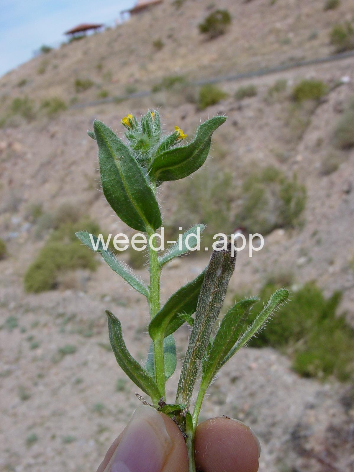 A native species of dry sites. The leaves are covered with pimple-based bristly hairs, and the tubular orange flowers occur in a coiled (scorpioid) inflorescence. The flowers in this species are smaller than in many similar members of the genus.