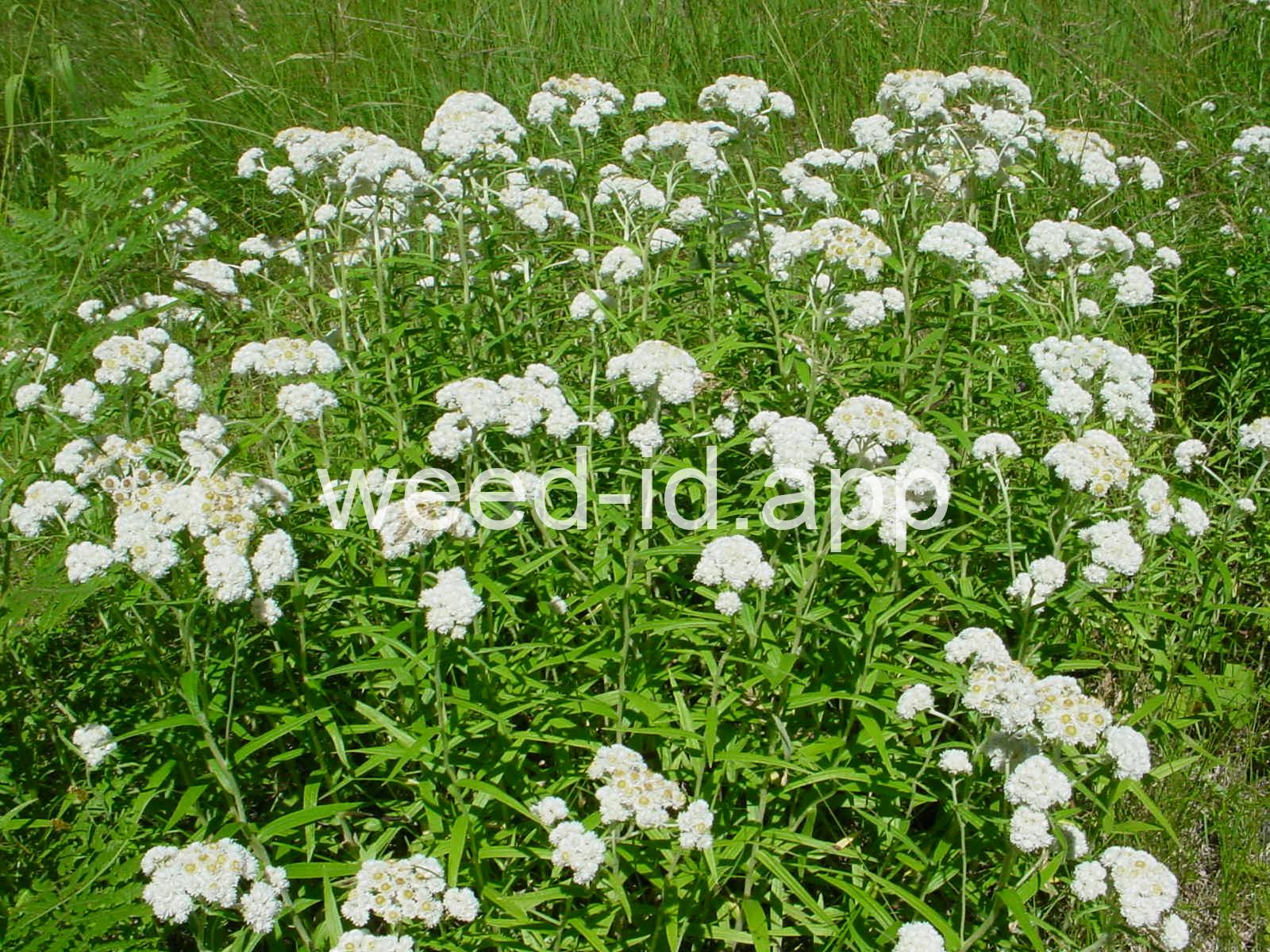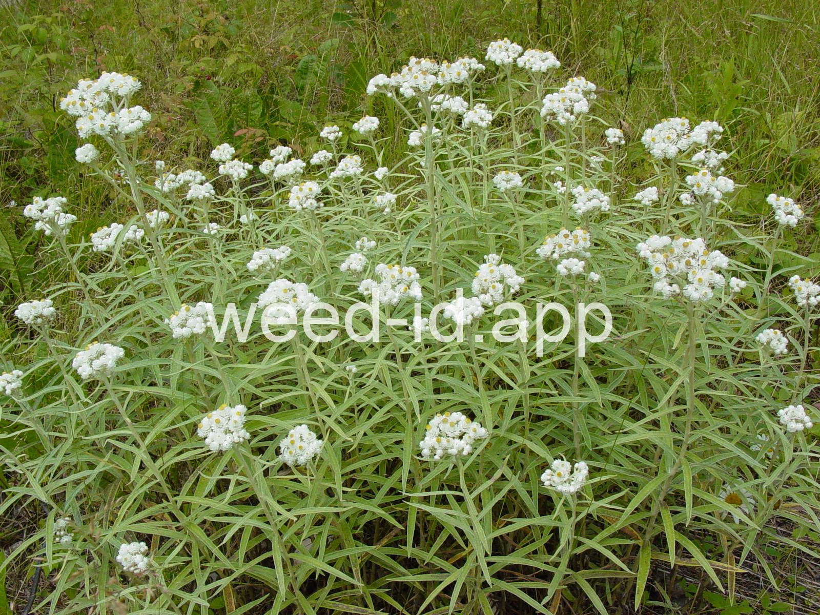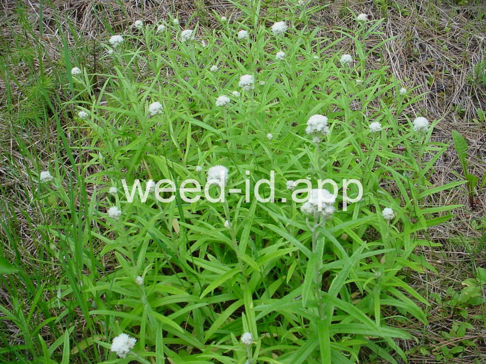 A native wildflower throughout much of North America. It is commonly found in openings in forested communities and may be somewhat invasive in disturbed sites. The bracts are pearly white and the heads are rather dry even at flowering giving the plant the `strawflower` look and feel similar to some species grown and often dyed for use in dried arrangements.