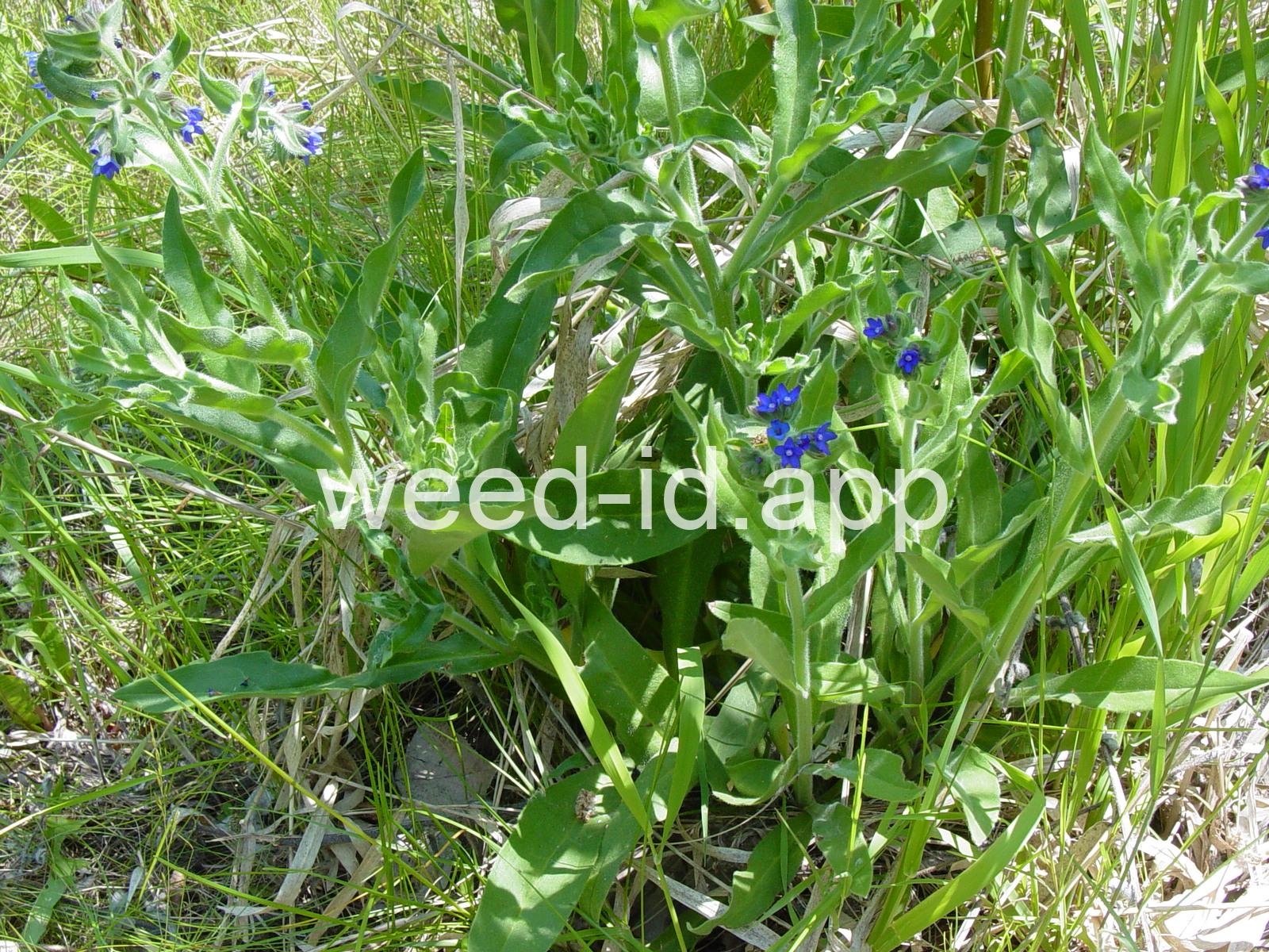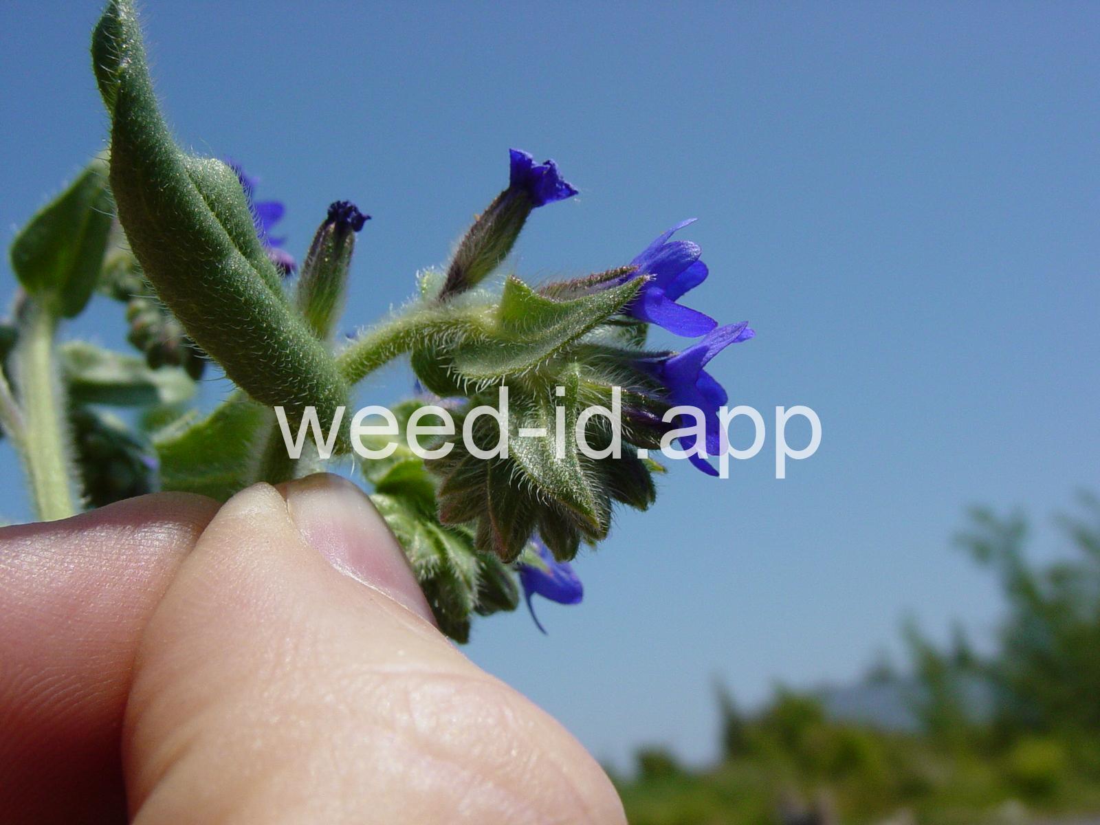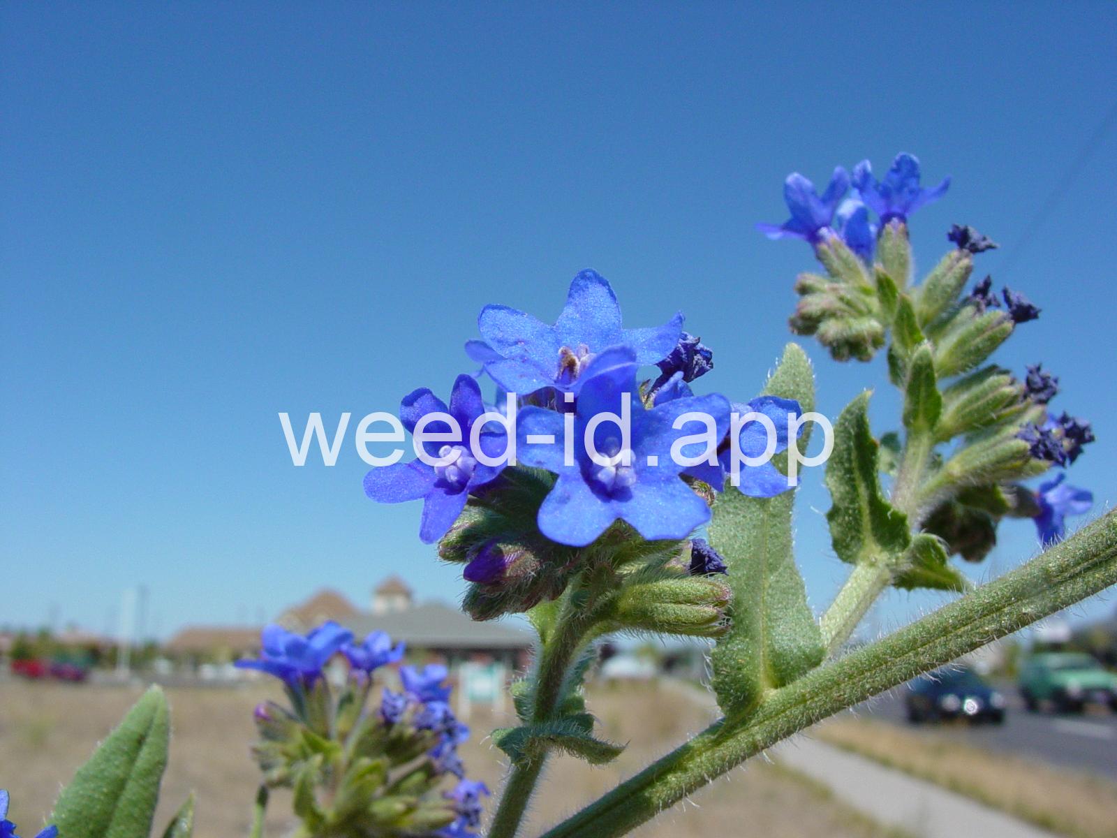 The bright blue flowers with a prominent white center formed by the fornices. The leaves hairy, but not hispid as in many members of the family.