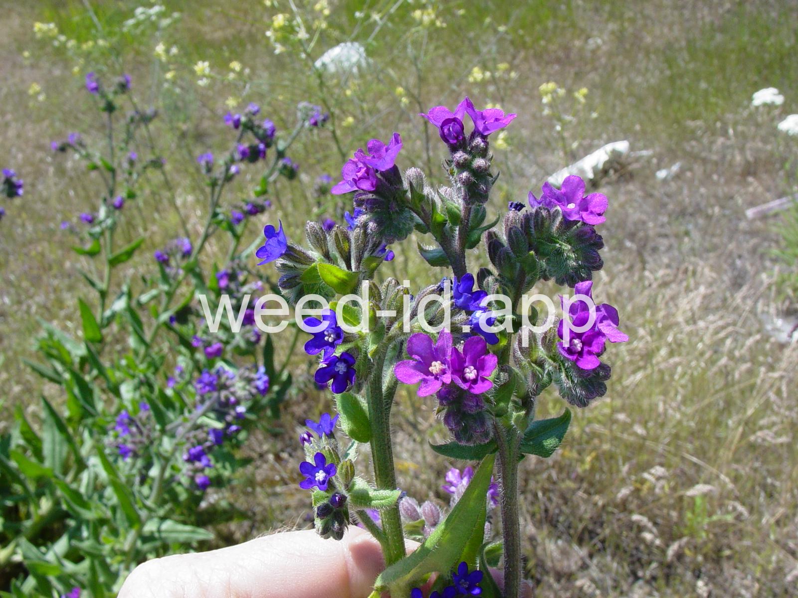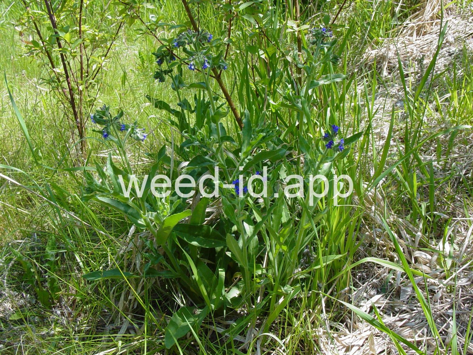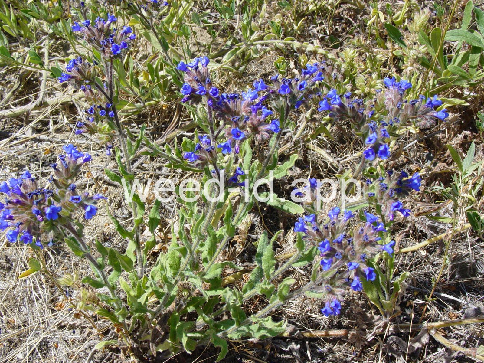 The bright blue flowers with a prominent white center formed by the fornices. The leaves hairy, but not hispid as in many members of the family.