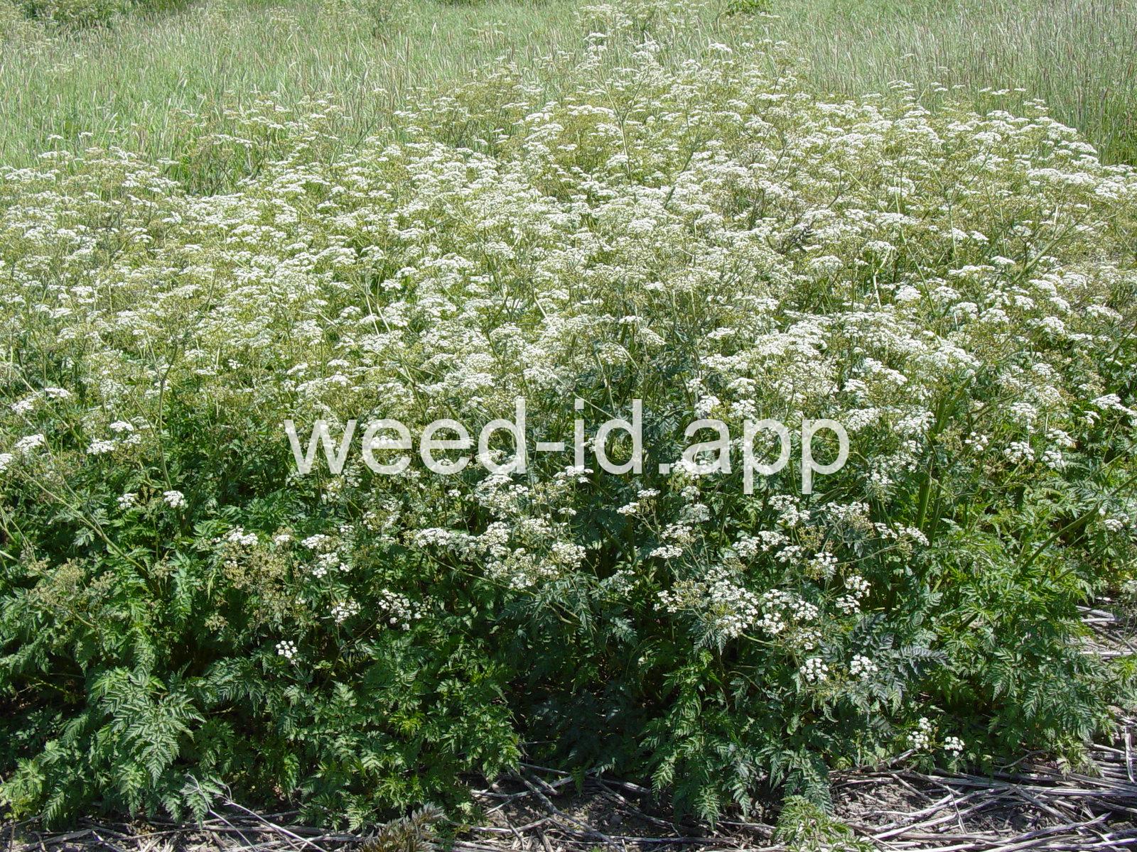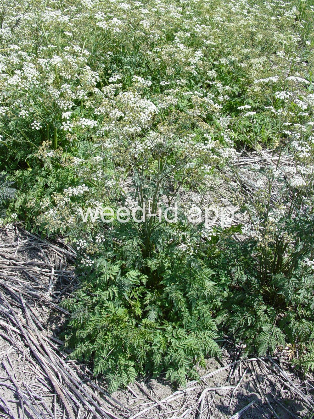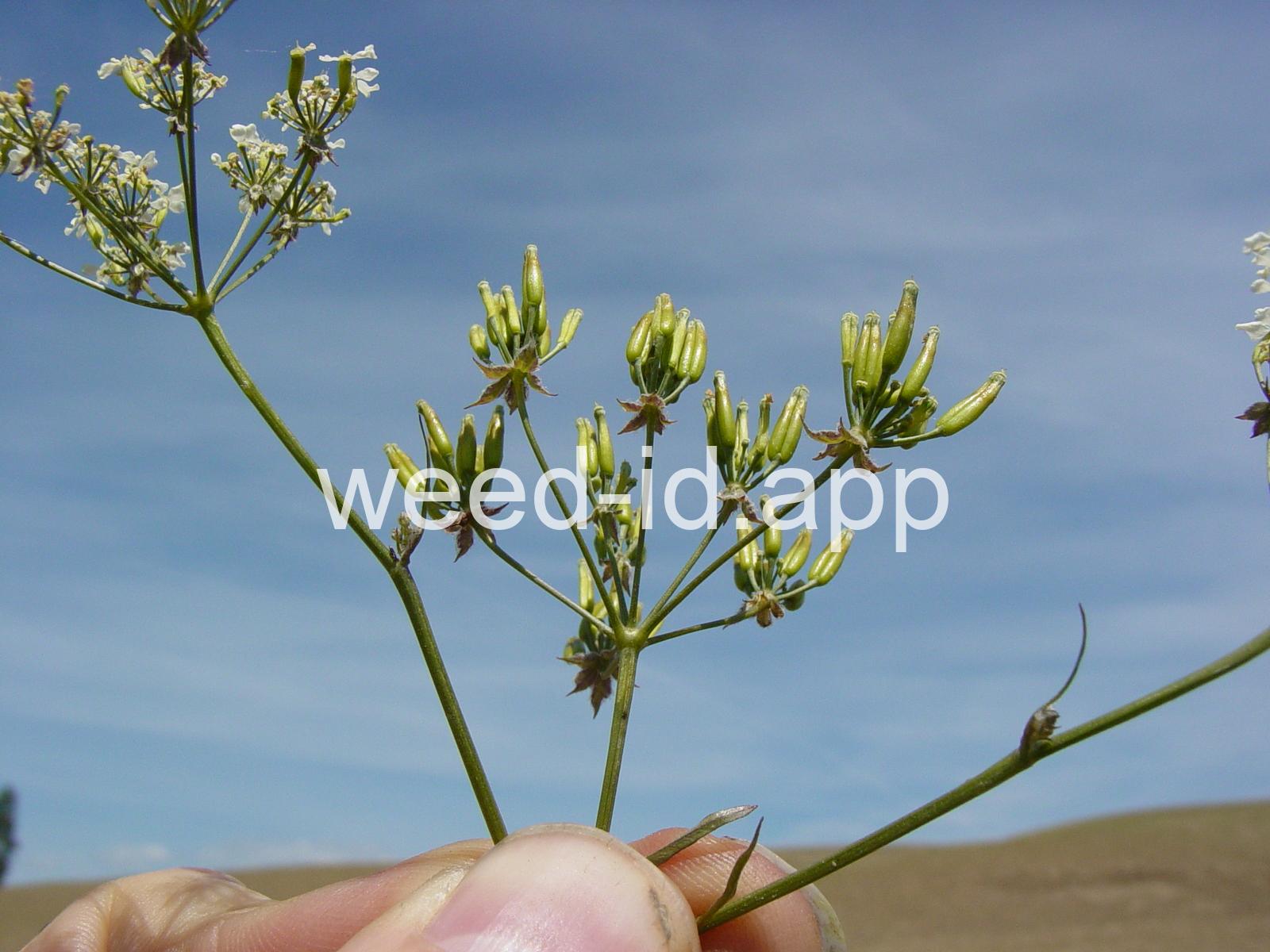 A weedy European species superficially similar to Conium maculatum (poison hemlock) but generally smaller, with a grooved stem lacking the purple blotches and with long, narrow, lustrous fruits. This species has been known as a weed in the northeastern United States for many years but has only recently appeared in the Pacific Northwest.