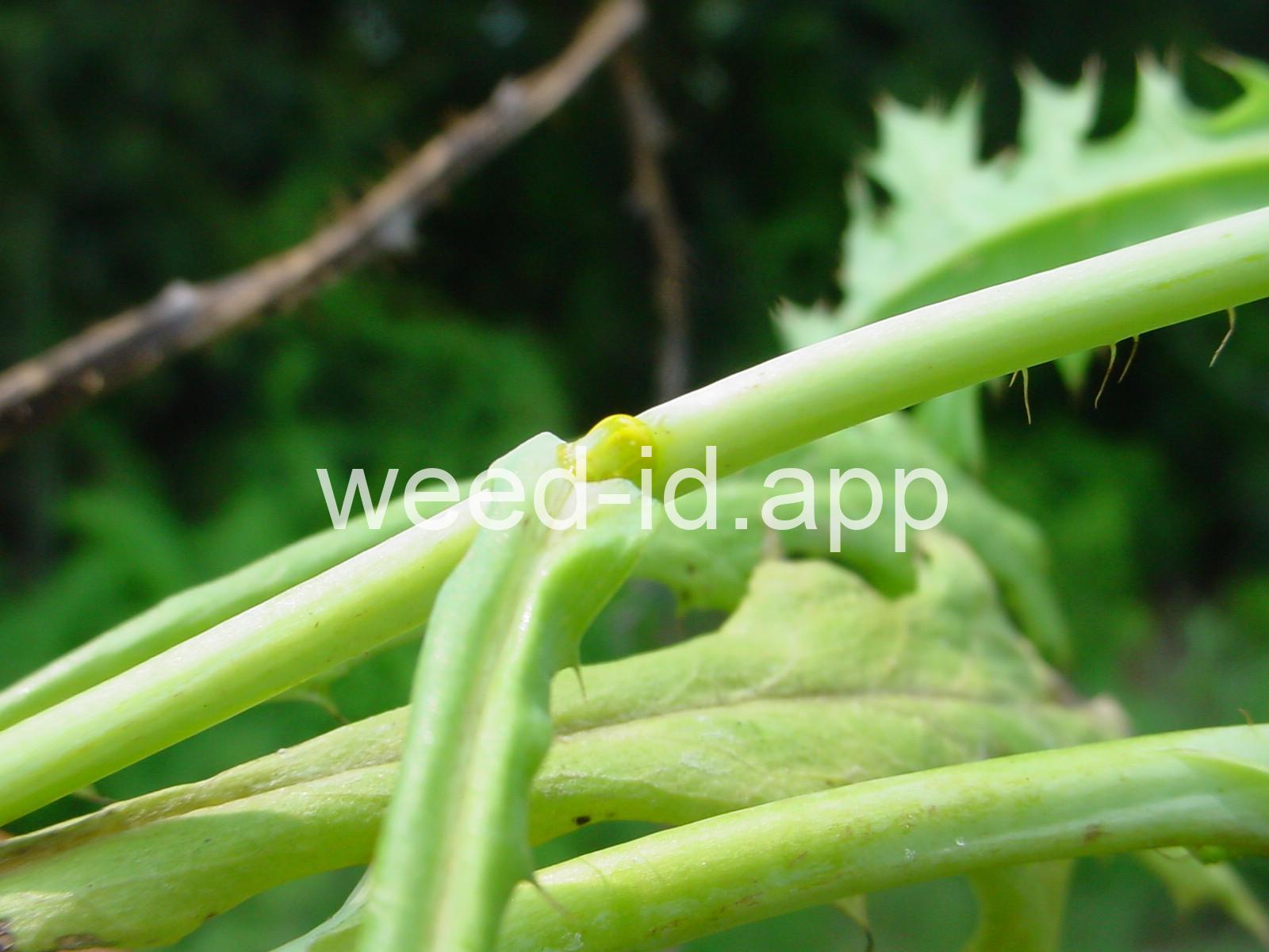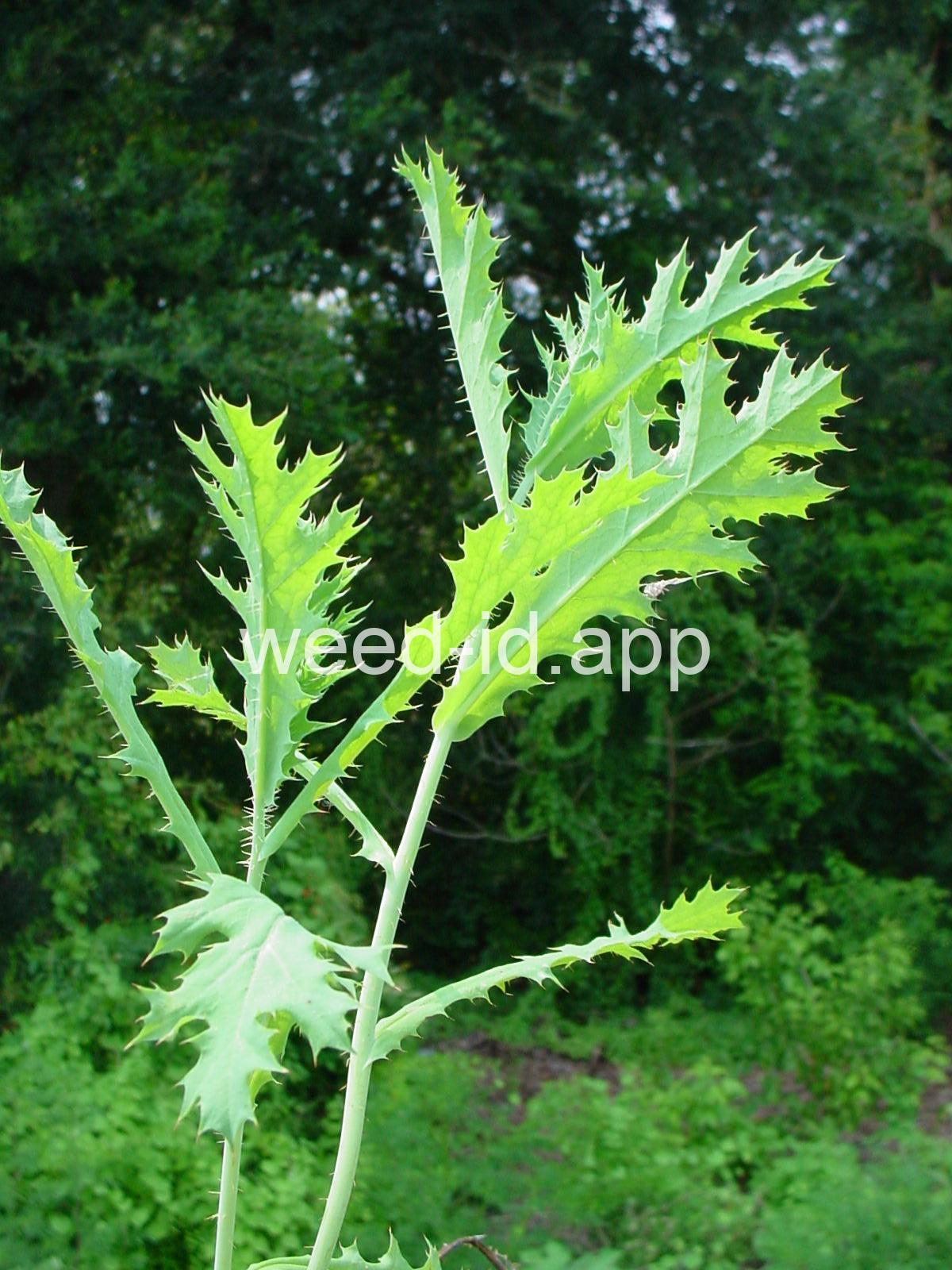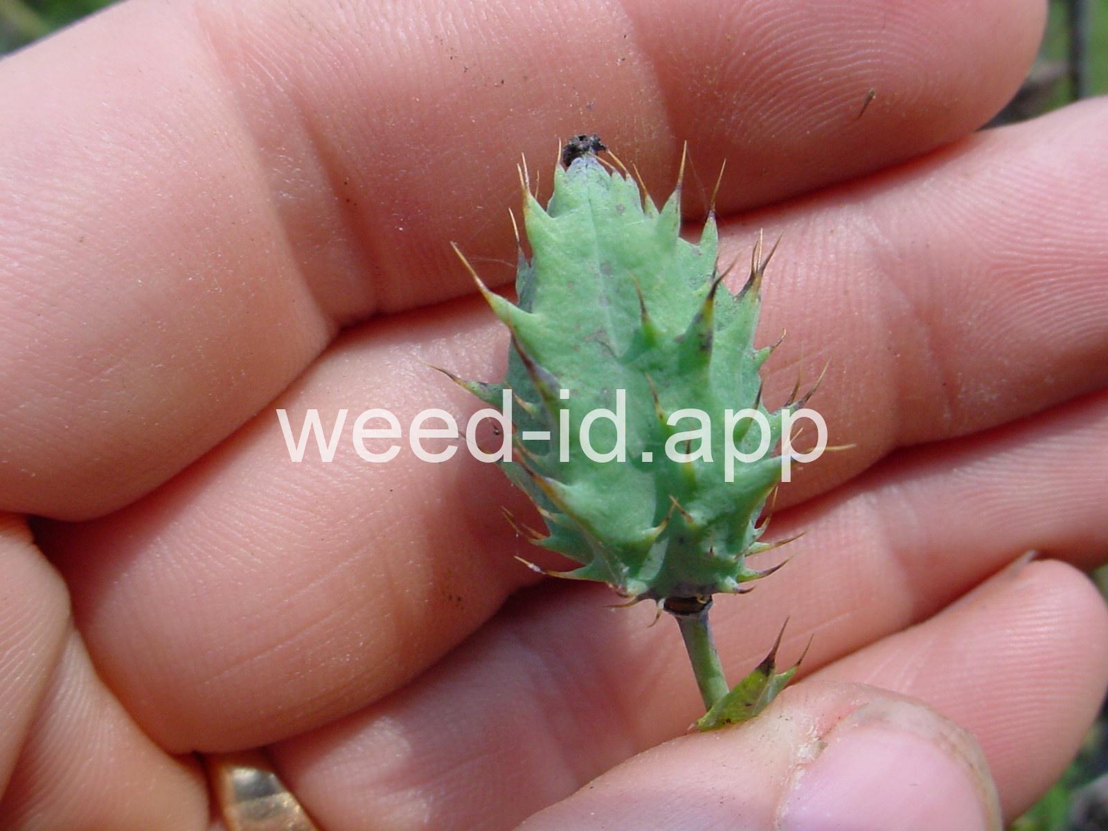 Note the large white flowers, spiny capsules, and glaucous leaves.