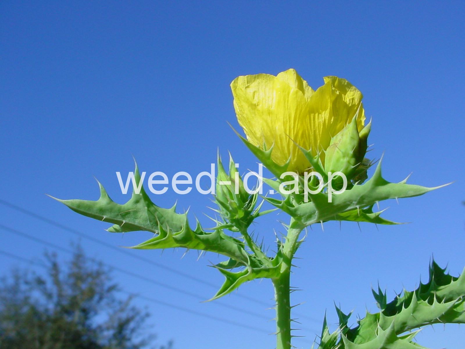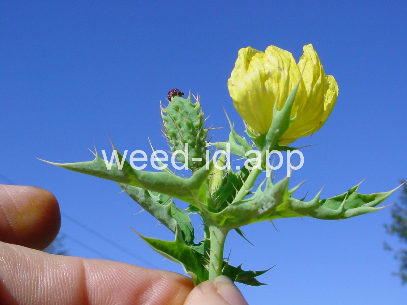 The leaves clasp the stem at the base. They are waxy and hairless but spiny margined. The flowers are pale to bright yellow and the plant exudes a bright yellow sap.