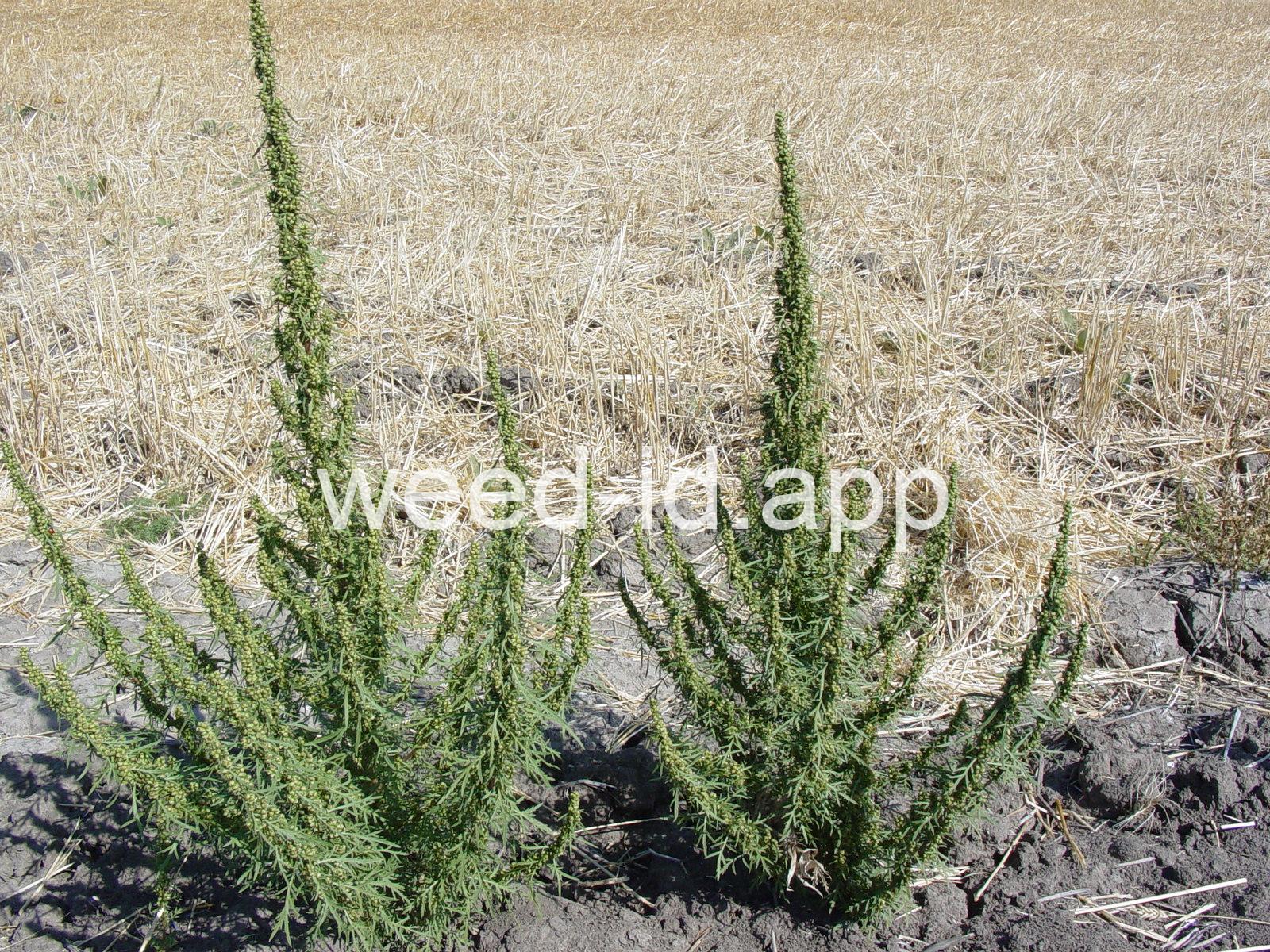 Herbs with erect, dense panicles and often reddish stems. The plants are very similar to Artemisia annua, but in A. biennis the flowers are in dense spike-like clusters, while A. annua has a much more openly branched inflorescence.