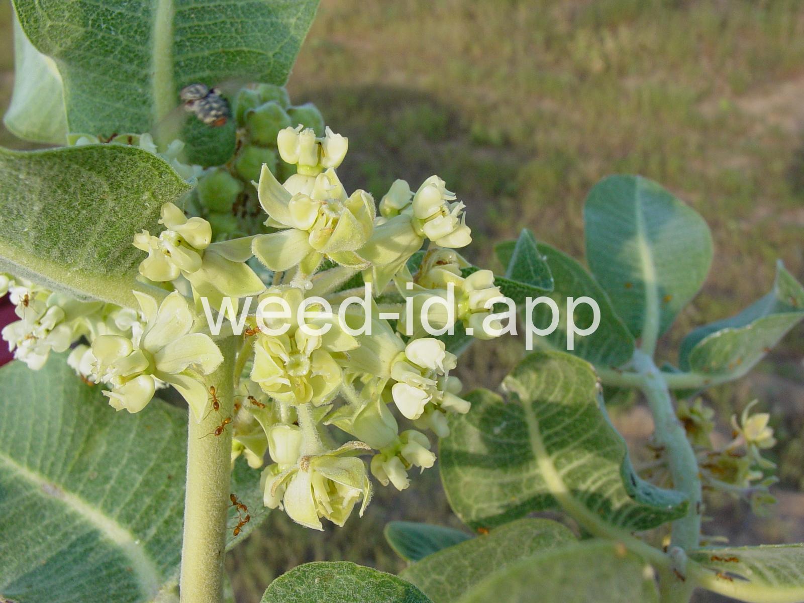 The specific epithet `latifolia` means `broad leaved` and this is the broadest leaved of the North American milkweed species. The leaves are seldom more than 1.5 times as long as broad. The flowers are yellow to green and occur in simple umbels from the upper leaf axils. This species is quite toxic to livestock and occurs in patches in the dry soils of the southwest.