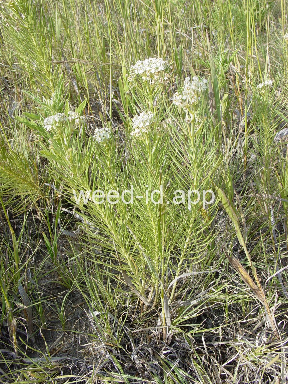 Very similar to whorled milkweed but much shorter, seldom over sixteen inches tall and the leaves alternate in a tight spiral (rather than whorled). This species and many other members of the genus are toxic to livestock.