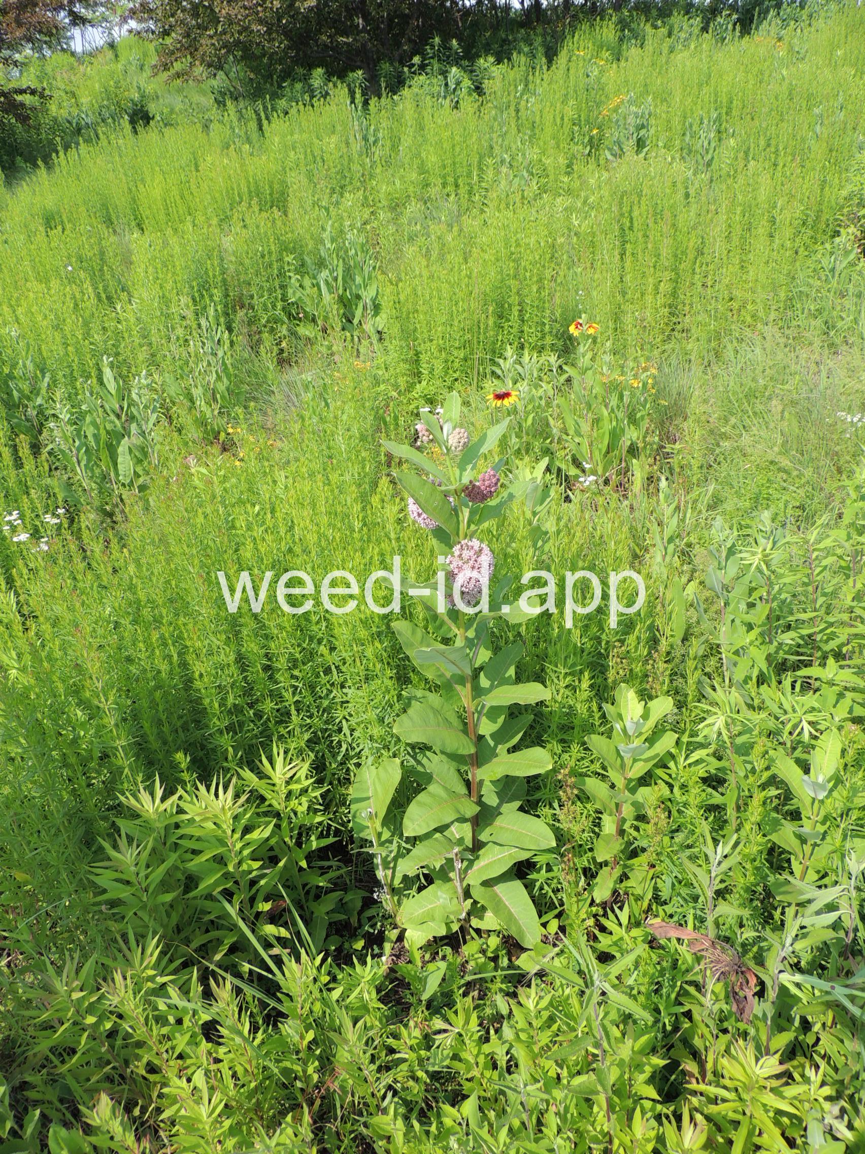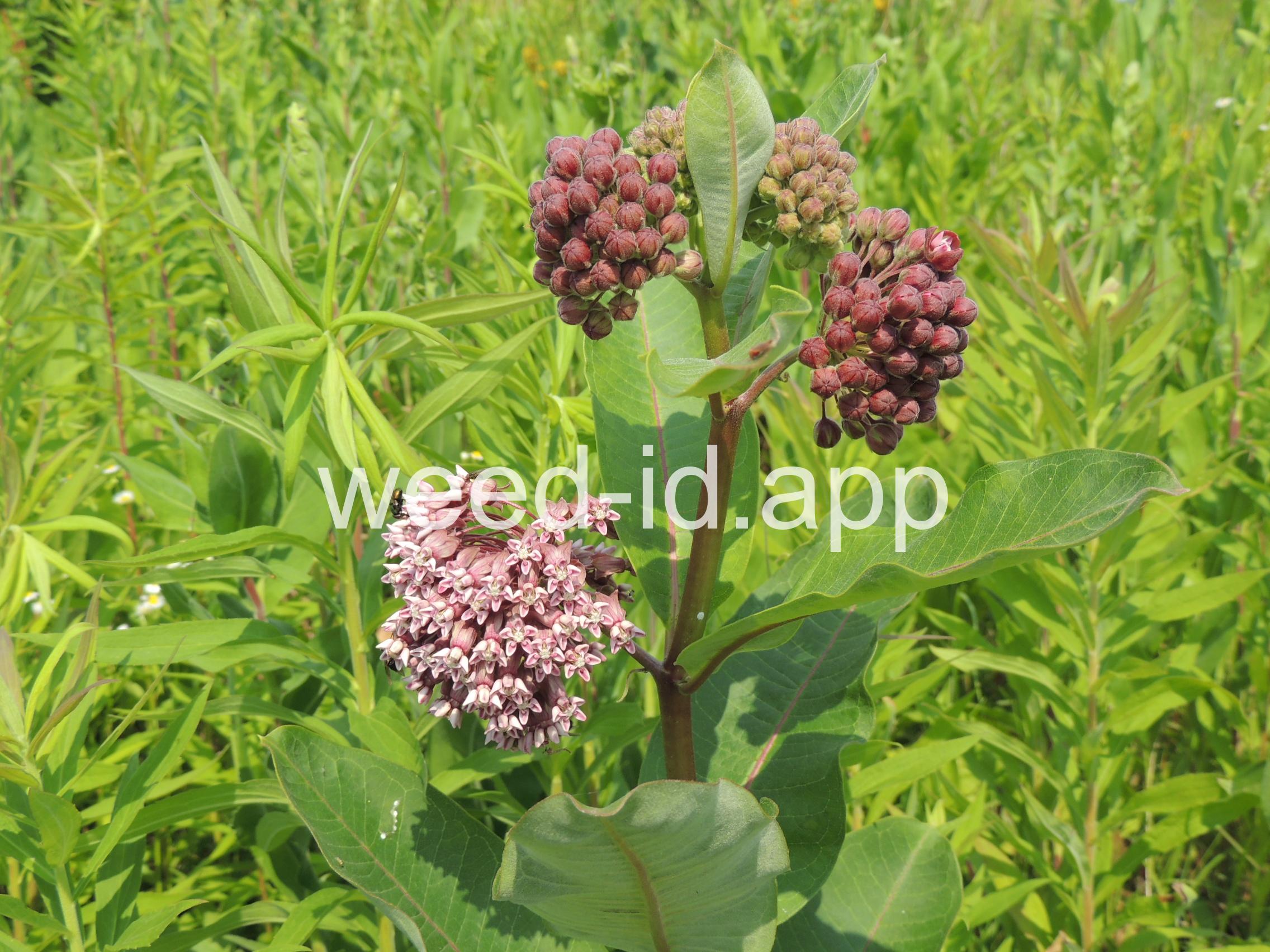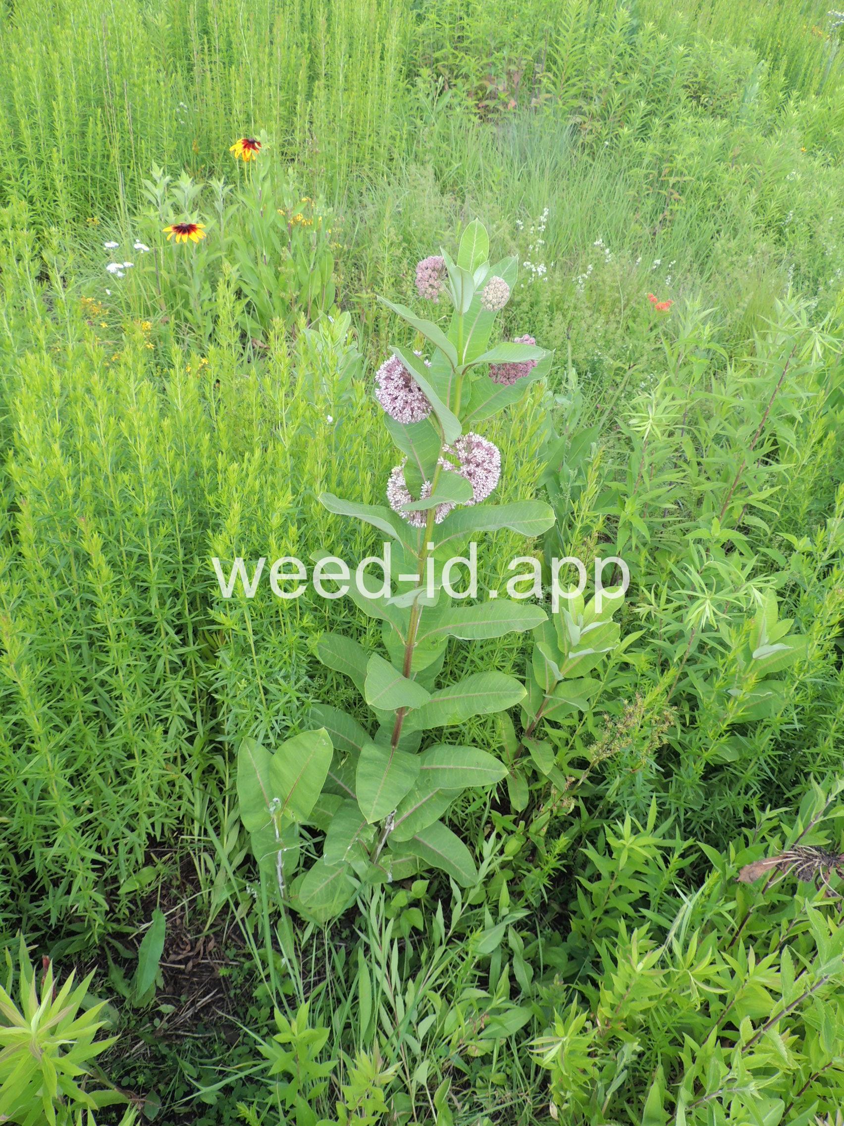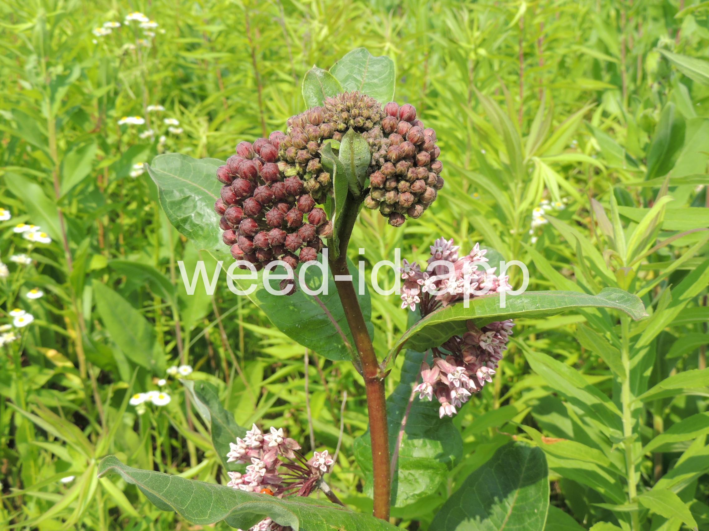 A perennial from deep rhizomes. Leaves opposite, flowers pink to purple. Plants may be as much as 6 feet tall. This species may hybridize with showy milkweed.