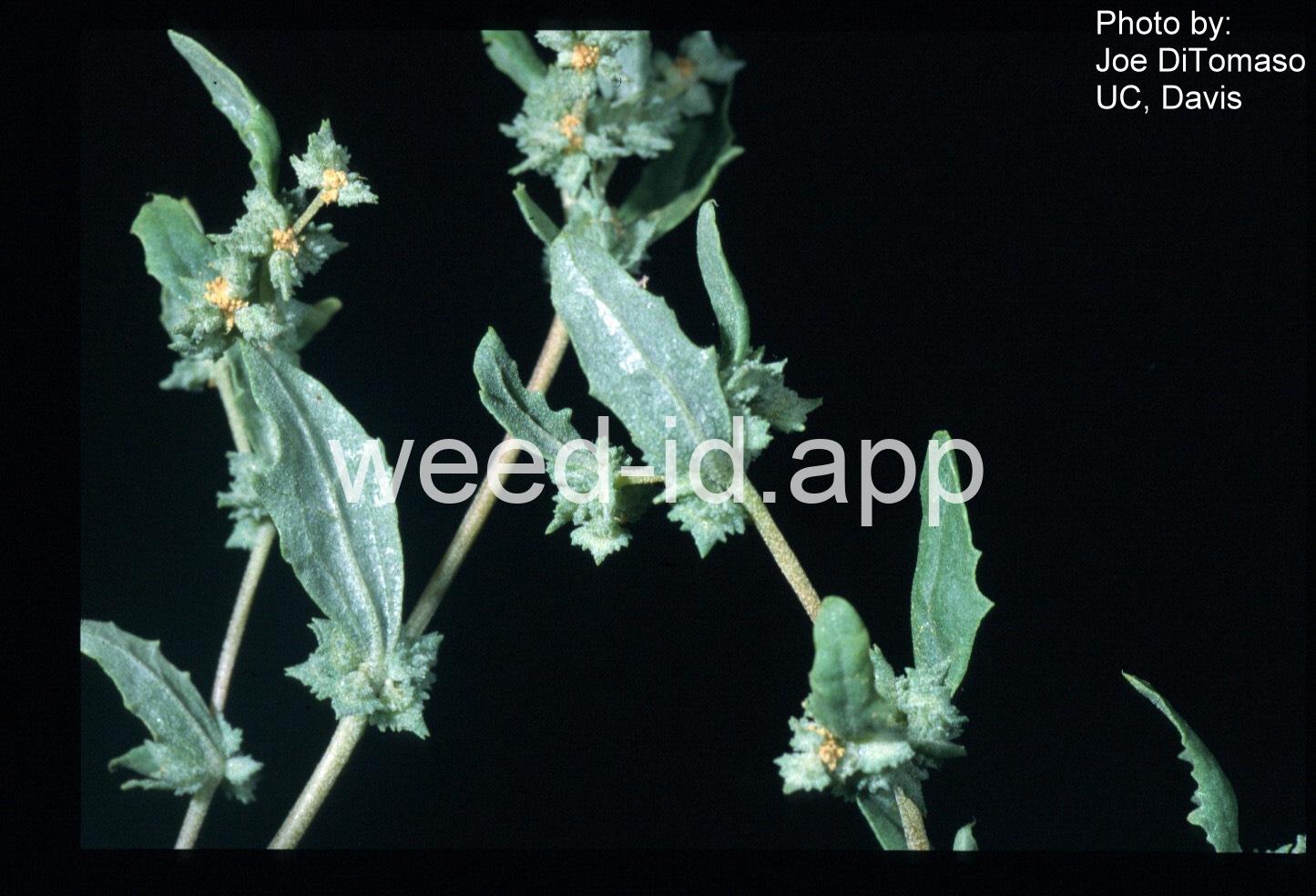 The mealy substance on the leaves of the mature plants and seedlings often lead the observer to believe they are seeing the genus Chenopodium. In fact, the mealy substance is just as typical of Atriplex. At maturity Atriplex can be distinguished from Chenopodium by the enlarged, angular bracts surrounding the seed. This species differs from typical Atriplex patula by having spearhead shaped leaves and the fruiting bracts often tuberculate on the back.