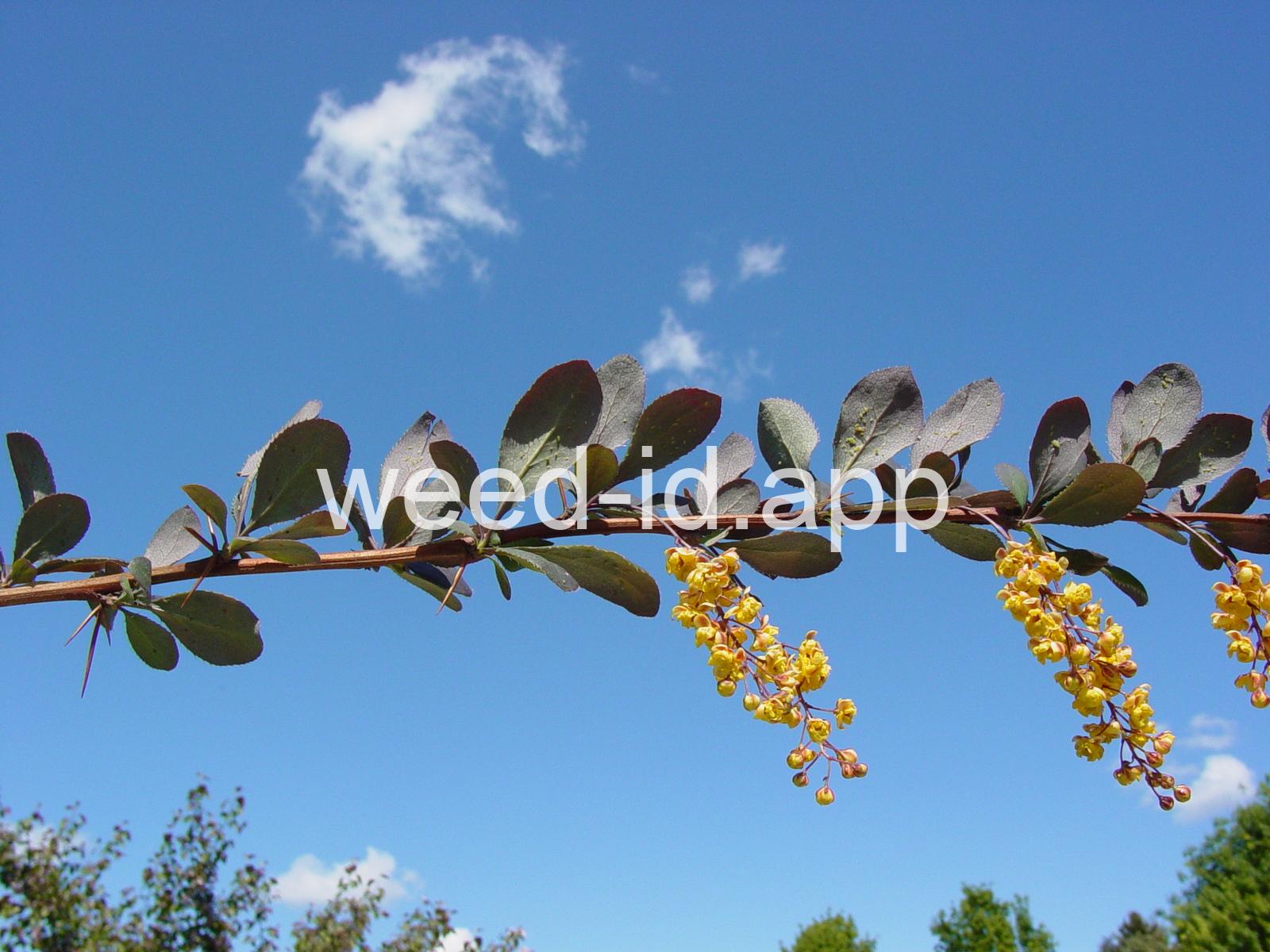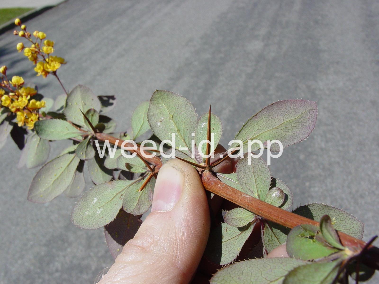 Shrubs usually 1 - 3 meters tall with prickly `holly-like` leaves and branched spines at the nodes. The fruit an egg-shaped, red berry. Flowers in axillary racemes. This species is the alternate host for cereal stem rust and was once the target of a major, but unsuccessful, eradication effort. The leaves may be purplish or green.