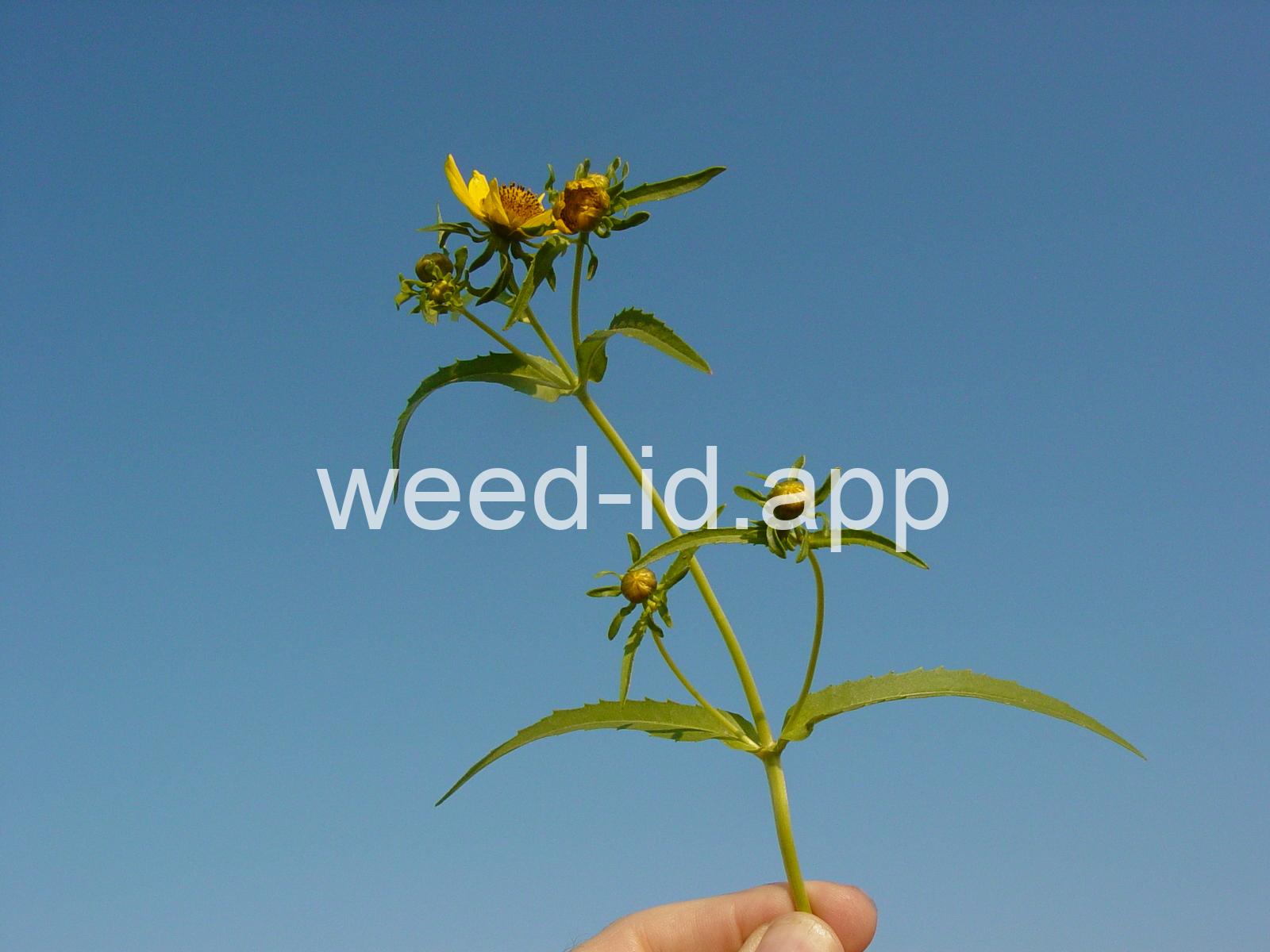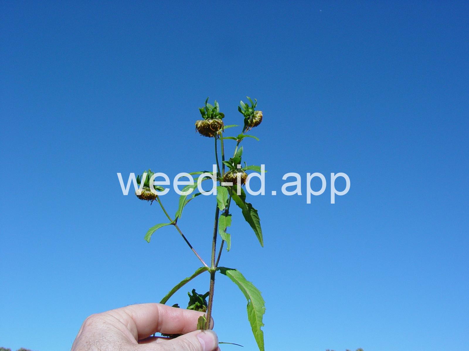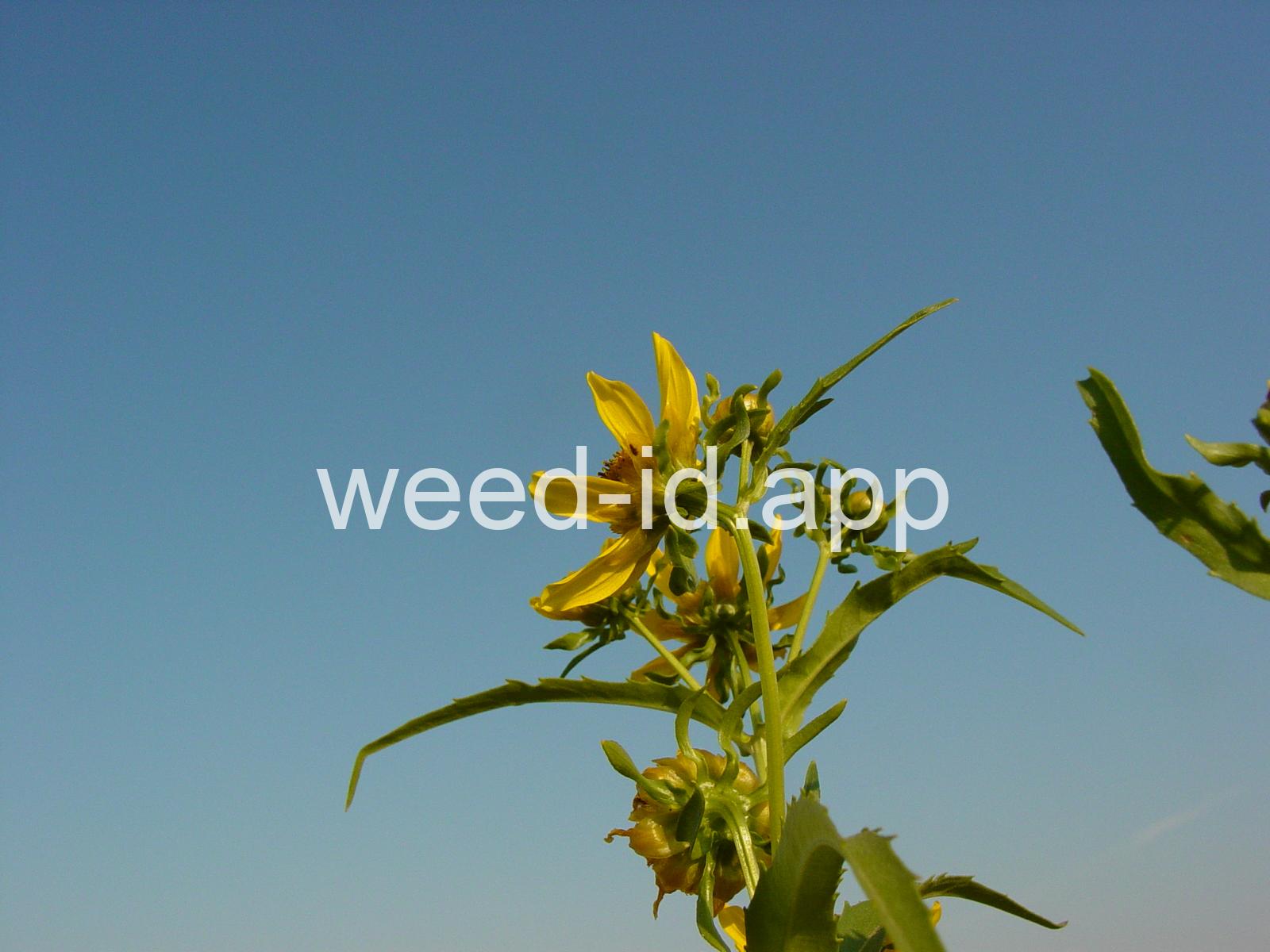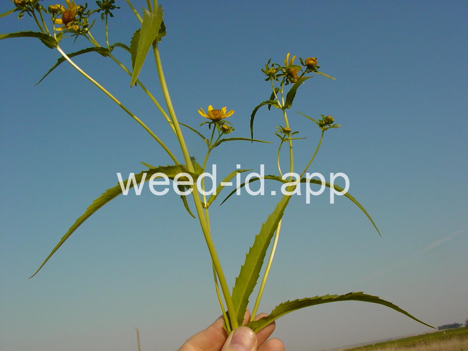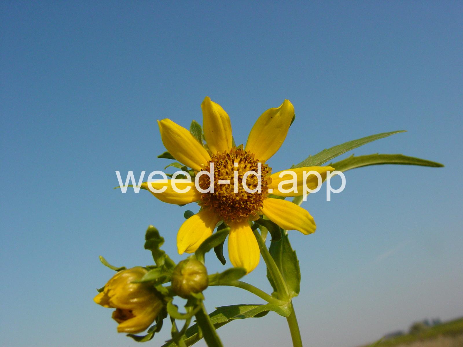 Leaves opposite, simple, and toothed. Flowers yellow with the ray flowers prominent, up to 15 mm long. Plants usually in very damp to wet areas. Seeds forming a bur with 4 terminal spines.