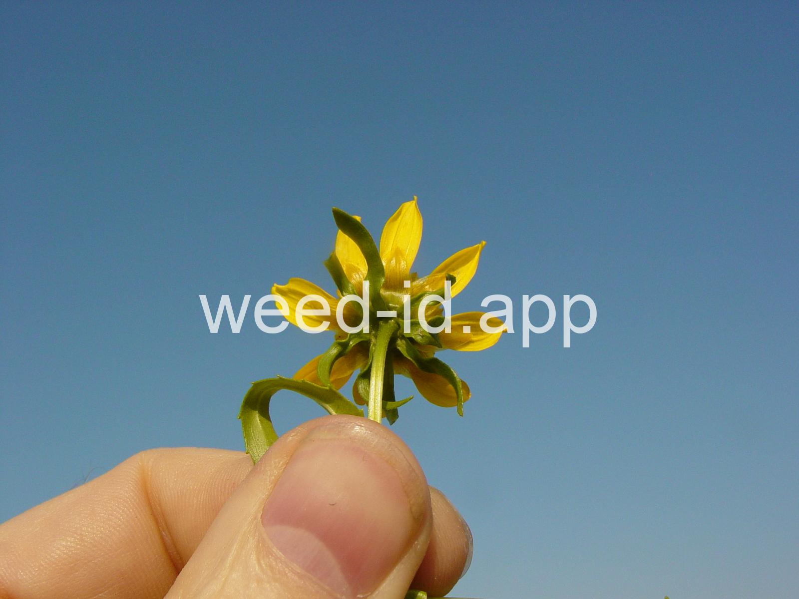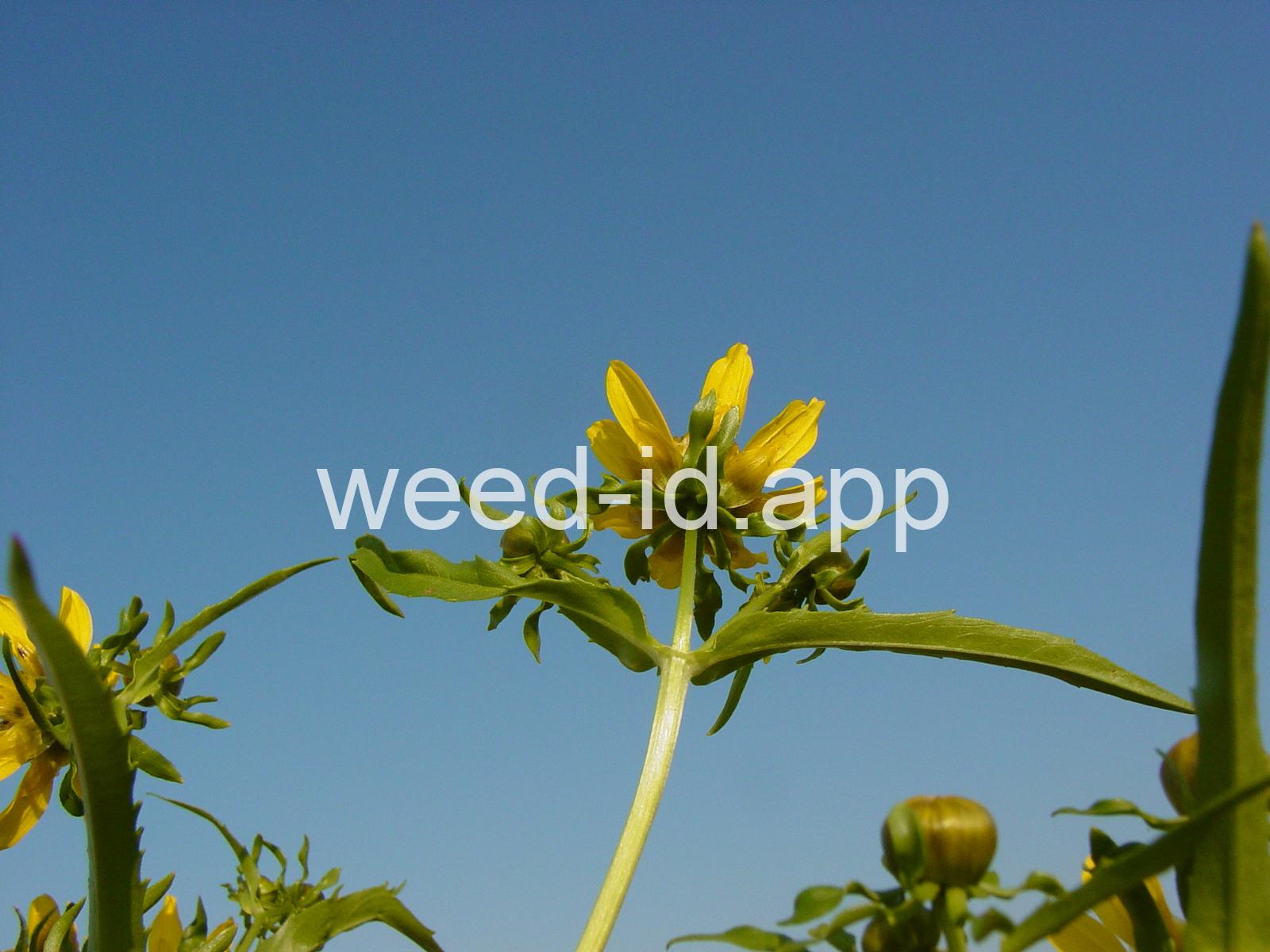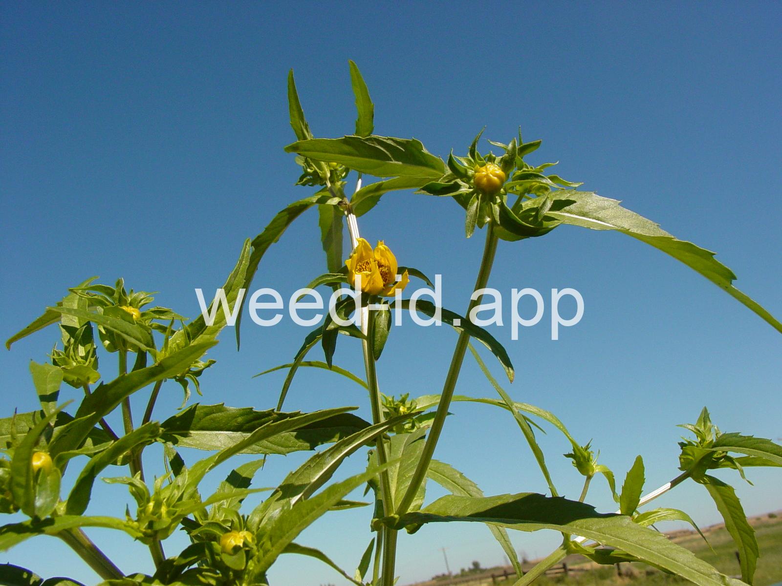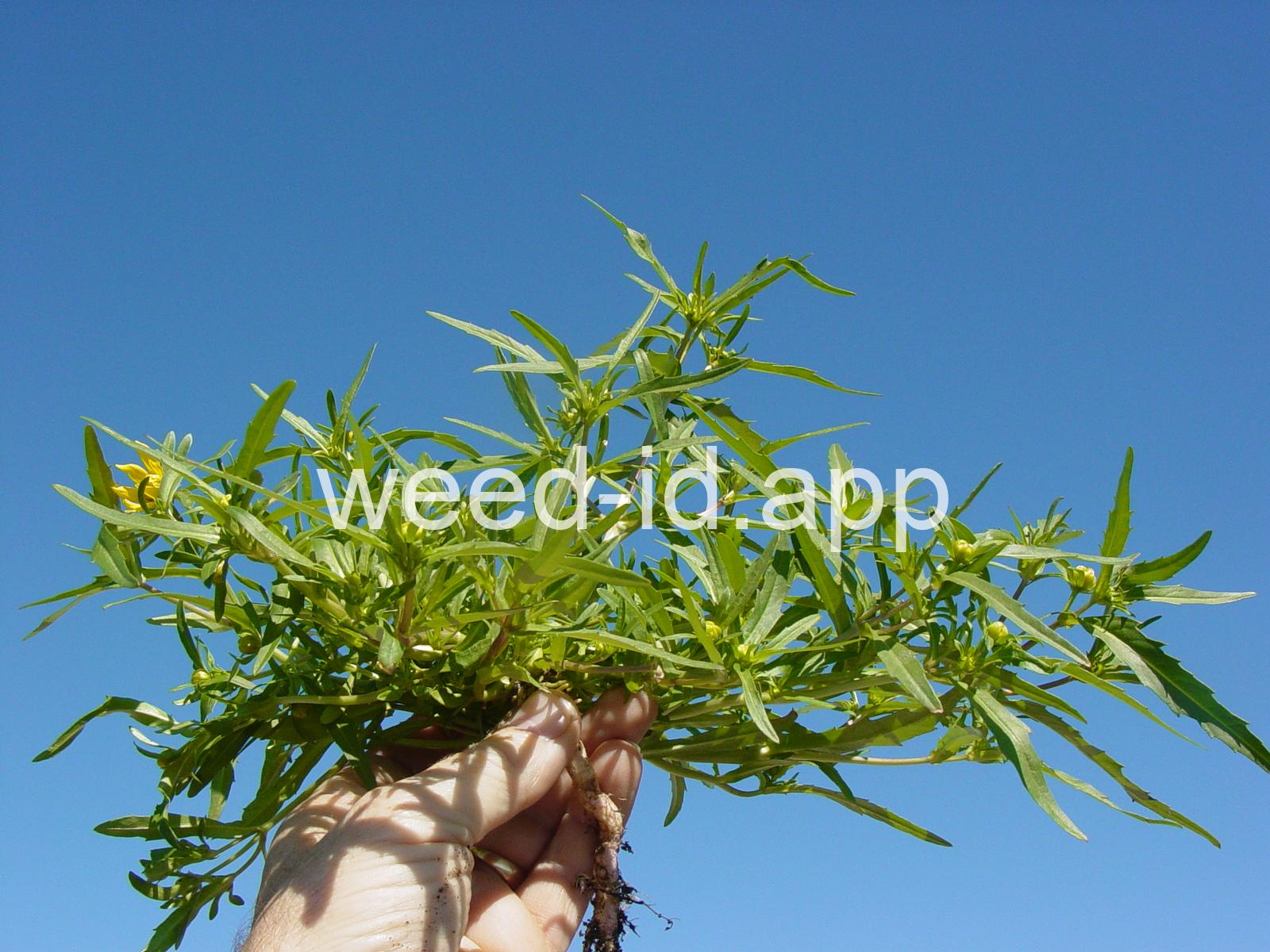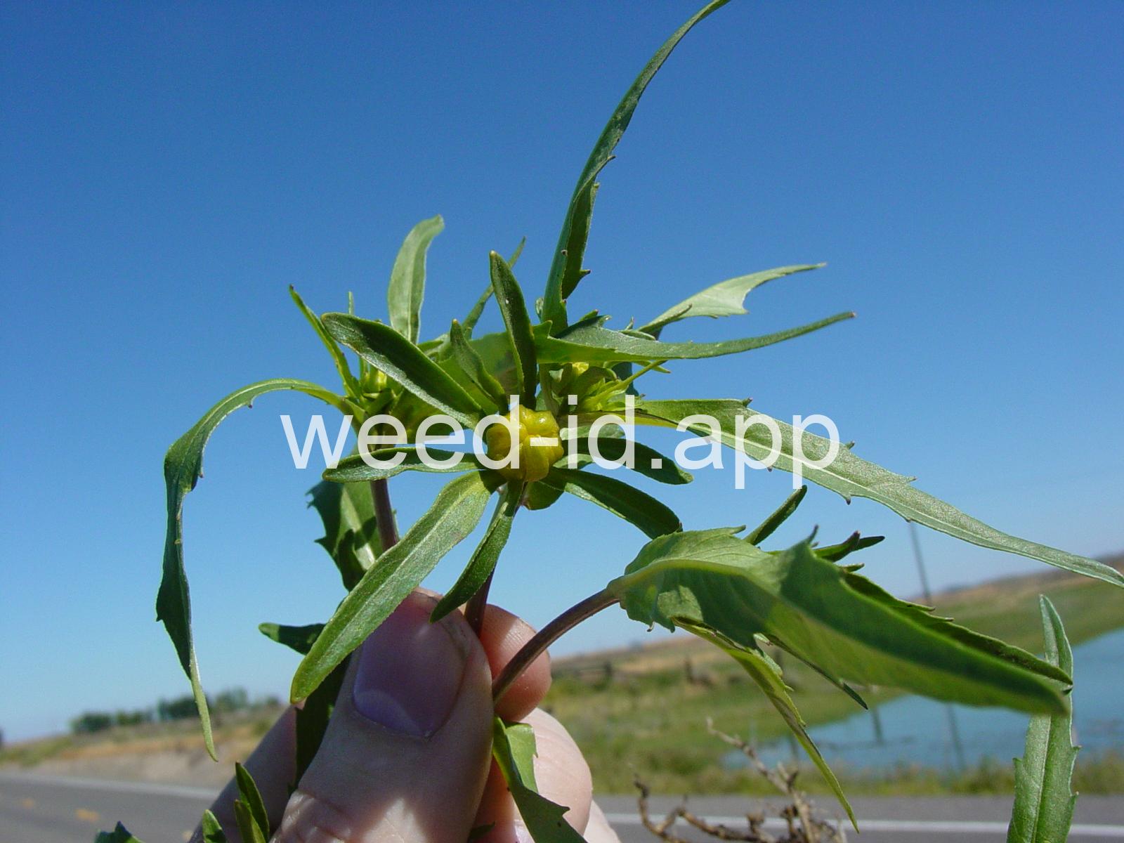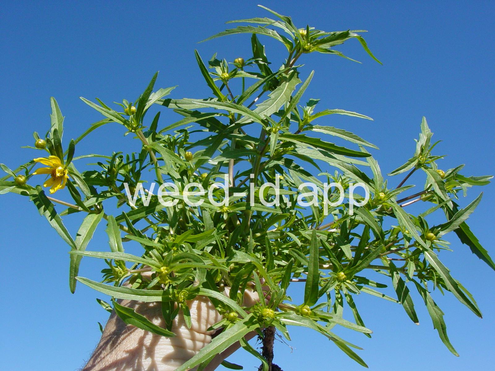 Leaves opposite, simple, and toothed. Flowers yellow with the ray flowers prominent, up to 15 mm long. Plants usually in very damp to wet areas. Seeds forming a bur with 4 terminal spines.