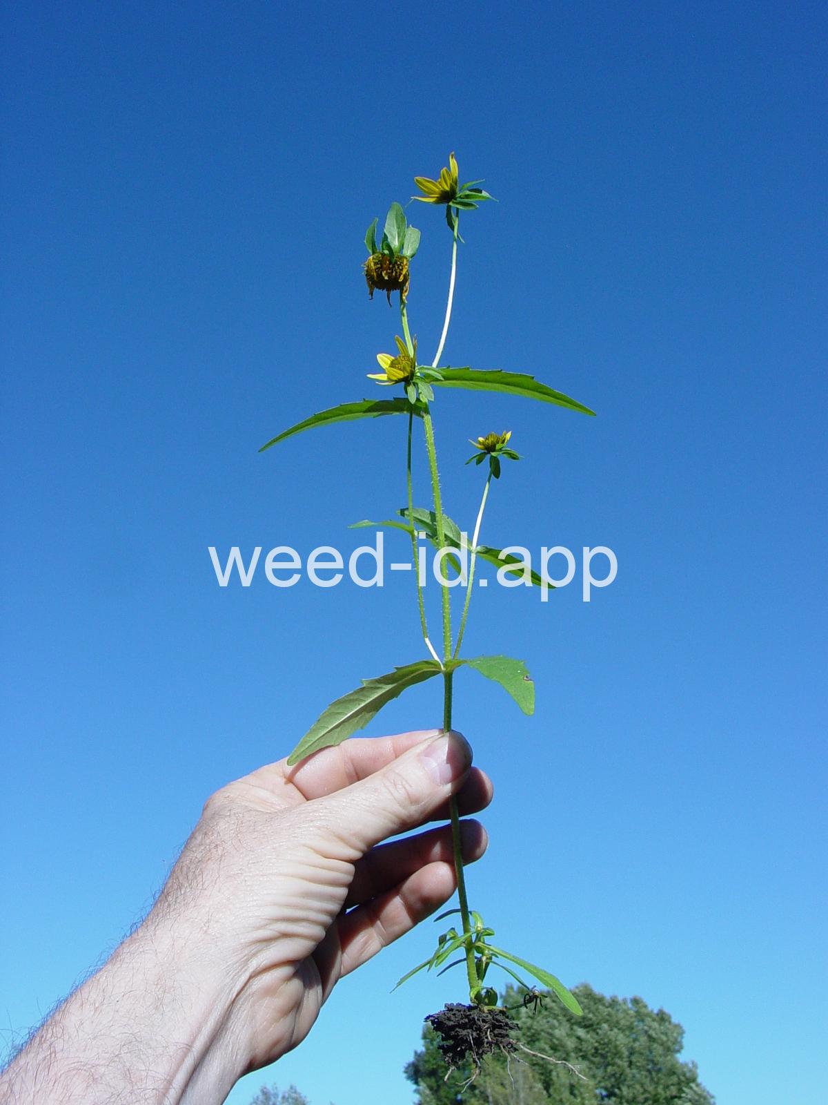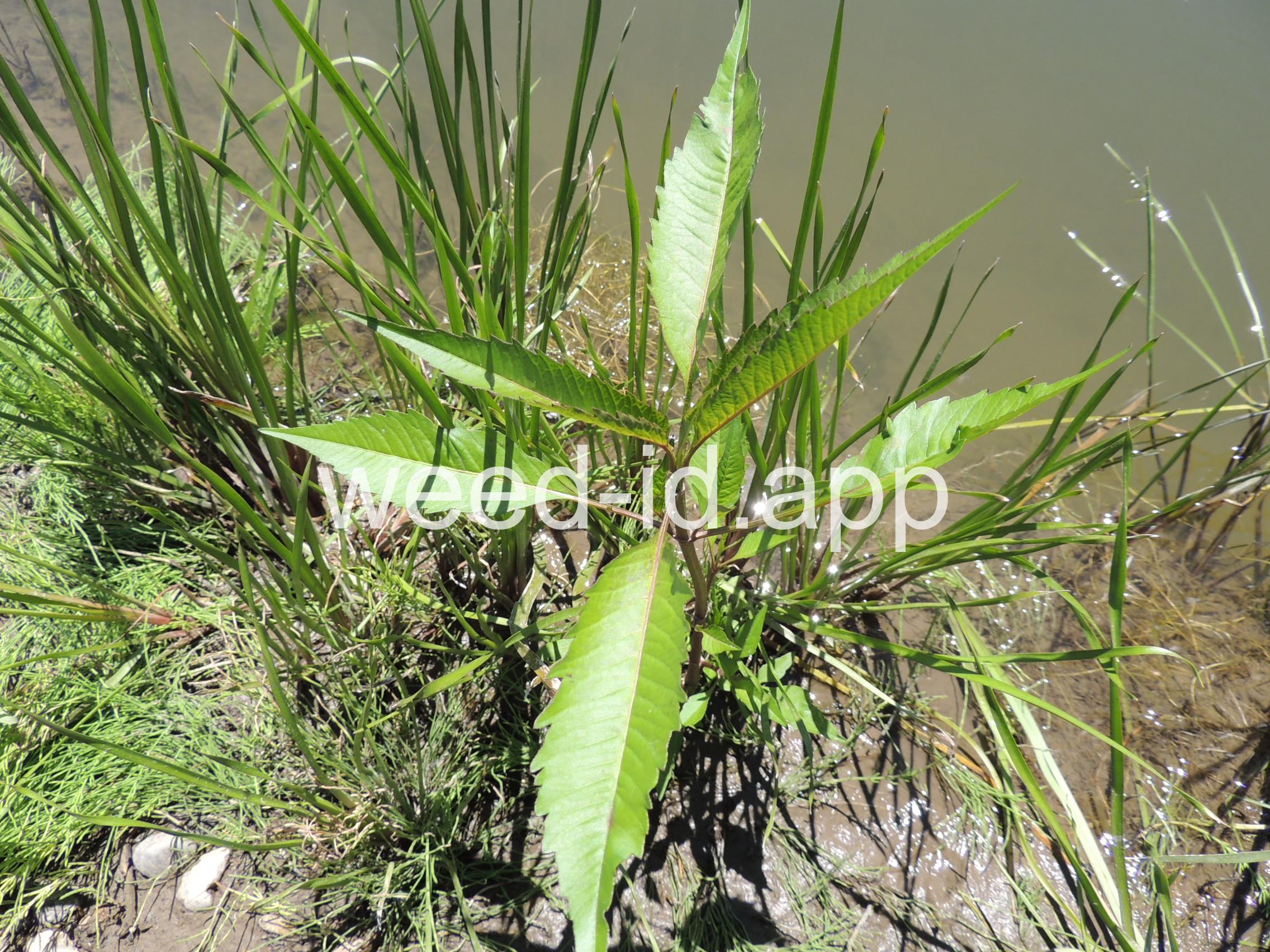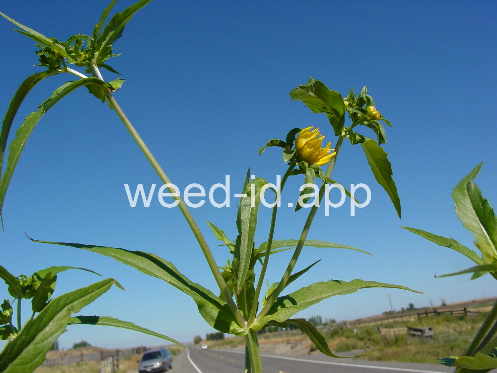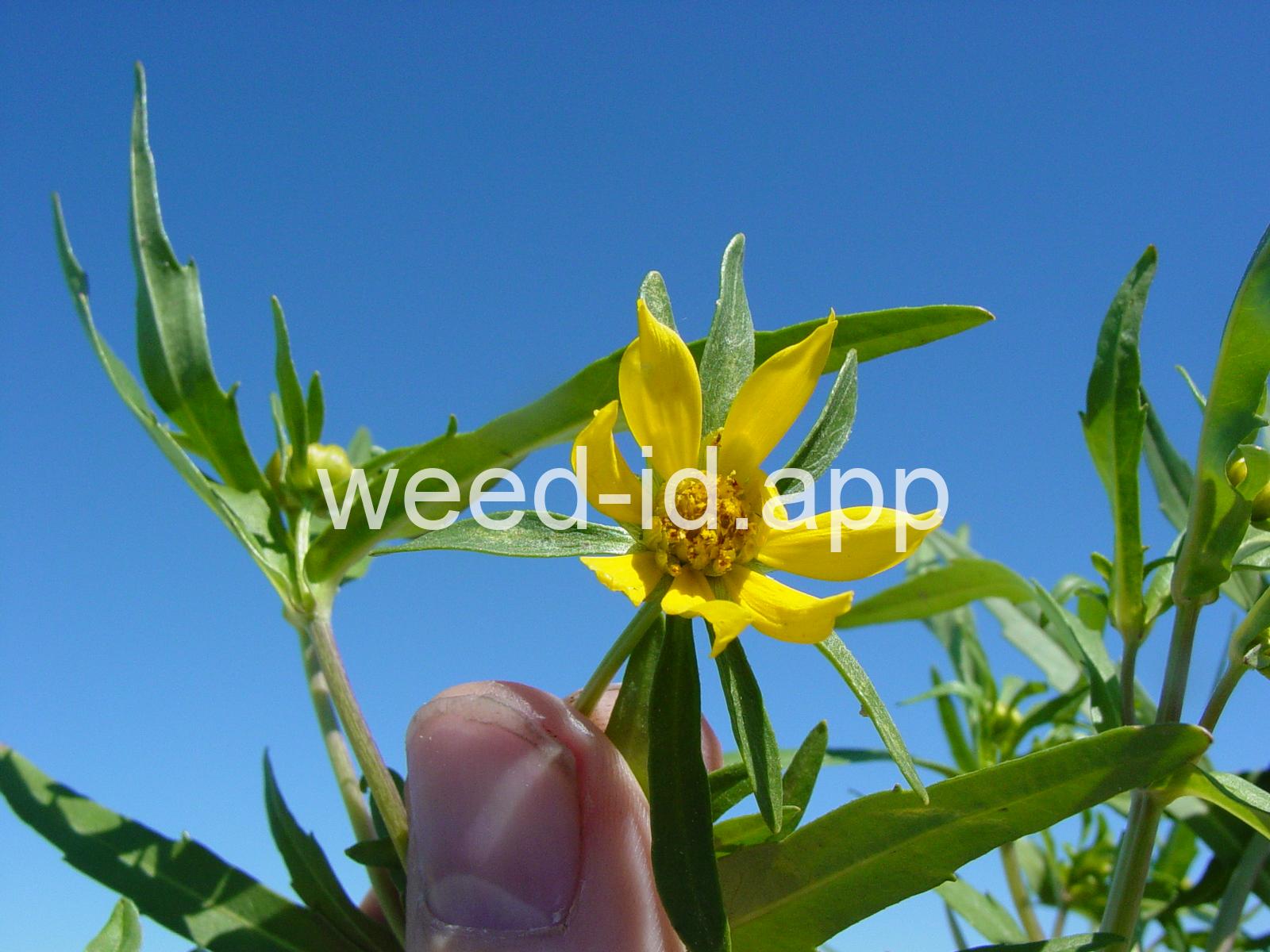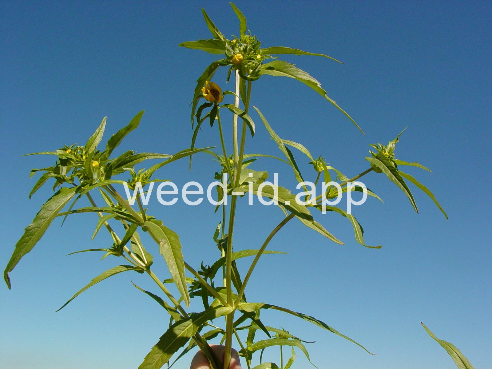 Leaves opposite, simple, and toothed. Flowers yellow with the ray flowers prominent, up to 15 mm long. Plants usually in very damp to wet areas. Seeds forming a bur with 4 terminal spines.