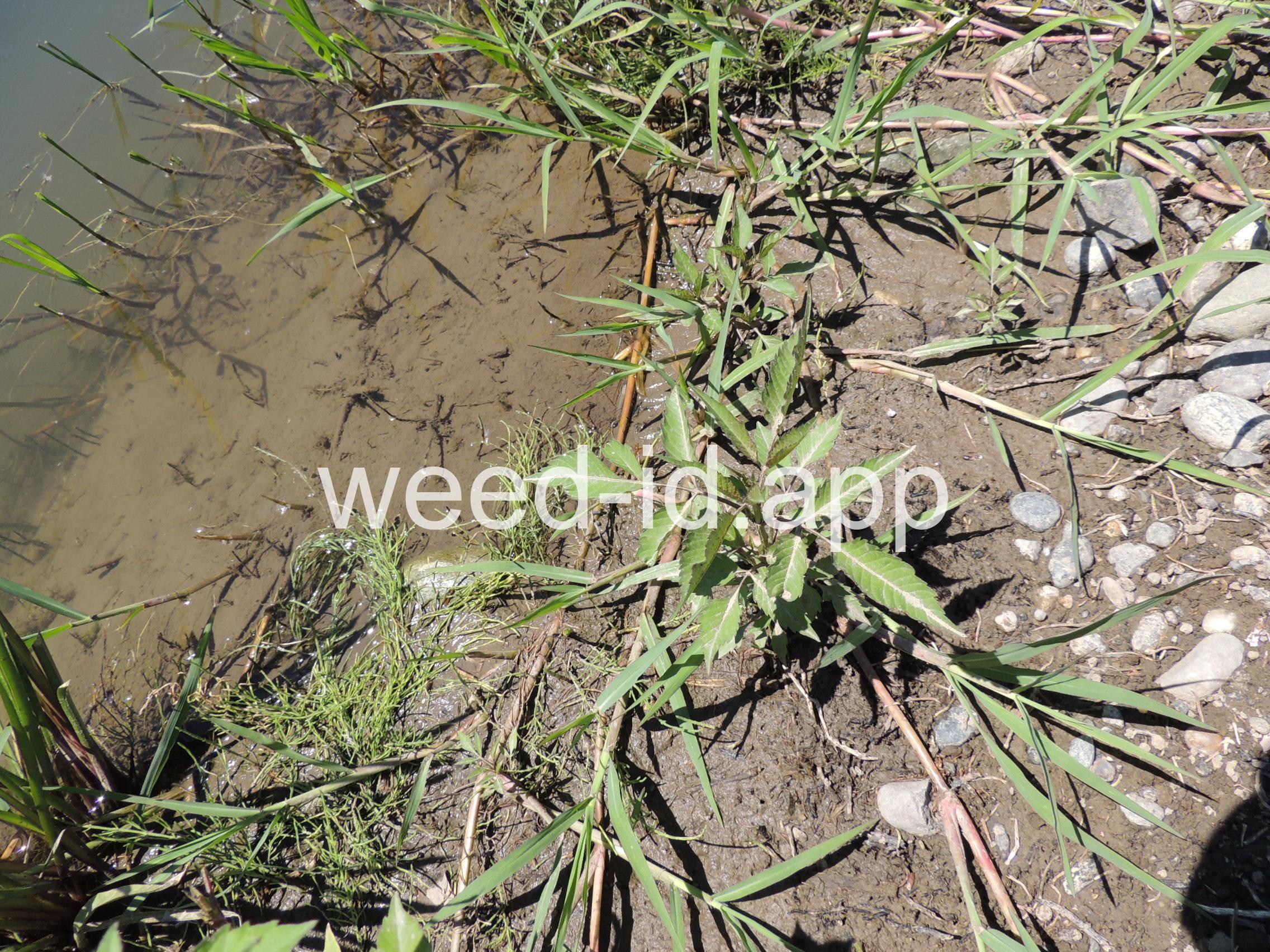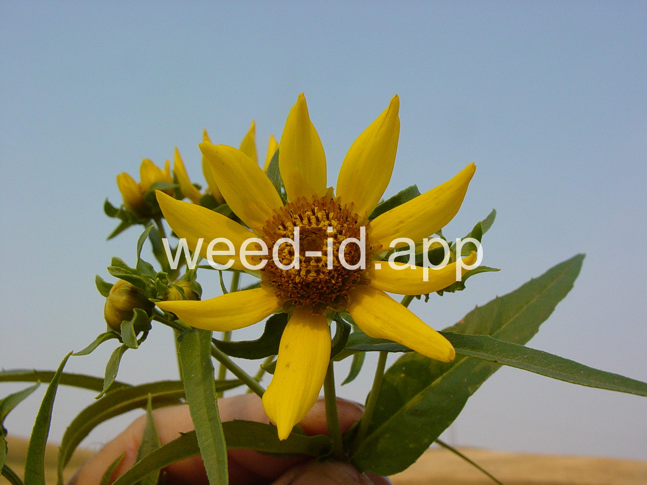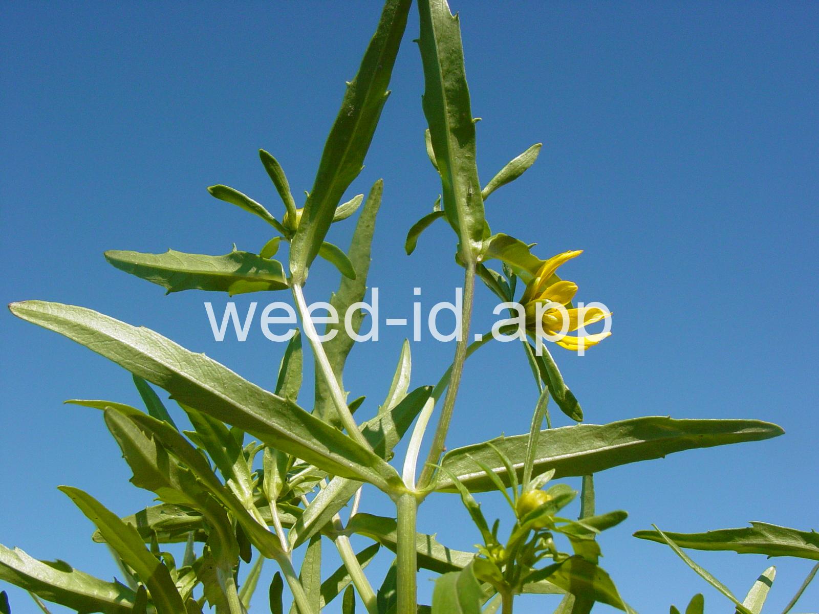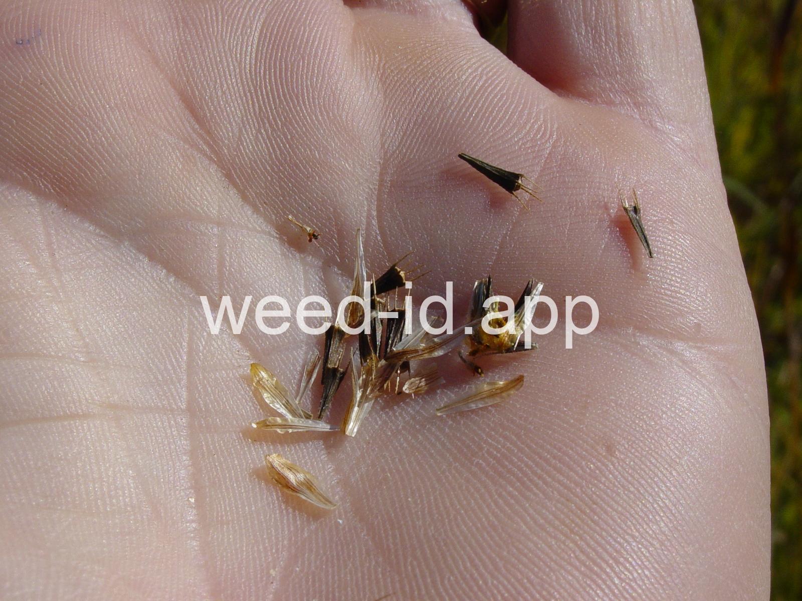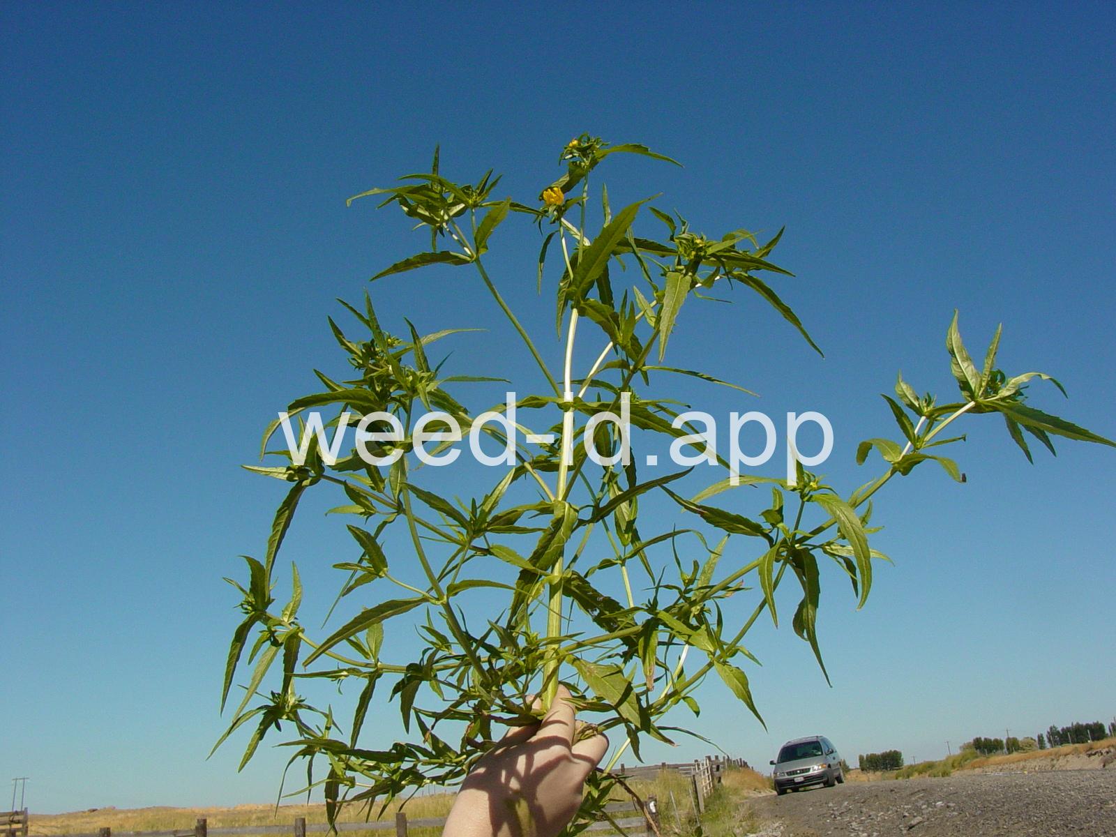 Leaves opposite, simple, and toothed. Flowers yellow with the ray flowers prominent, up to 15 mm long. Plants usually in very damp to wet areas. Seeds forming a bur with 4 terminal spines.