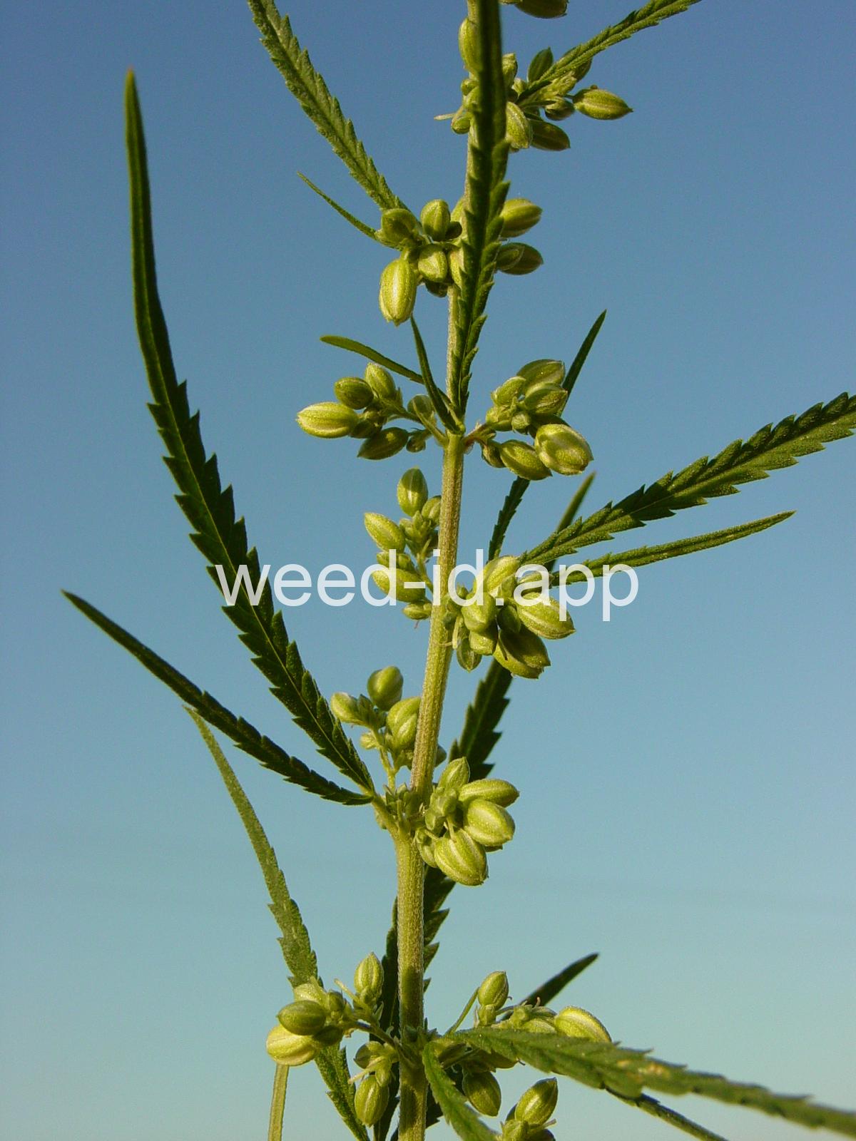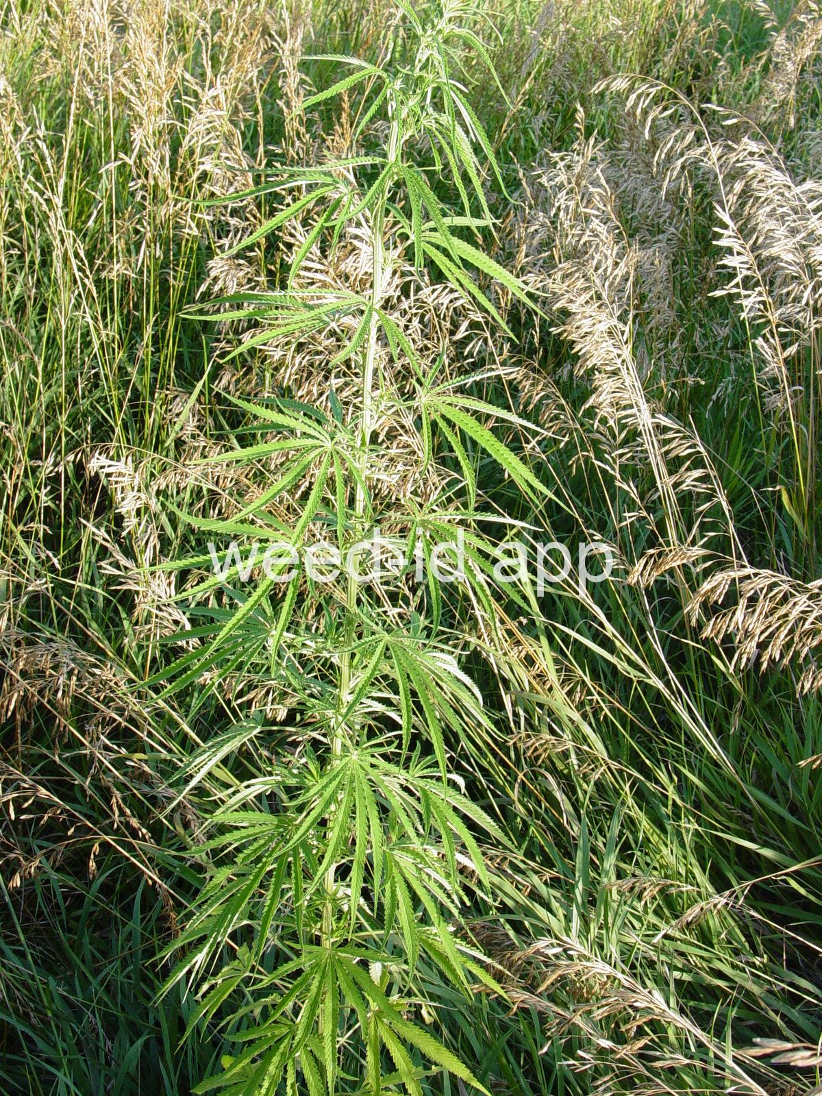 The palmately compound leaves with toothed leaflets are very distinctive. In the Midwest this species is weedy and often grows without assistance, but in the western states it is seldom found as an unintentional occurrence. Originally introduced as a fiber crop (hemp), but now strictly regulated due to its status as a controlled substance.