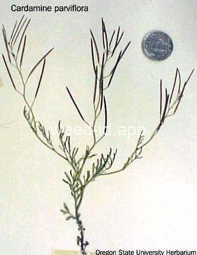 A small, white flowered mustard, blooming very early in the spring, the leaves very similar in taste and appearance to those of watercress. Common in moist shady sites such as ditches and beneath shrubs. Quite similar to Cardamine oligosperma.