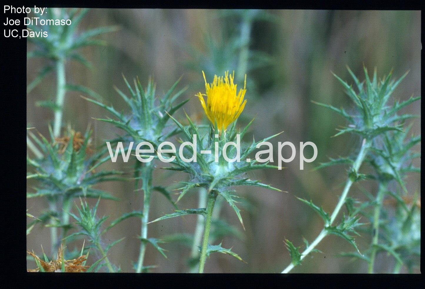 This is one of the few thistles with yellow flowers. It forms dense stands in dry rangeland, and the litter is very slow to decay. This species is sometimes confused with the cultivated plant `safflower` (Carthamus tinctoria) which has more reddish flowers and broader bracts. The specific epithet `lanatus` means `wooly` and the dense wooly hairs around the bases of the bracts is clearly visible.