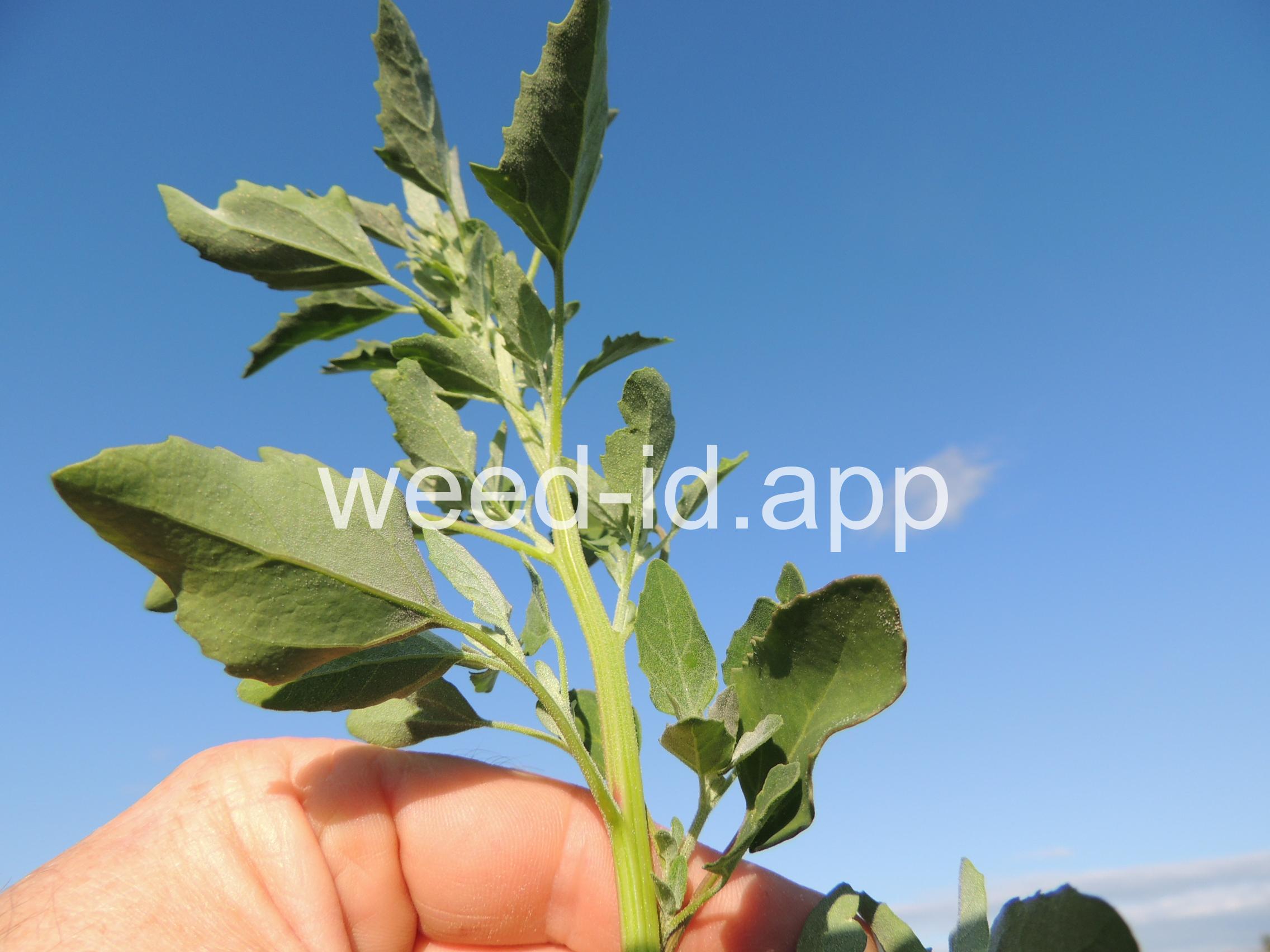 A highly variable annual. The new growth, even seedlings, and lower leaf surfaces are covered with a white, mealy substance which is easily wiped off. At maturity the stems are often red striped, as is common in this family. The leaves of this species have been used as raw or cooked greens, but livestock occasionally suffer nitrate poisoning from consuming it in large quantities.