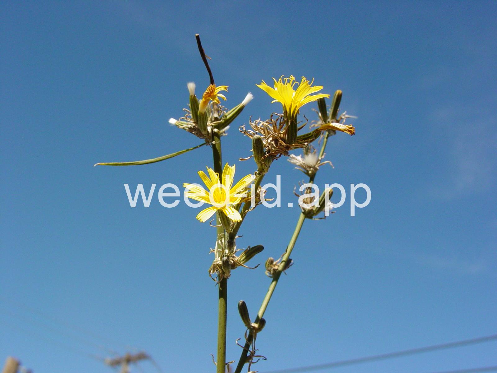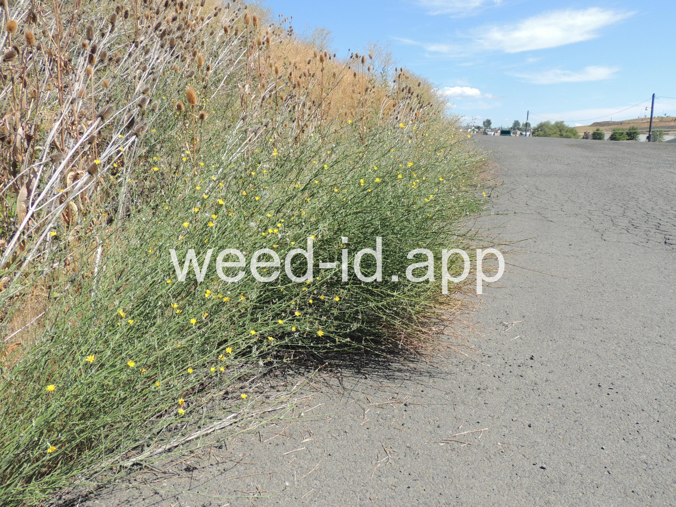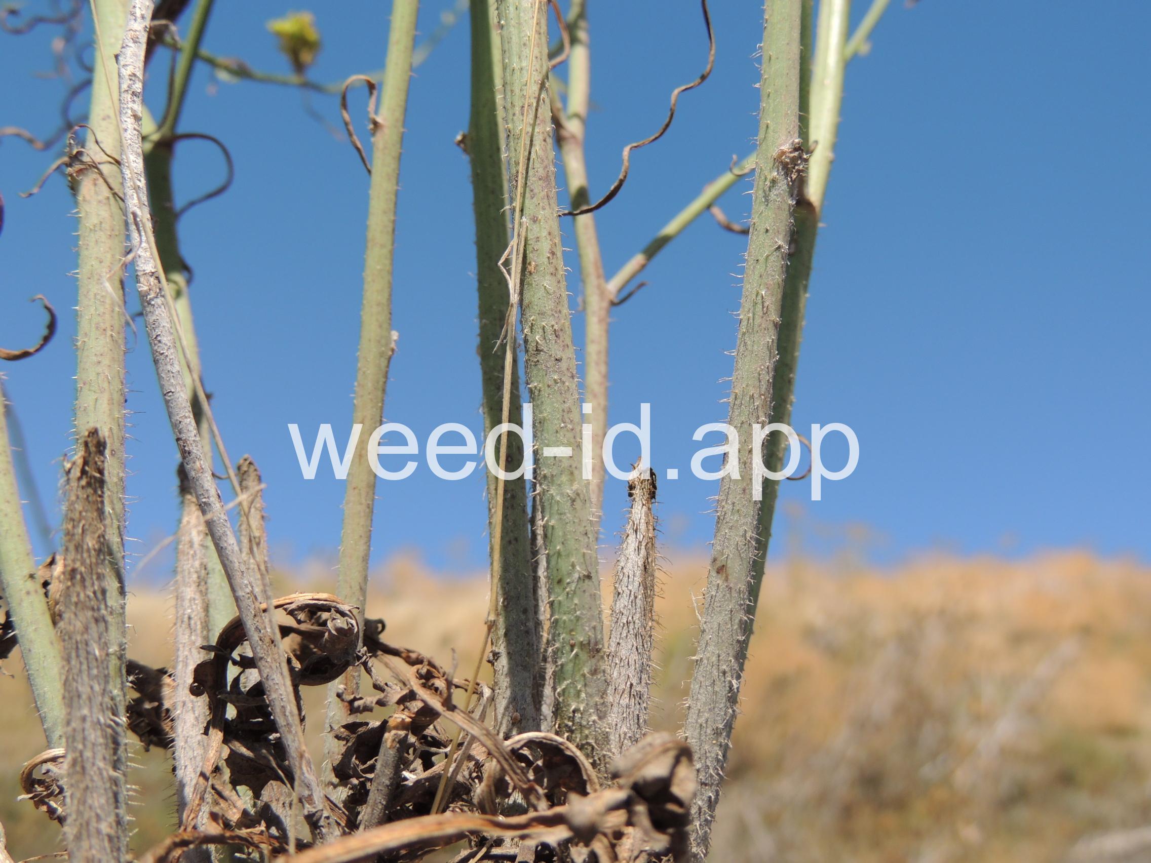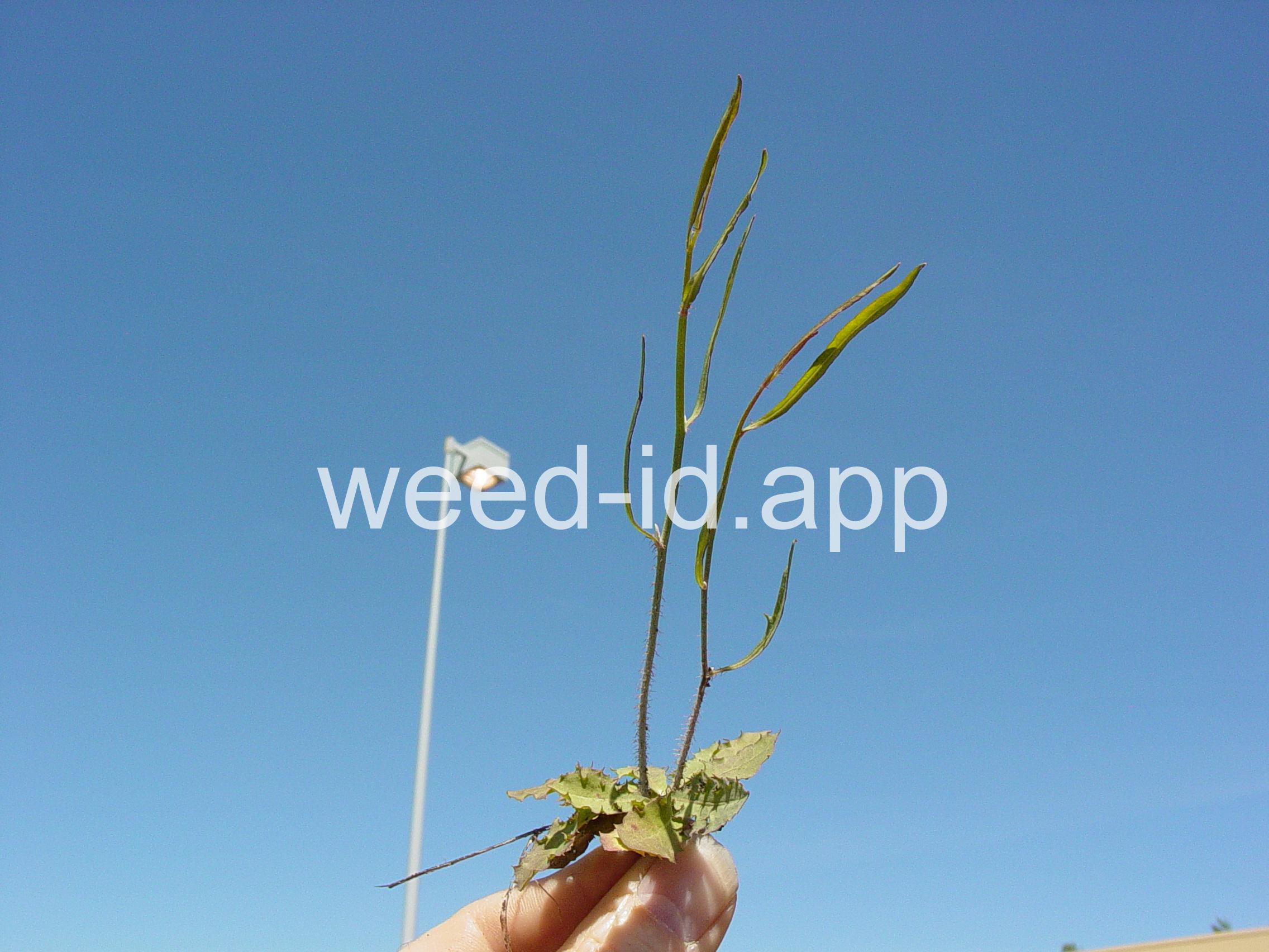 The name skeletonweed refers to the practically naked stems. The small heads generally have 10 ray flowers. The definitive characteristic for identification is the presence of reddish, down-turned hairs on the bottom 4 inches of the stem. The rosettes are indistinguishable from those of dandelion except for the rhizomes.