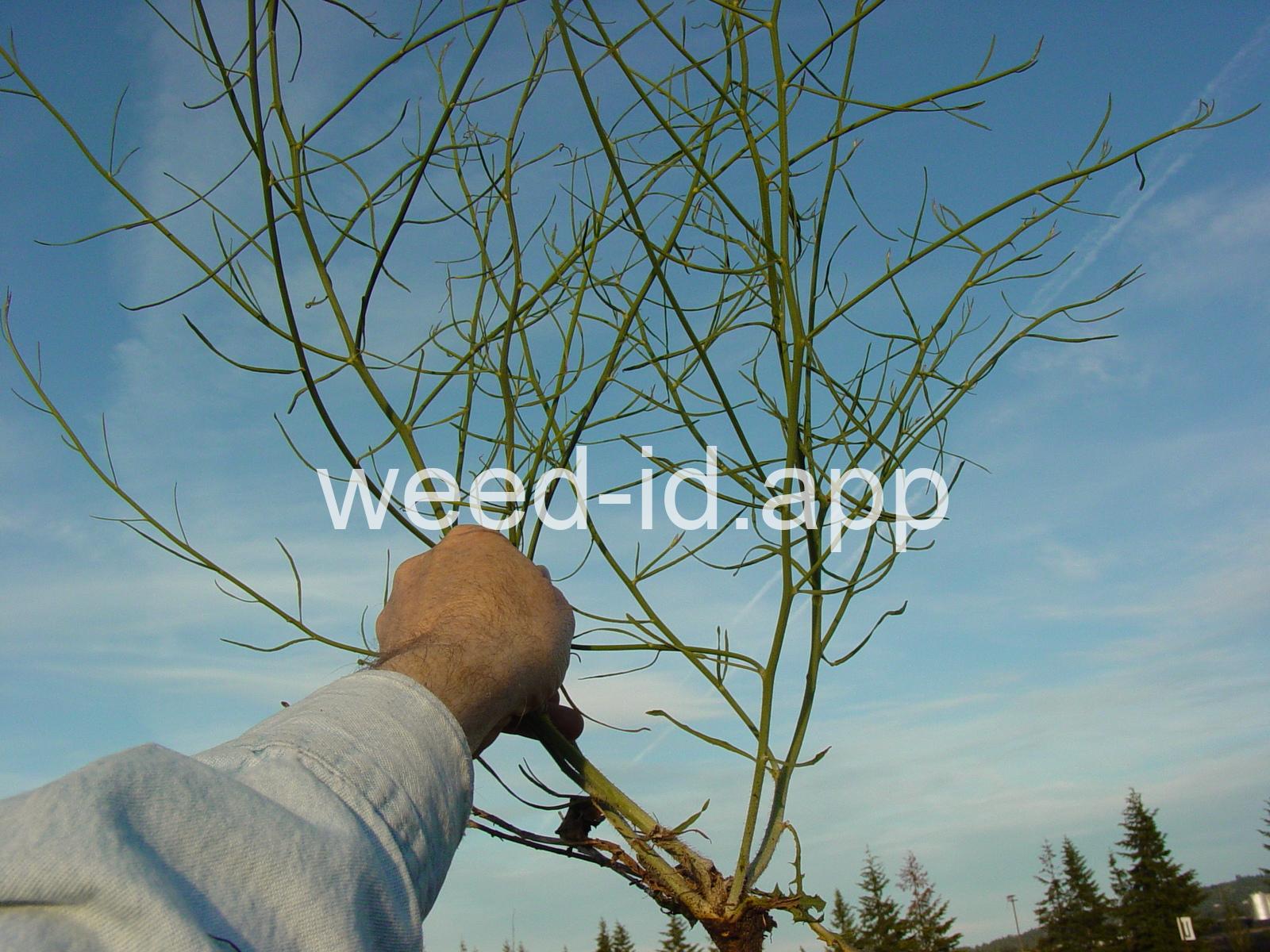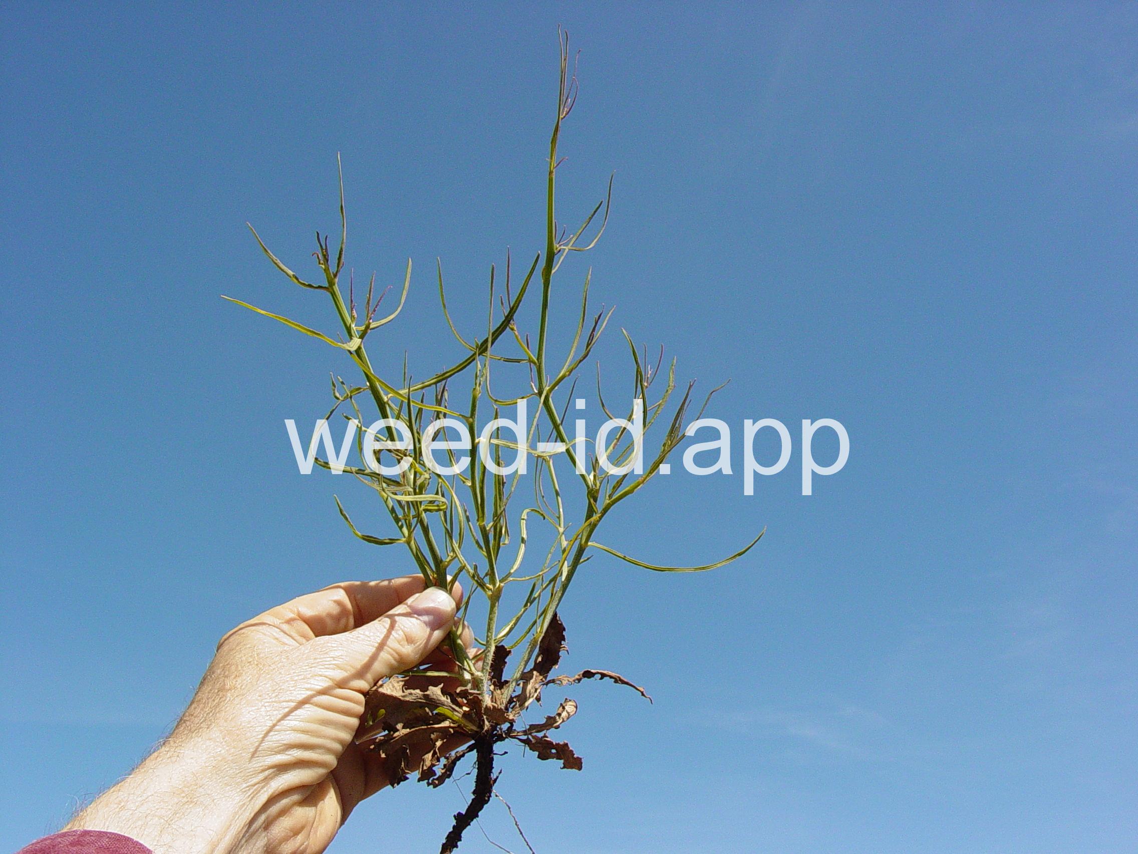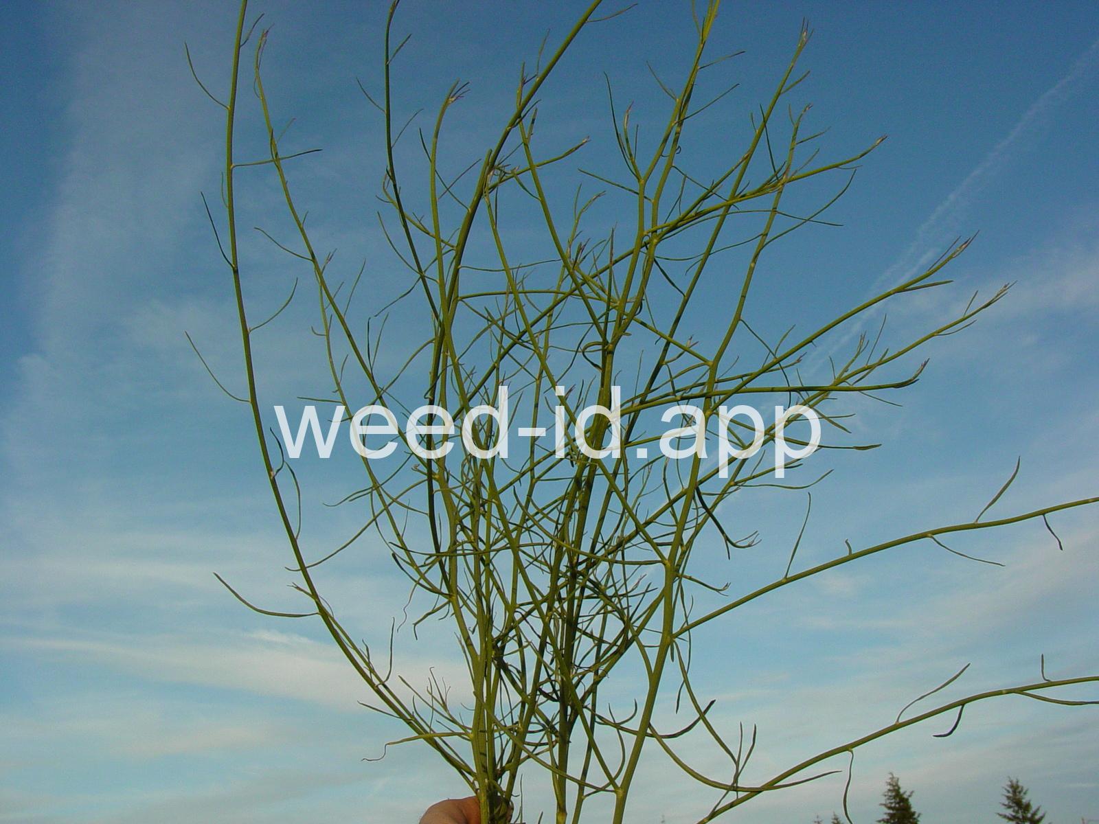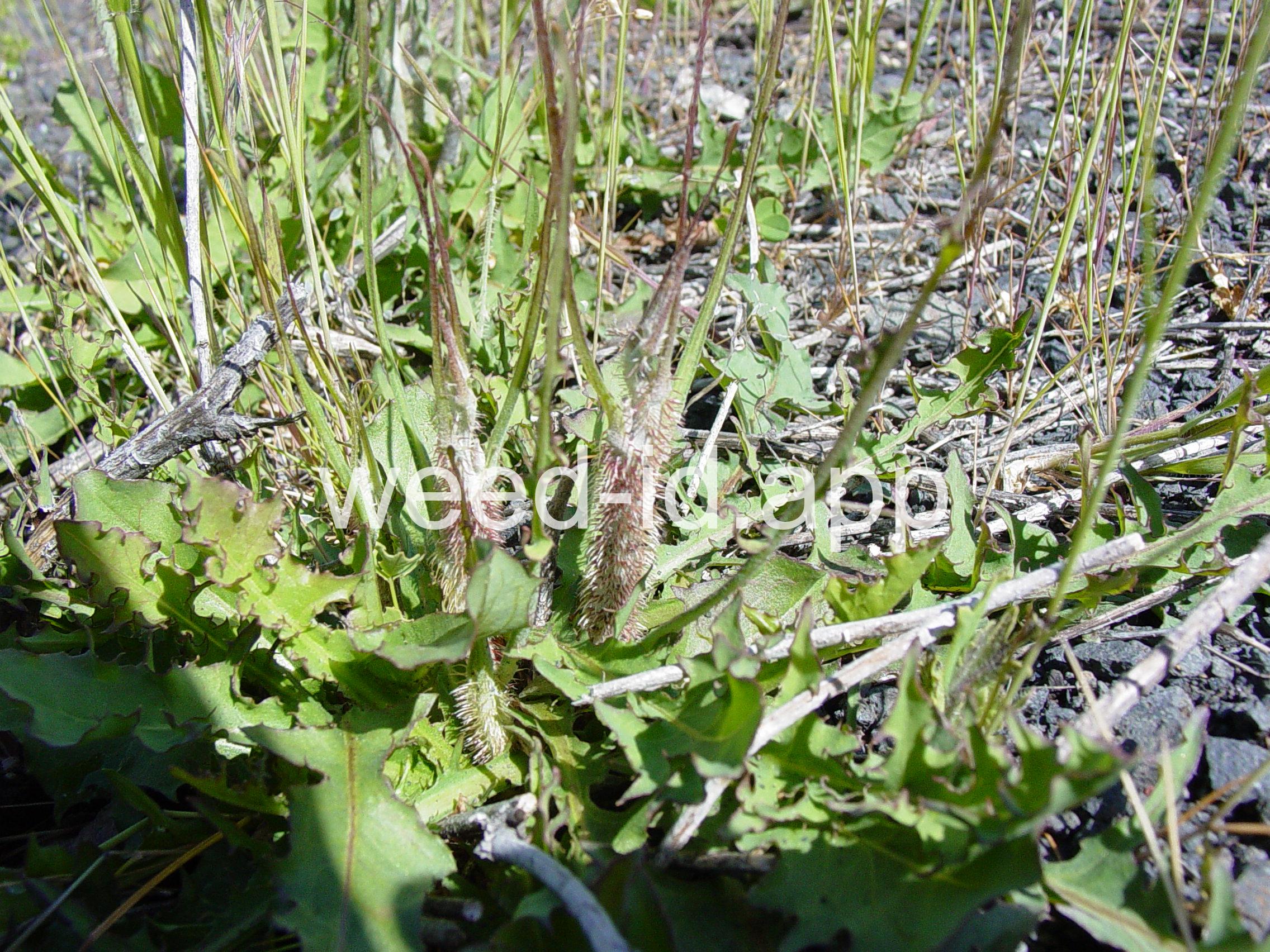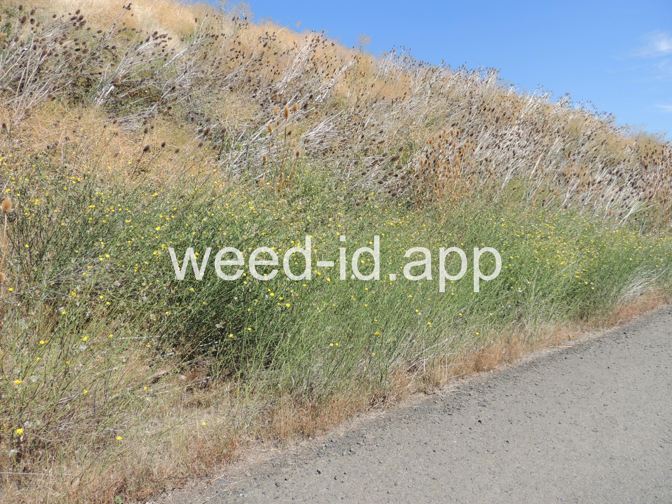 The name skeletonweed refers to the practically naked stems. The small heads generally have 10 ray flowers. The definitive characteristic for identification is the presence of reddish, down-turned hairs on the bottom 4 inches of the stem. The rosettes are indistinguishable from those of dandelion except for the rhizomes.