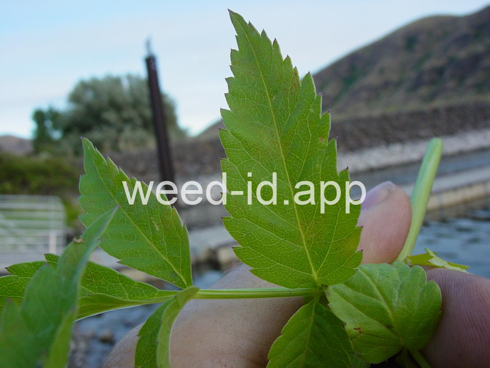 This species is the most poisonous plant in the Western U.S. It prefers wet sites and is often found along the margins of lakes, streams, and irrigation canals. The tuberous root is divided into many small hollow chambers. The leaves are divided into fairly uniform leaflets, and the veins run to the notch between the teeth of the margin. Western waterhemlock is very similar to spotted waterhemlock (Cicuta maculata) which can be distinguished by the cells formed by the small veins on the underside of the leaf. These cells are round or square in Cicuta maculata and elongate in Cicuta douglasii.