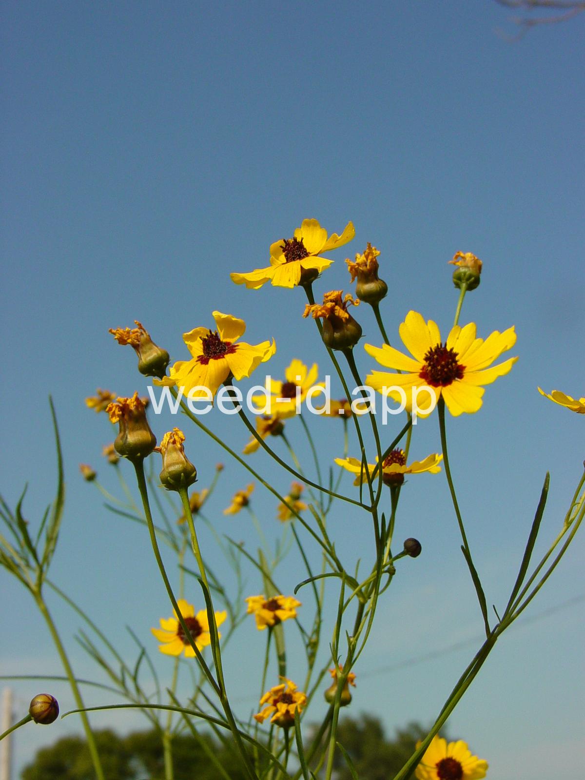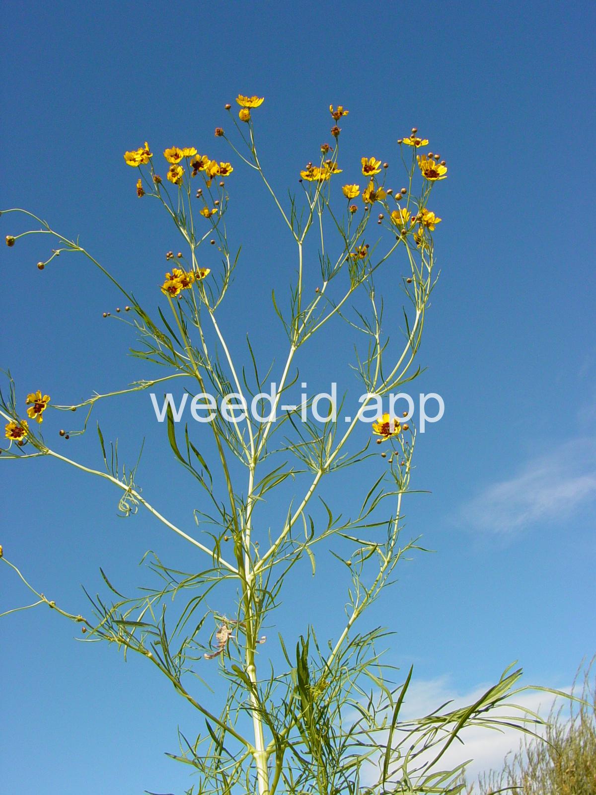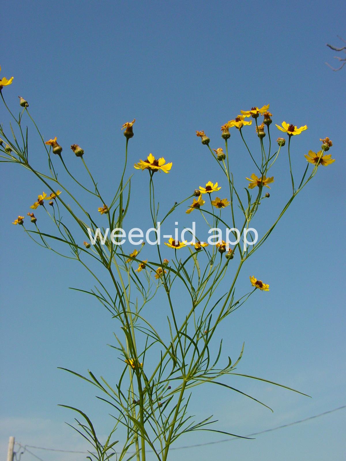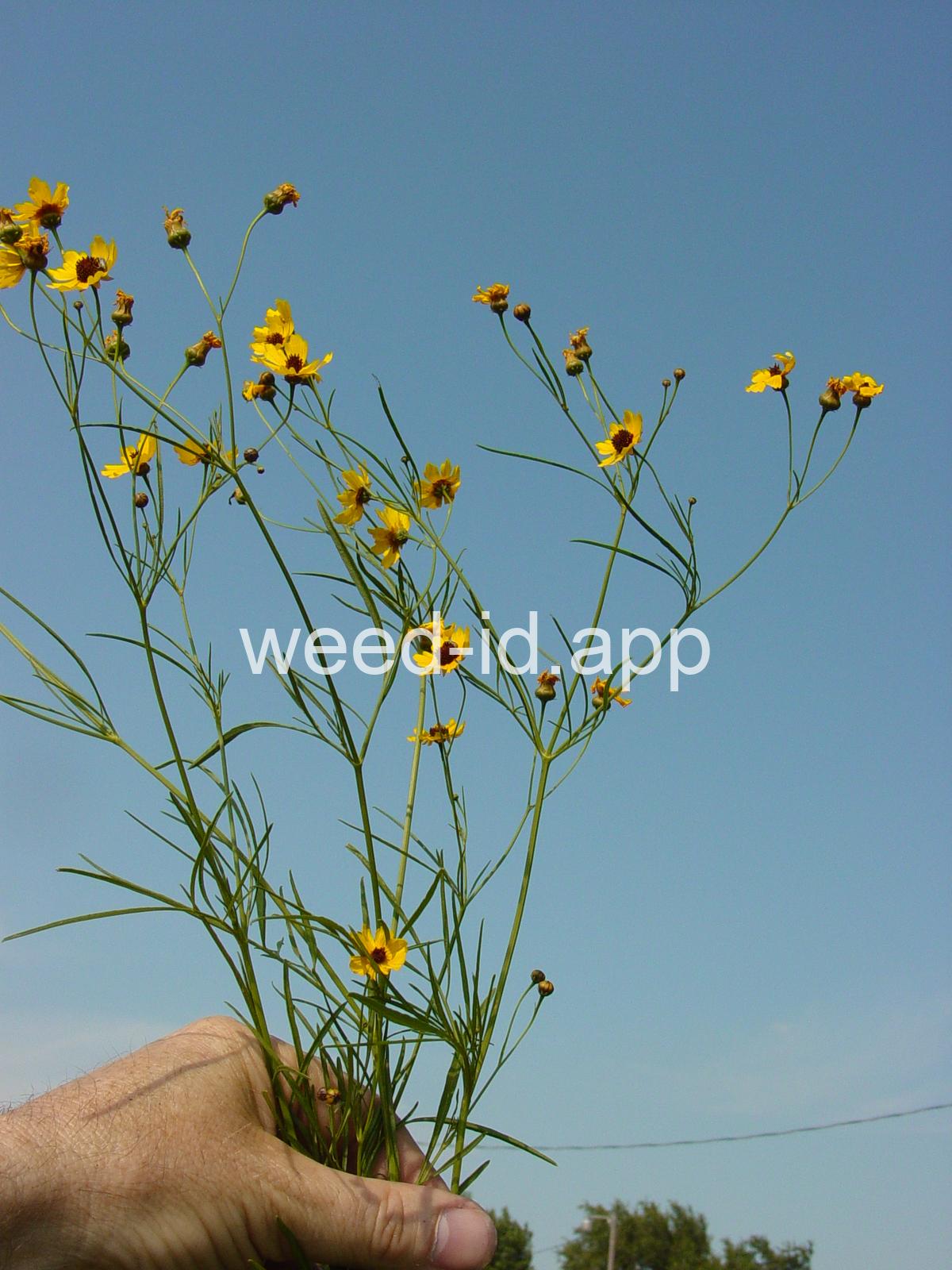 This is a native species which is also often cultivated as an ornamental. It has many flowering heads at the ends of long, slender branches, and the yellow rays generally have a darker red-orange to red patch at the base. The leaves are divided into narrow segments, and the plant is commonly found in sites which are seasonally inundated, such as road ditches. The 1979 Nebraska Weeds lists C. palmata from `the sandhill area and occasionally in eastern Nebraska.` It also pictures a species, Coreopsis verticillata, but this species is not known to occur in the Great Plains!?!