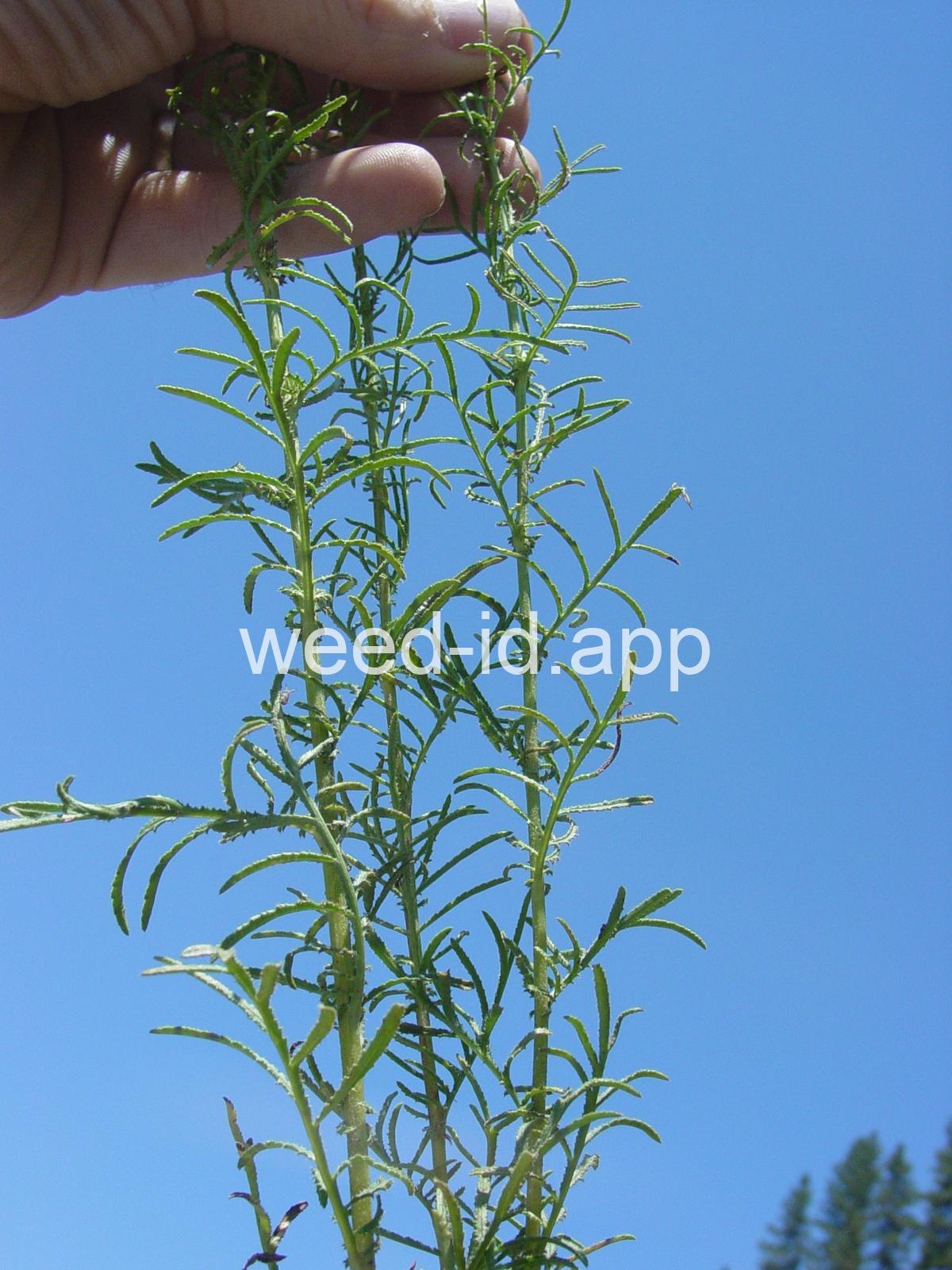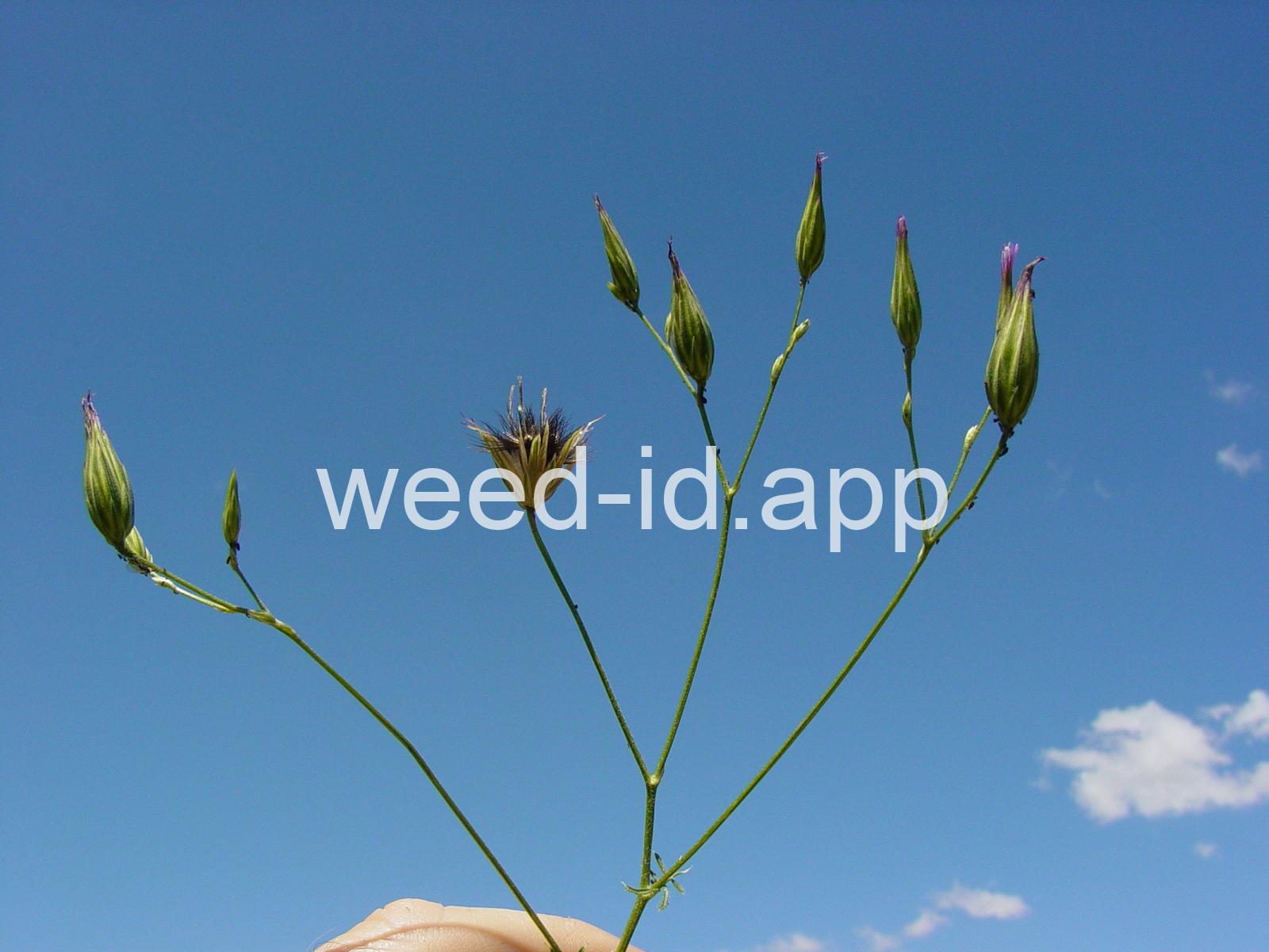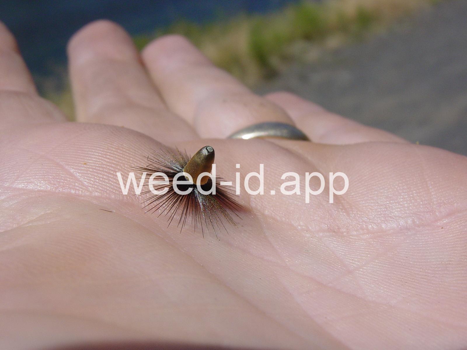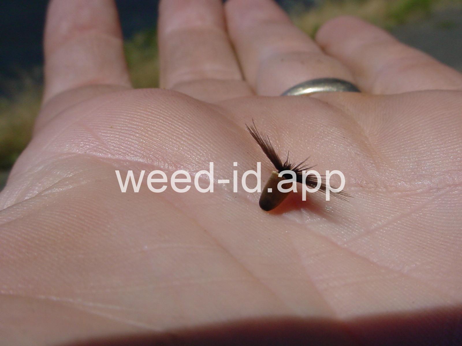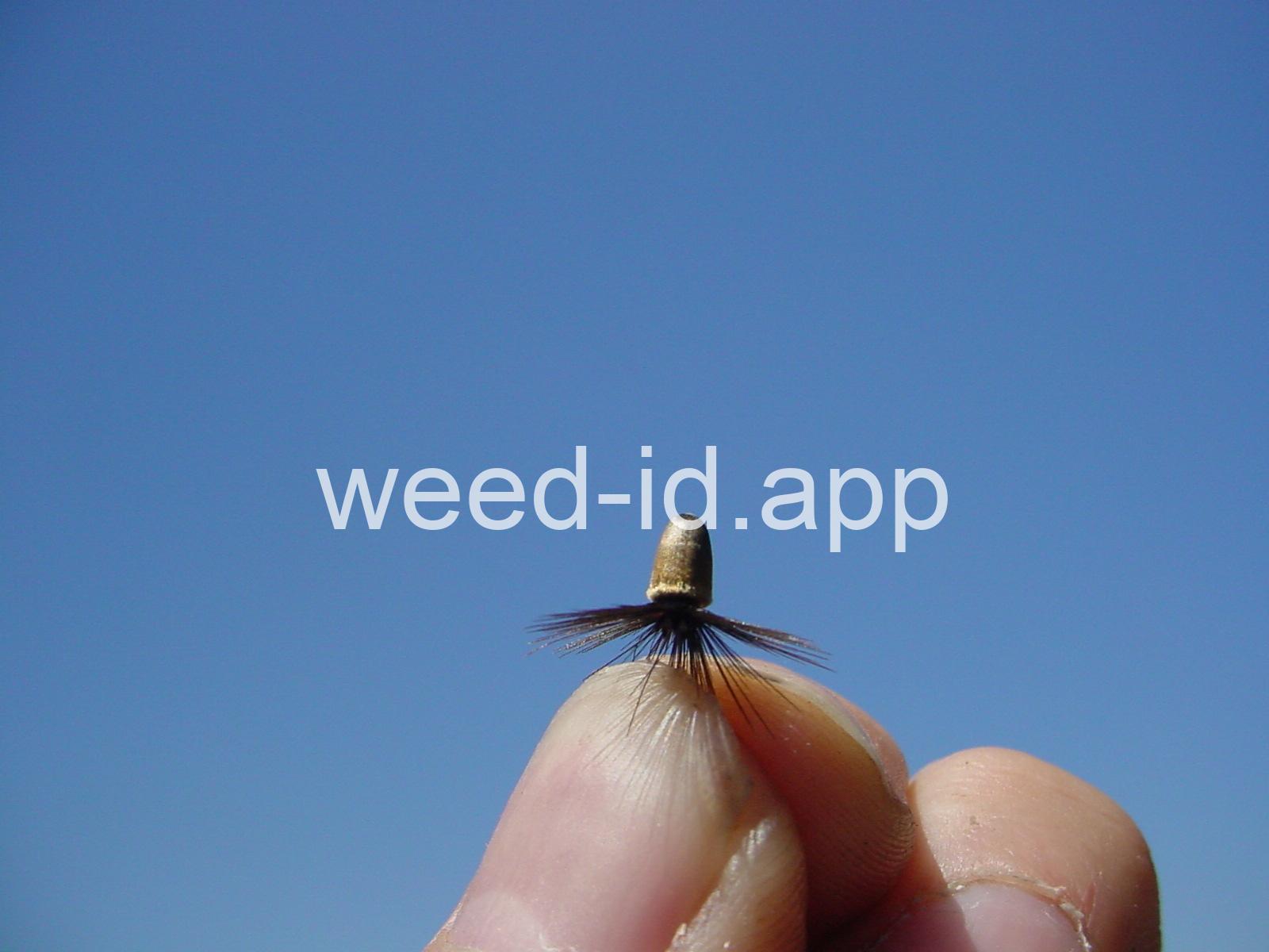 This slenderly erect annual prefers dry, south facing slopes and is reported from near Pendleton, Oregon; Orofino, Idaho; Chelan, Washington; two sites in California; and apparently in Massachusetts!! The seeds are iridescent brown with a dark brown pappus and resemble a dry fly for trout fishing. This is a federal noxious weed: report all sightings!