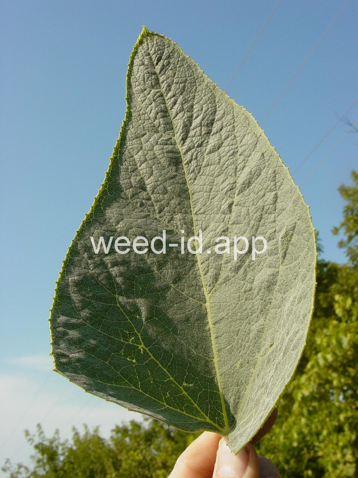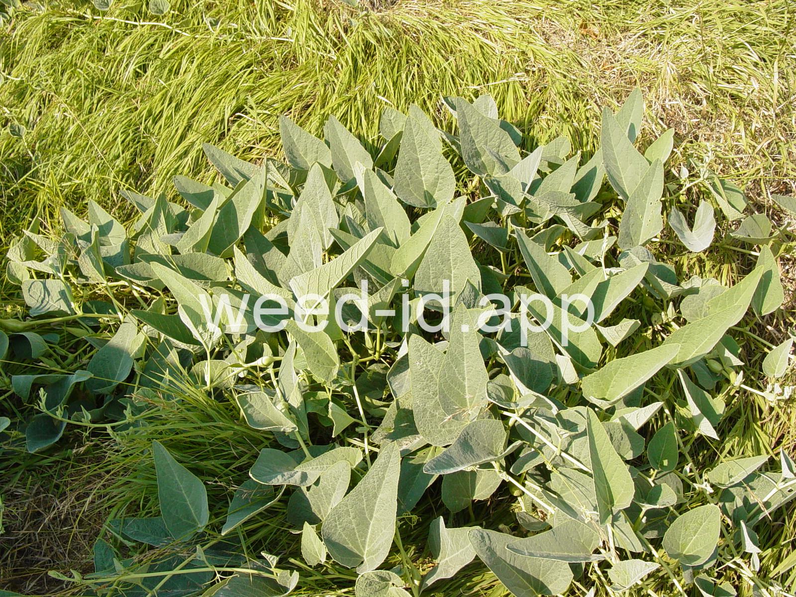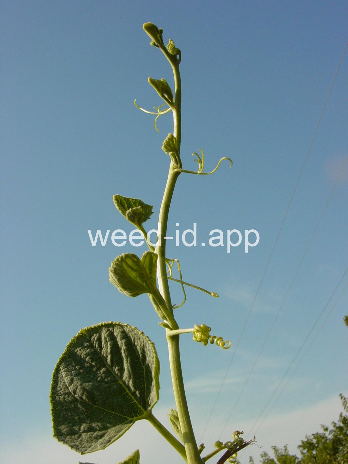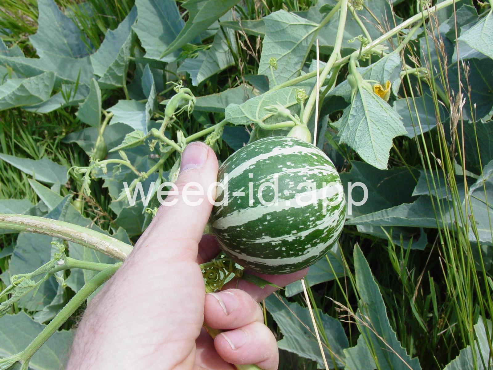 This is a native, squash-like plant with large, scabrous (scratchy), triangular, bluish-green leaves. It has a large, yellow flower which is tubular below the middle. Often found in sandy or gravelly soils.