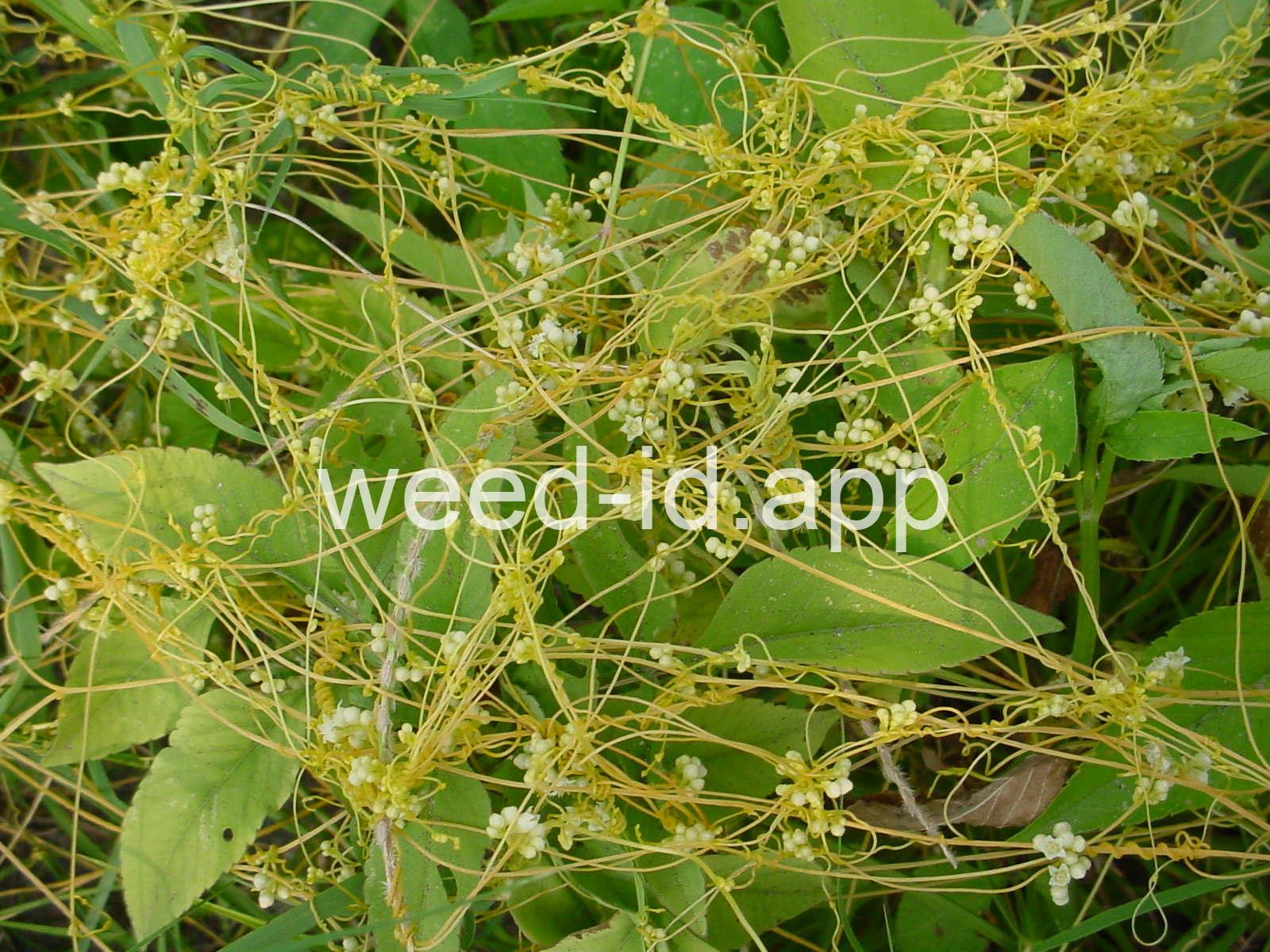 Very slender vines, yellowish to white in color due to their lack of chlorophyll. Distinguishing between the various species of dodder is a task best left to your local herbarium. There are several species of this genus which are federal noxious weeds; be sure to send in samples for identification.