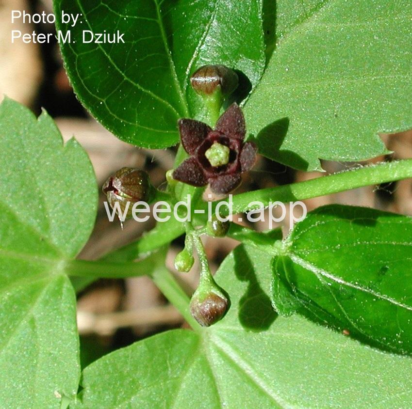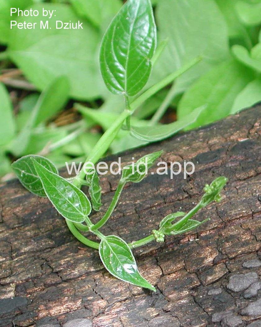 A European species also known as `dog-strangling vine.` Note the opposite, ovate leaves; dark purple flowers and milky juice.