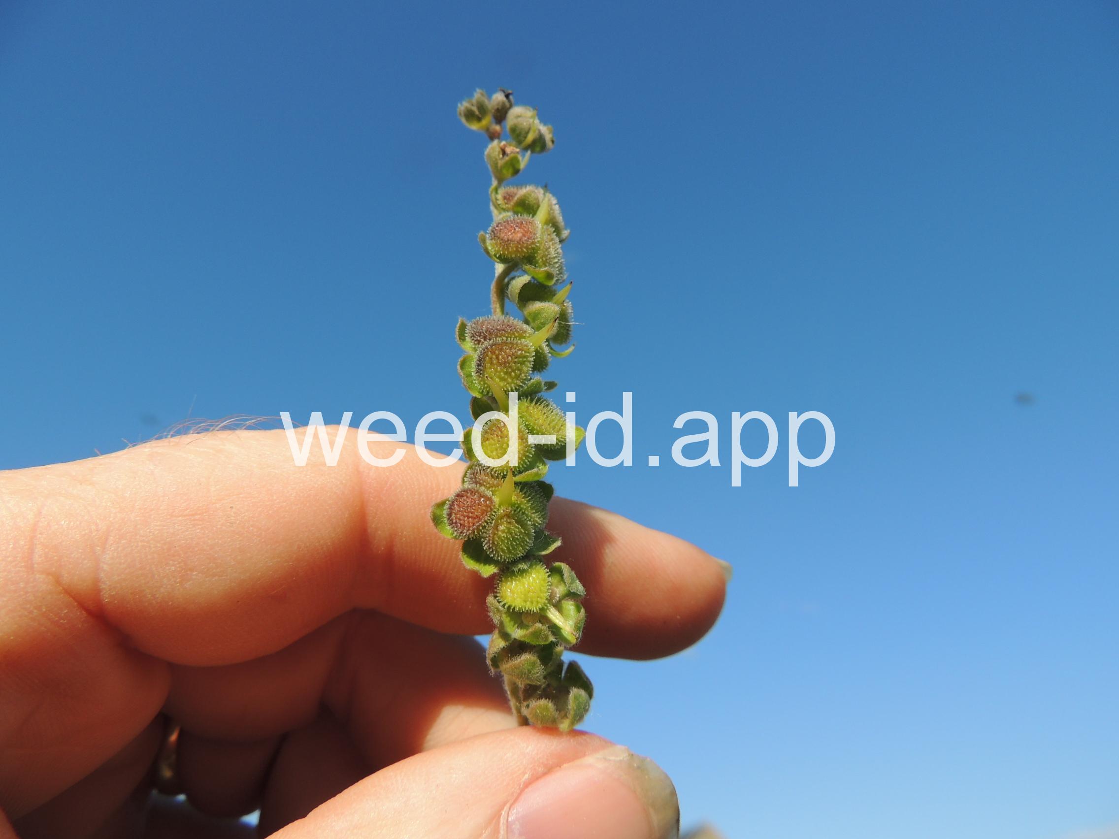 Houndstongue has small, but beautiful, dark red to reddish-purple tubular flowers. The four nutlets are covered with hooked bristles which allow the seeds to be dispersed by passing animals. Recent evidence has shown this species to be toxic to livestock due to the presence of pyrrolizidine alkaloids. The entire plant has a sweetish musty odor which some people say smells like dirty socks and others claim smells like hot buttered popcorn!