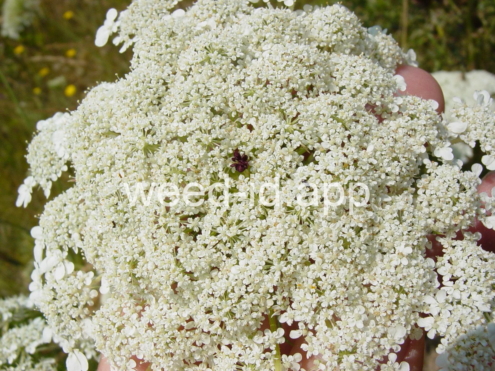 Also called `Queen Anne`s lace,` this is the wild ancestor of our cultivated carrot. Due to this close relationship, wild carrot is of much concern in areas where carrot seed is grown since the crop could be pollinated by the weed. The flowers are white and arranged in flat topped clusters (compound umbels), often with a purple to black flower at the center. The flower clusters fold up at maturity, forming a `bird`s nest` of bur-like seeds. Beneath the umbel there are several conspicuous branched bracts which distinguish this species from some `look-alikes.`