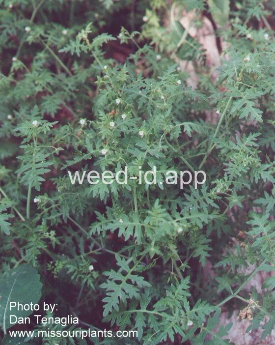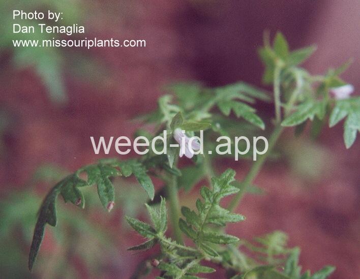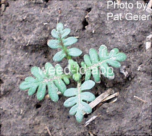 A weak annual from shallow, fibrous roots. The leaves are pinnately divided into 7-13 segments. The flowers are solitary in the leaf axils and form a globose pod usually with 4 seeds. Often in sandy soils.