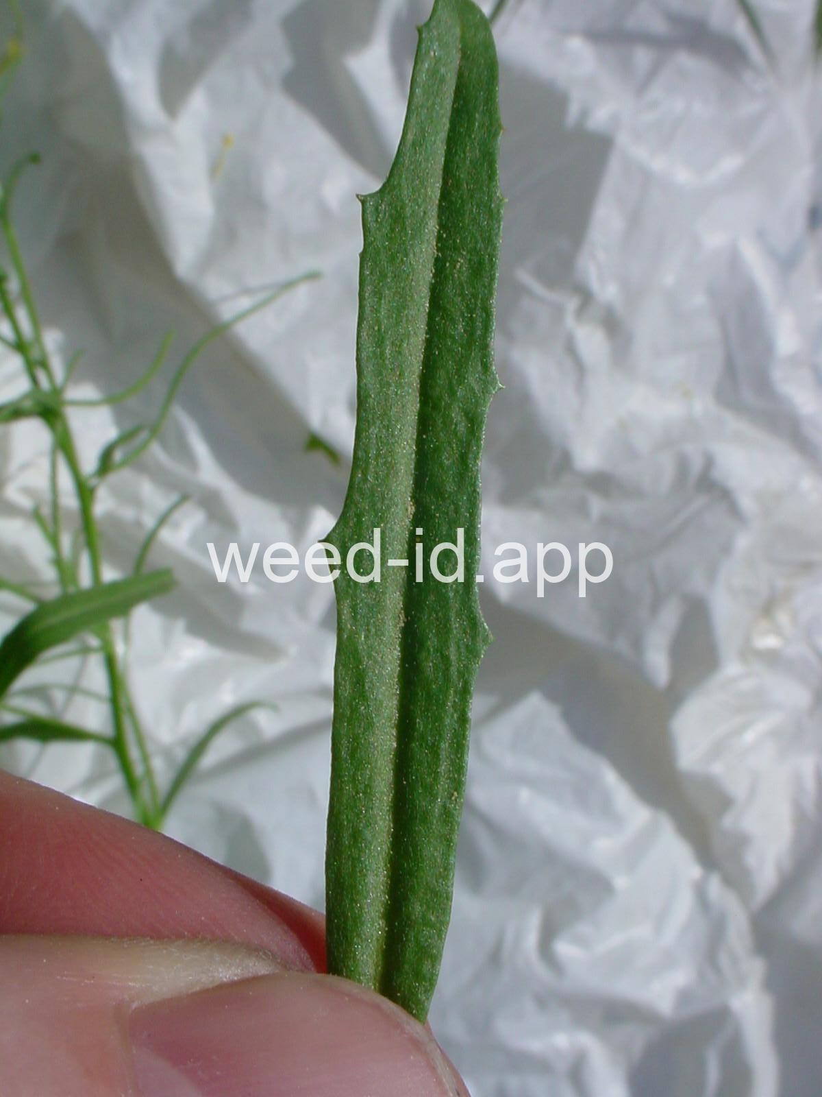 With a hand lens, one can see the 2-rayed hairs which cover the leaf surface. These hairs are arranged parallel to the midvein.