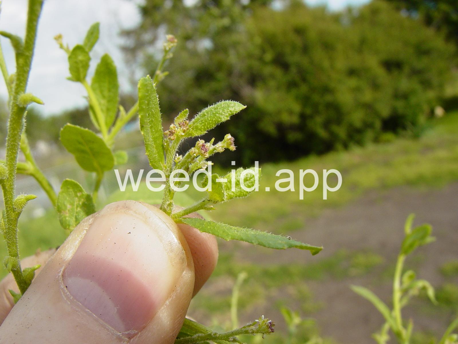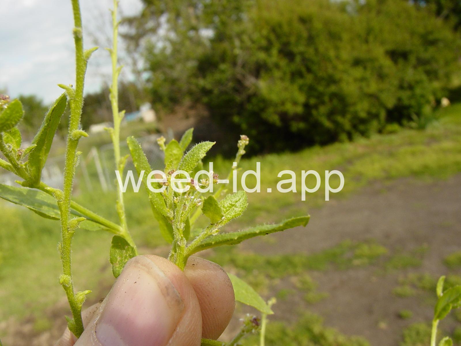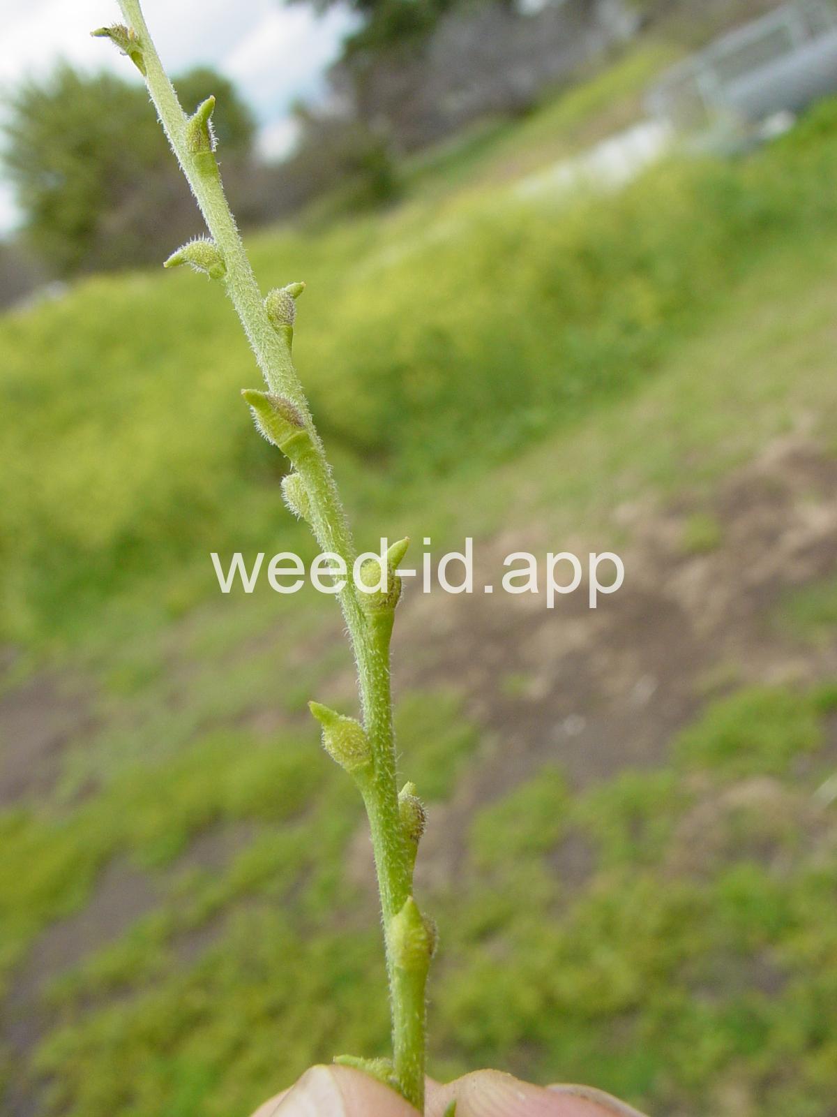 The fruits of this mustard are very distinctive due to the fact that the pedicel, fruit body, and fruit beak are each 1-3 mm long. The flowers are extremely small and often overlooked entirely. Plants diffusely spreading and often forming tangled mats.